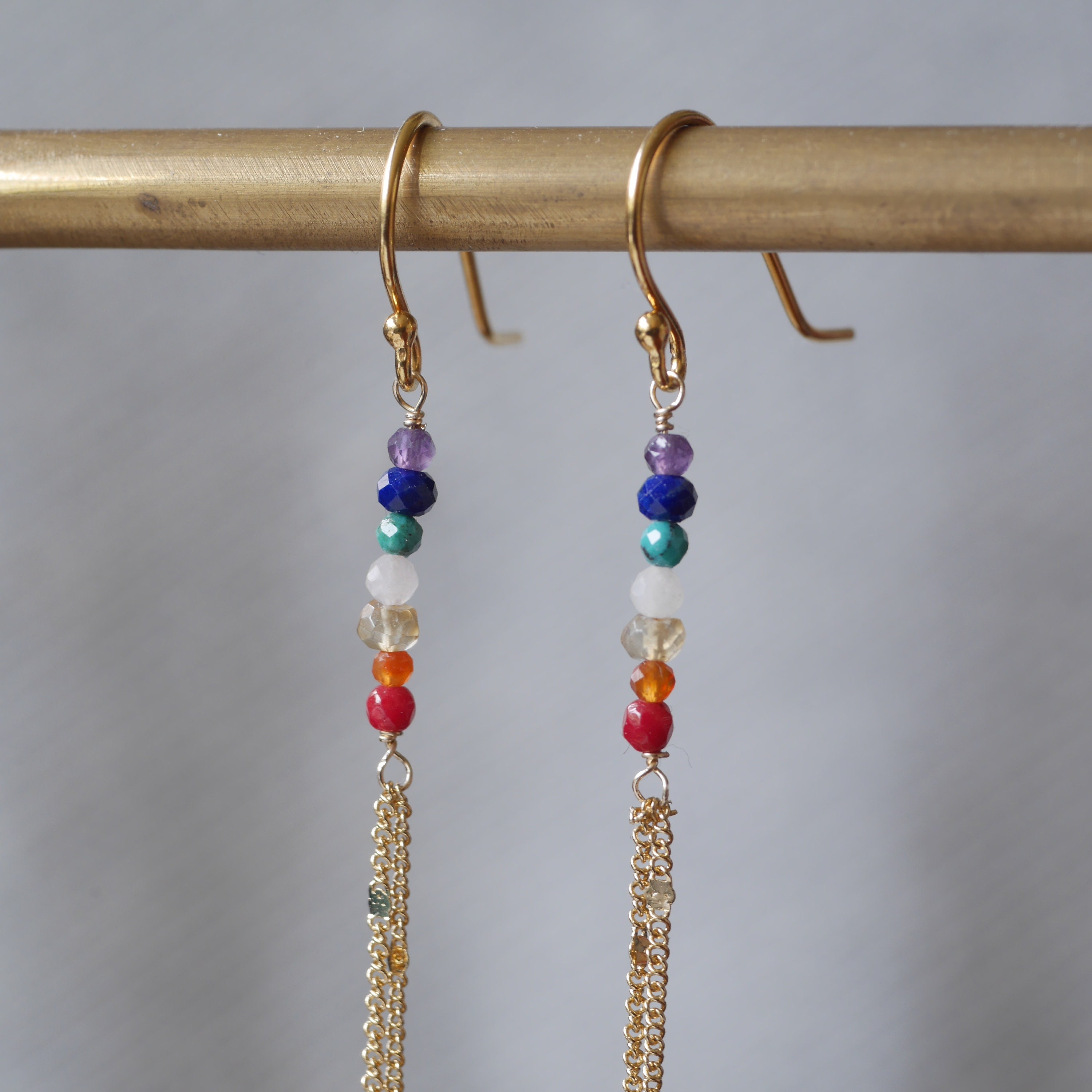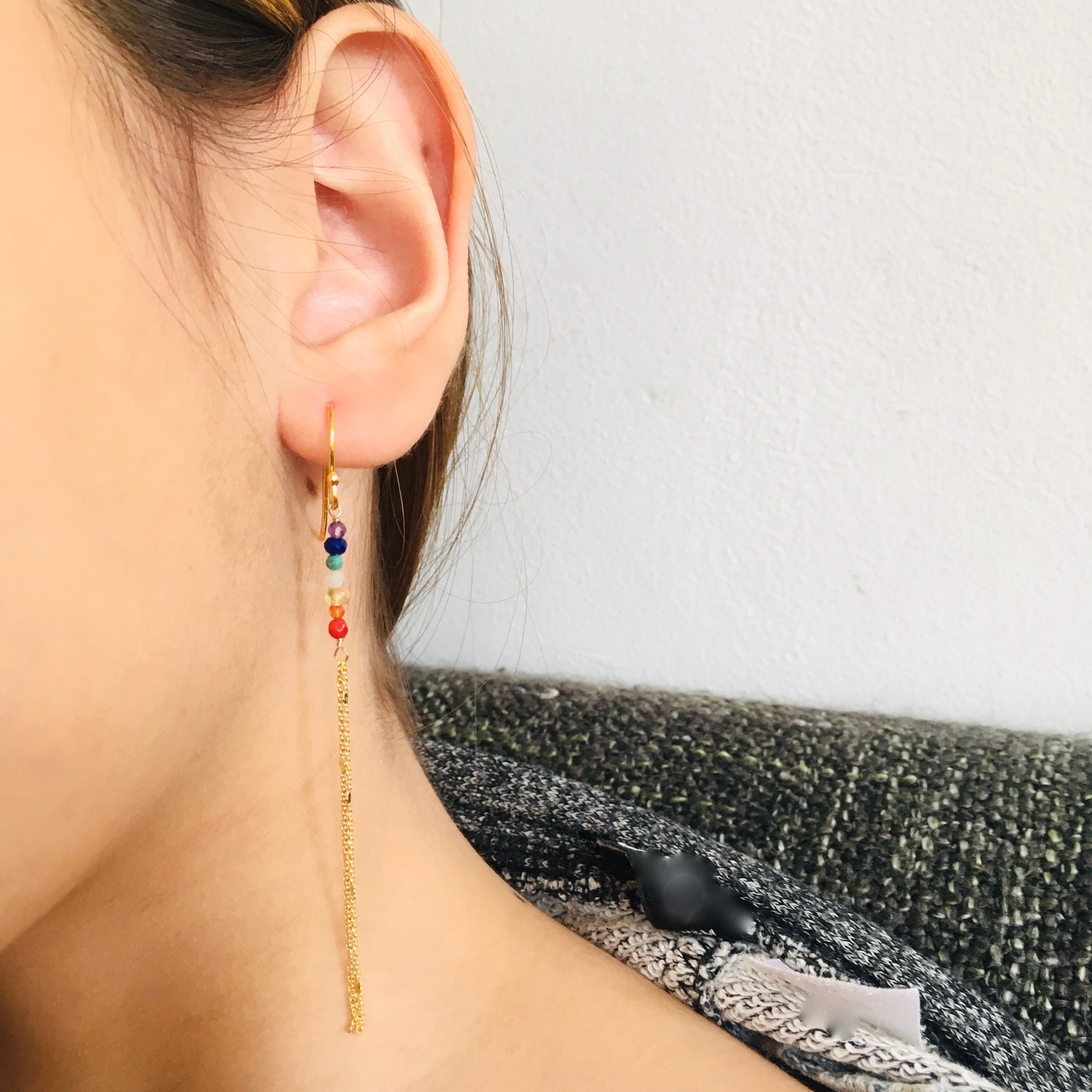 This 7 chakra beaded gemstone and chain dangle earrings are great gift ideas for whom is going through a difficult time in their life and want to bring a wholeness within themselves. Or some who is starting a new chapter of their life to give this powerful earring as an encouragement gift, or someone who are in their spiritual awaking journey. As well as looking playful and elegant finish, this earrings give also another meaning.