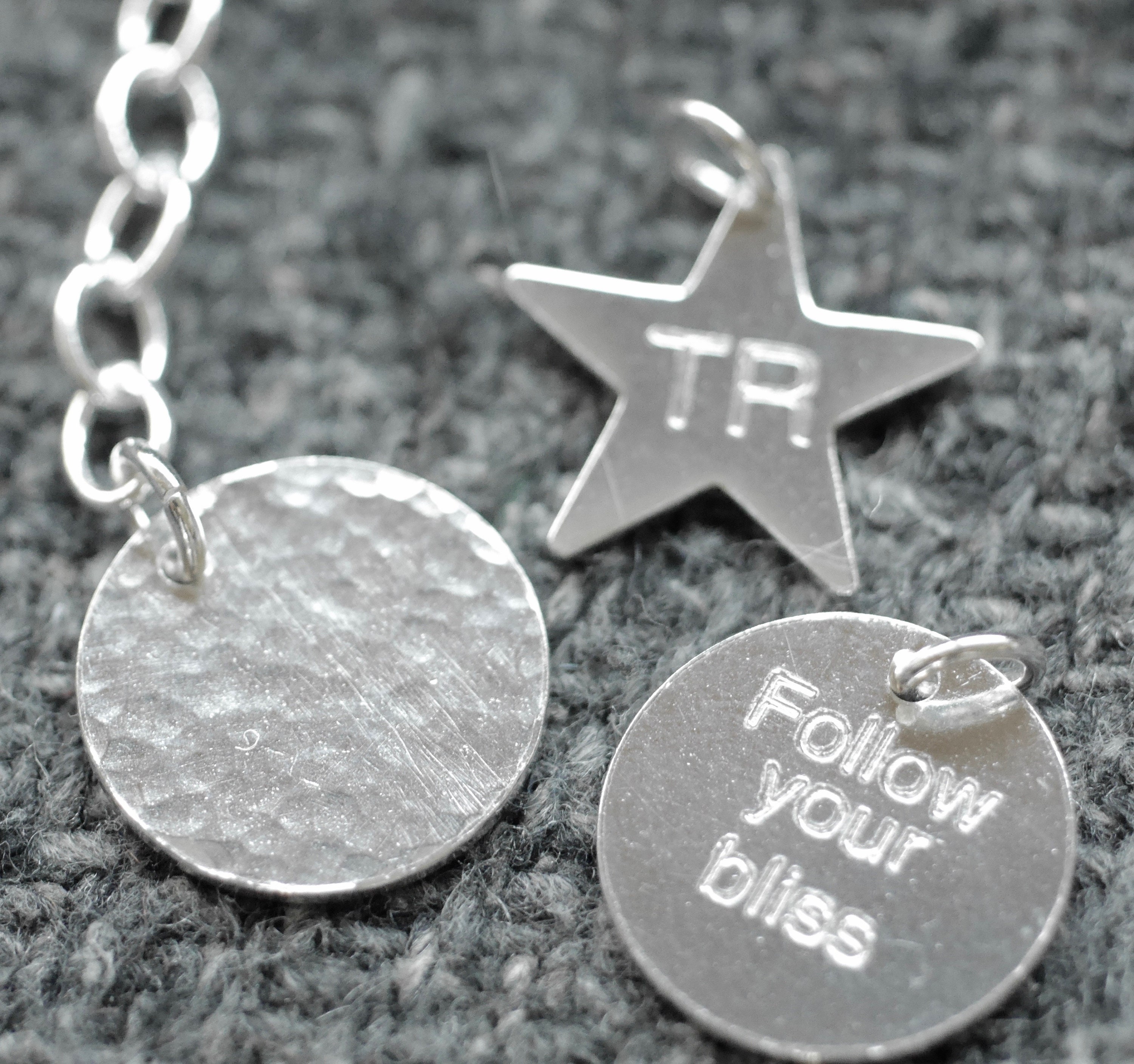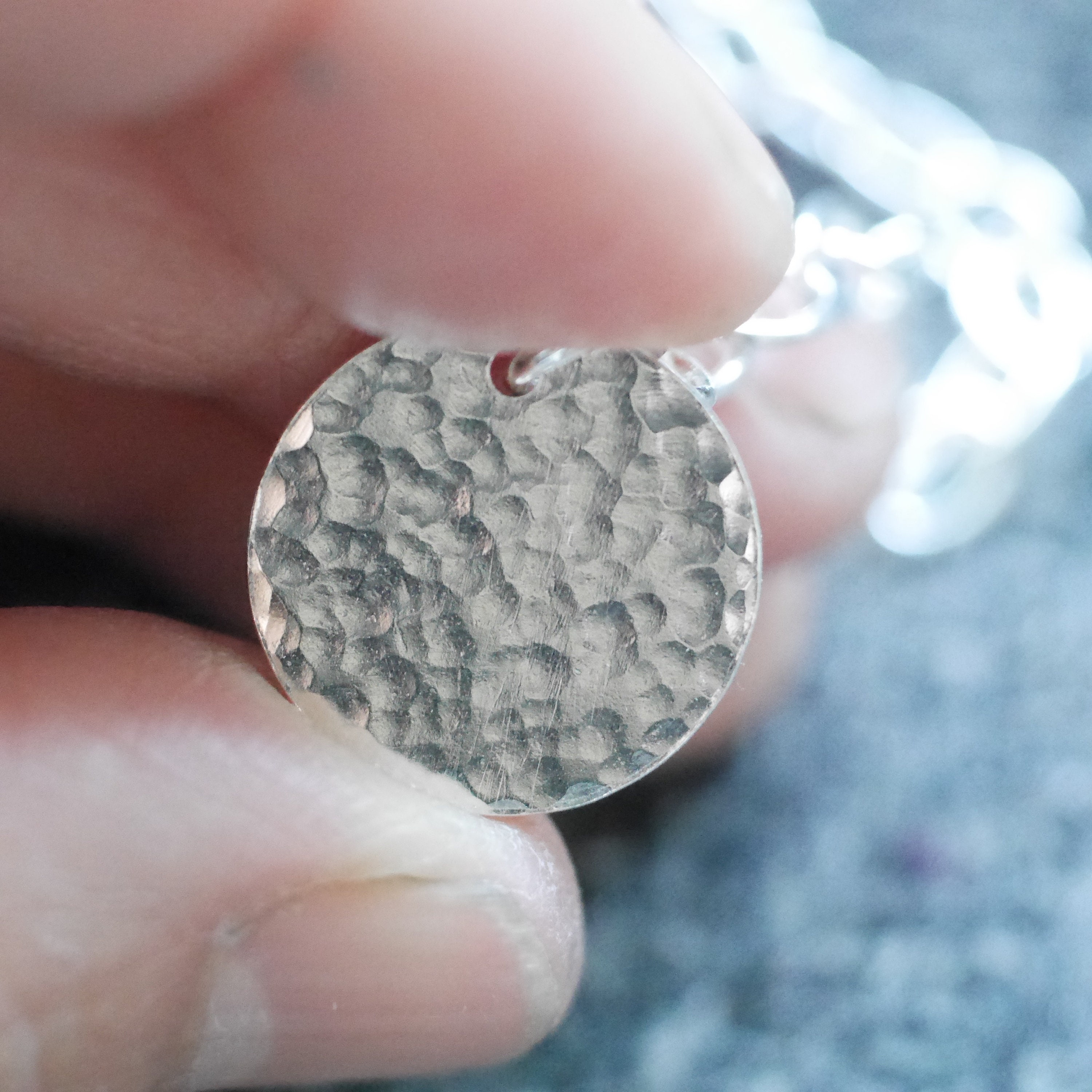 -Circle tag measures 1.5cm and can be engraved maximum 10 letters. You can also choose hammered options, too.