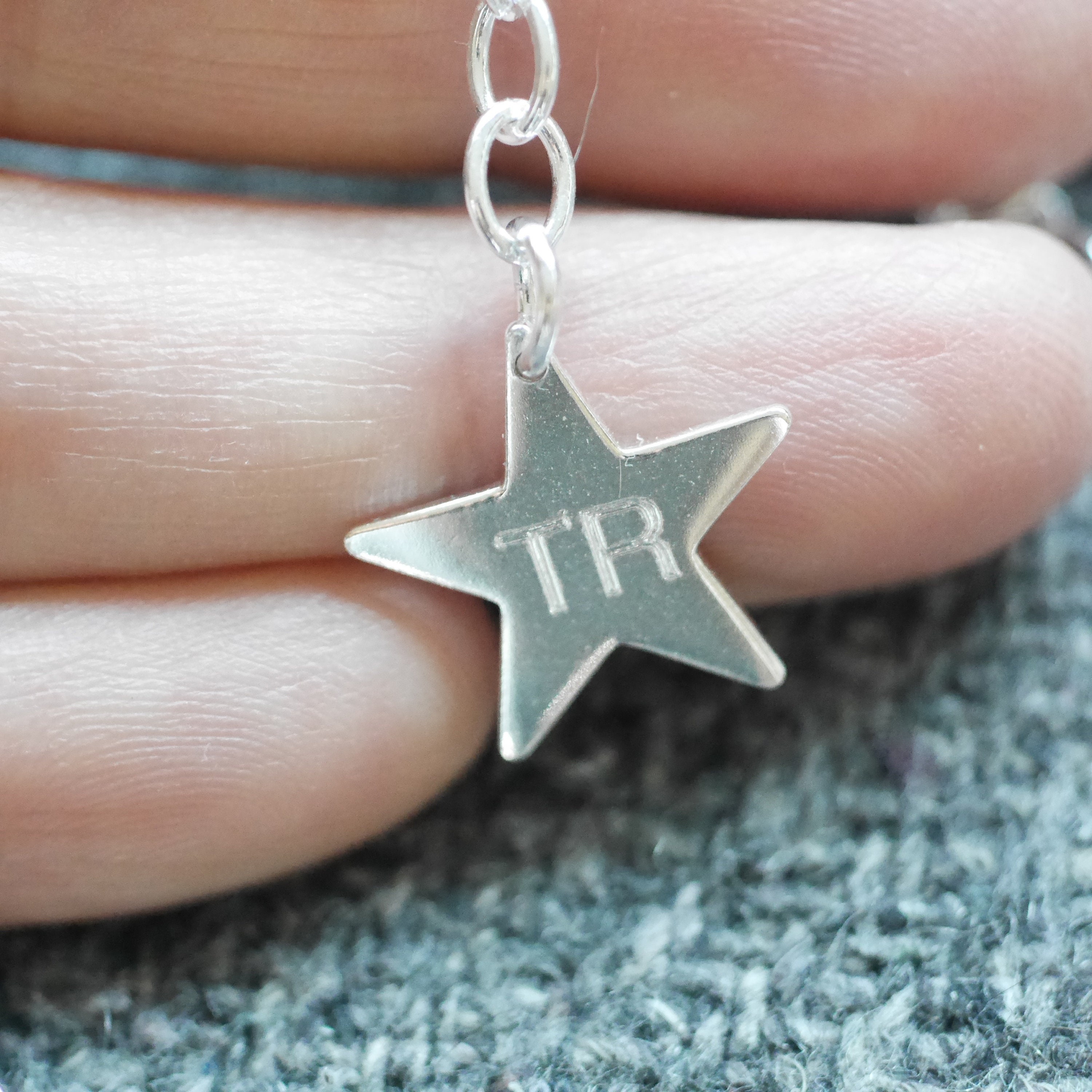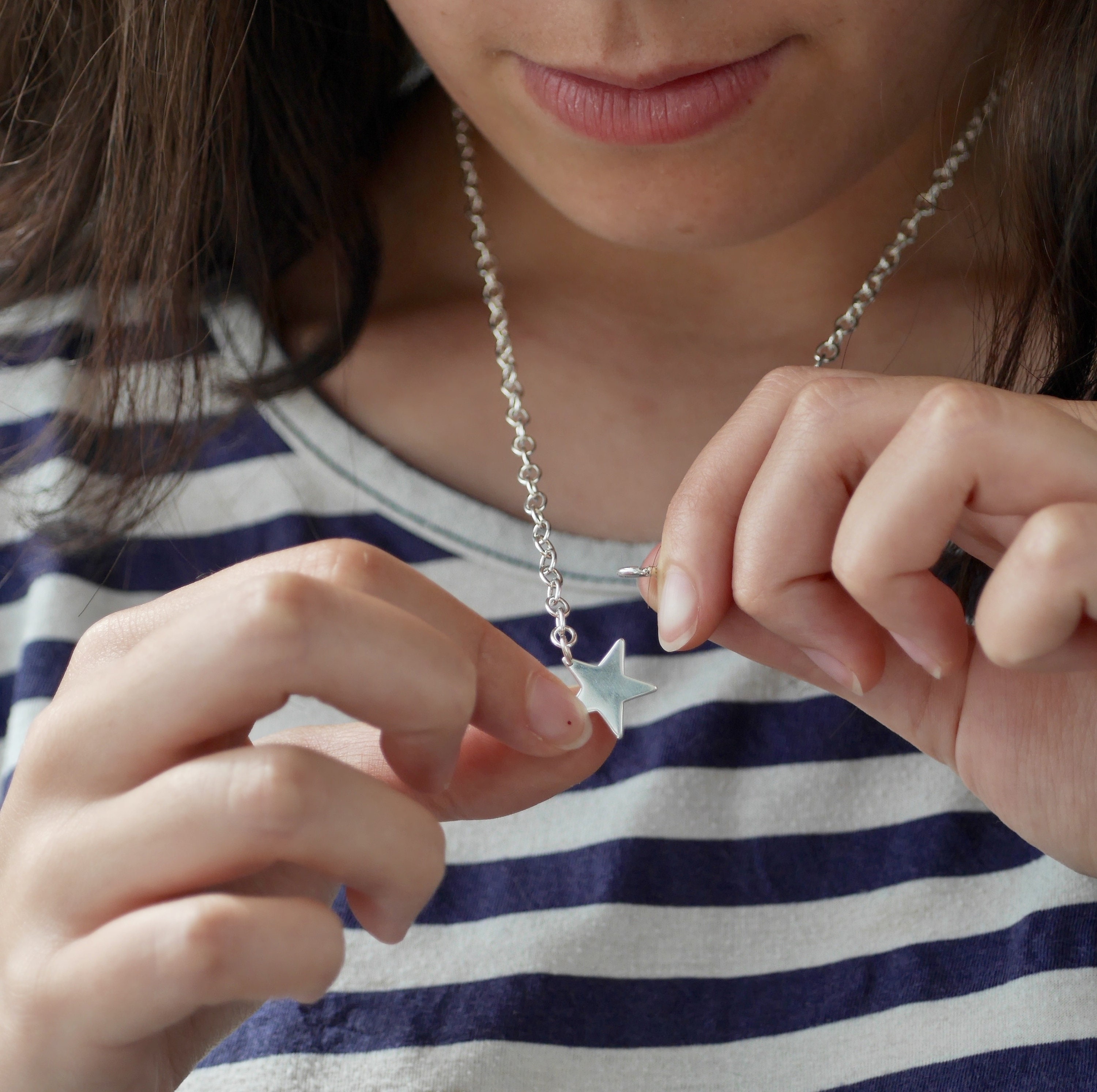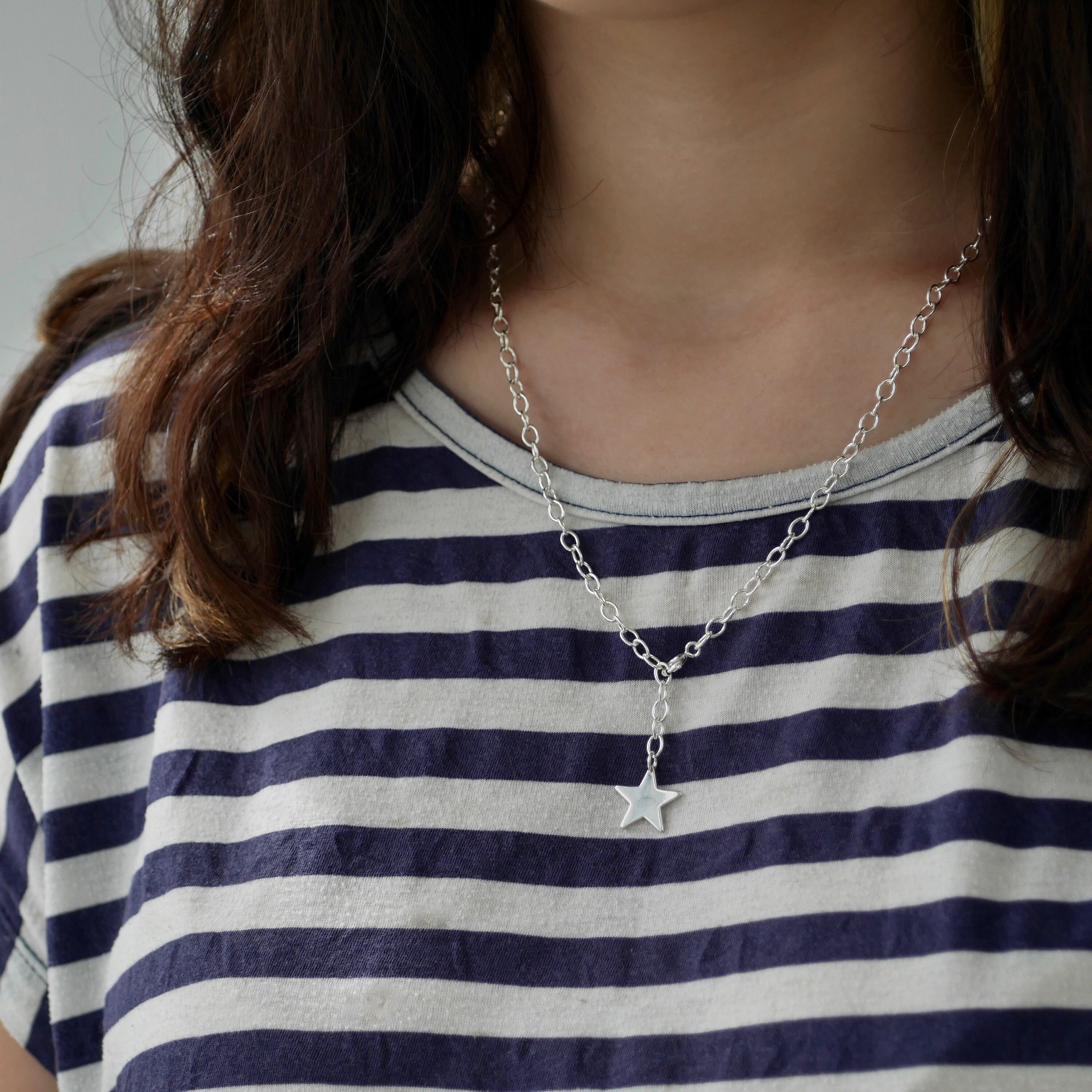 Sterling Silver medium chain adjustable necklace comes with your choice of tags; star or circle shapes. Adjustable Sterling Silver chain Y necklace.