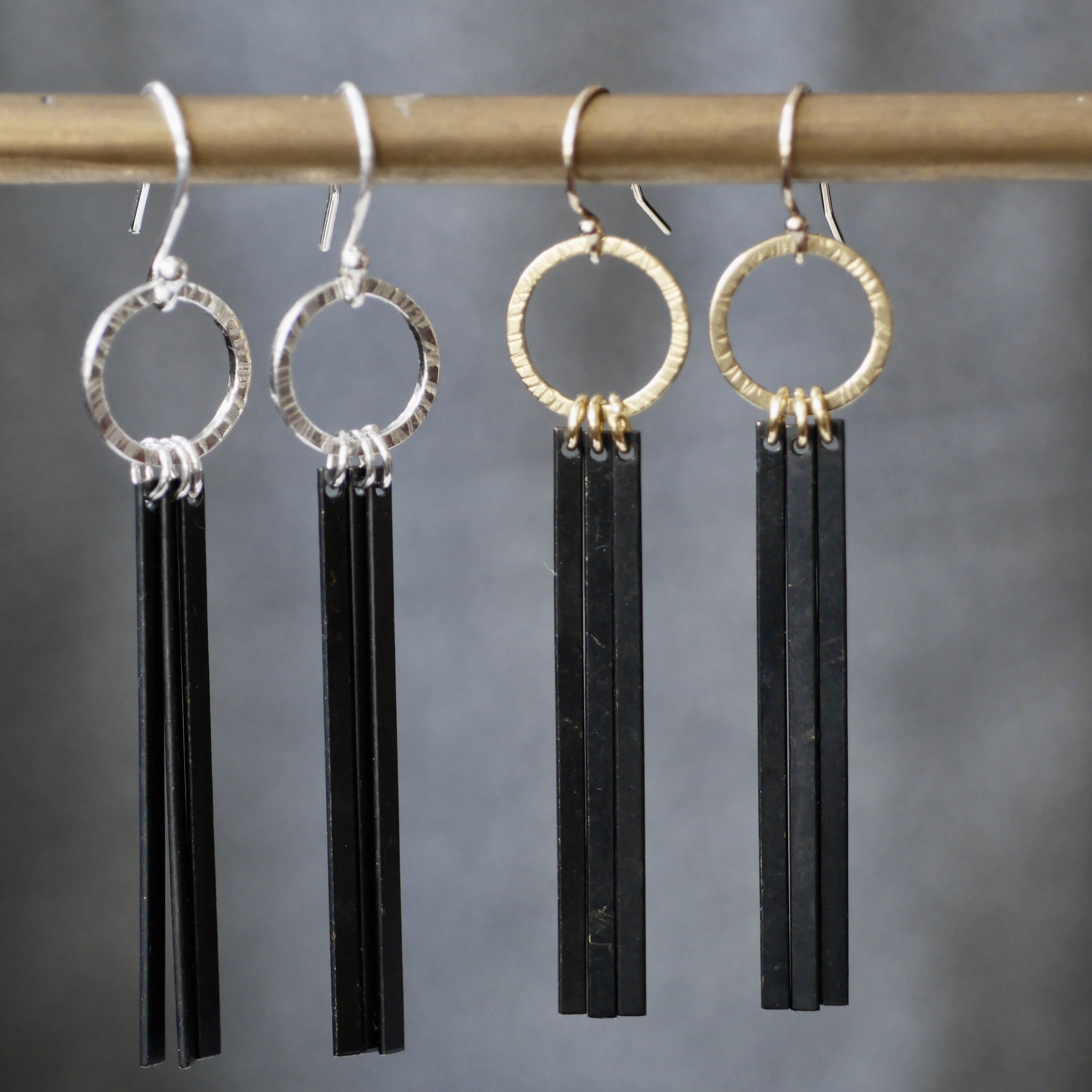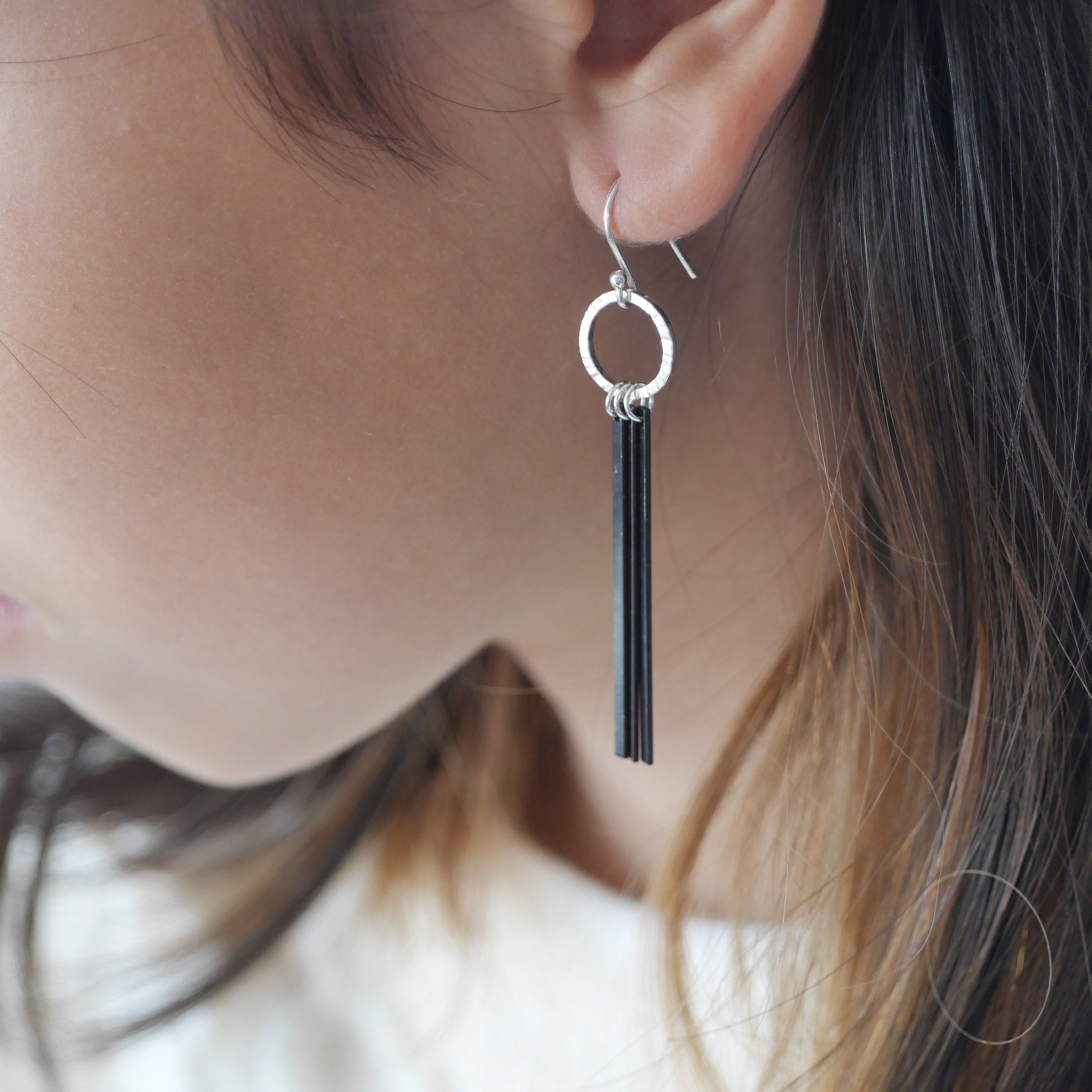 Please note that some images have 3 oxidised bars, but your earrings arrive with 2 black bars.