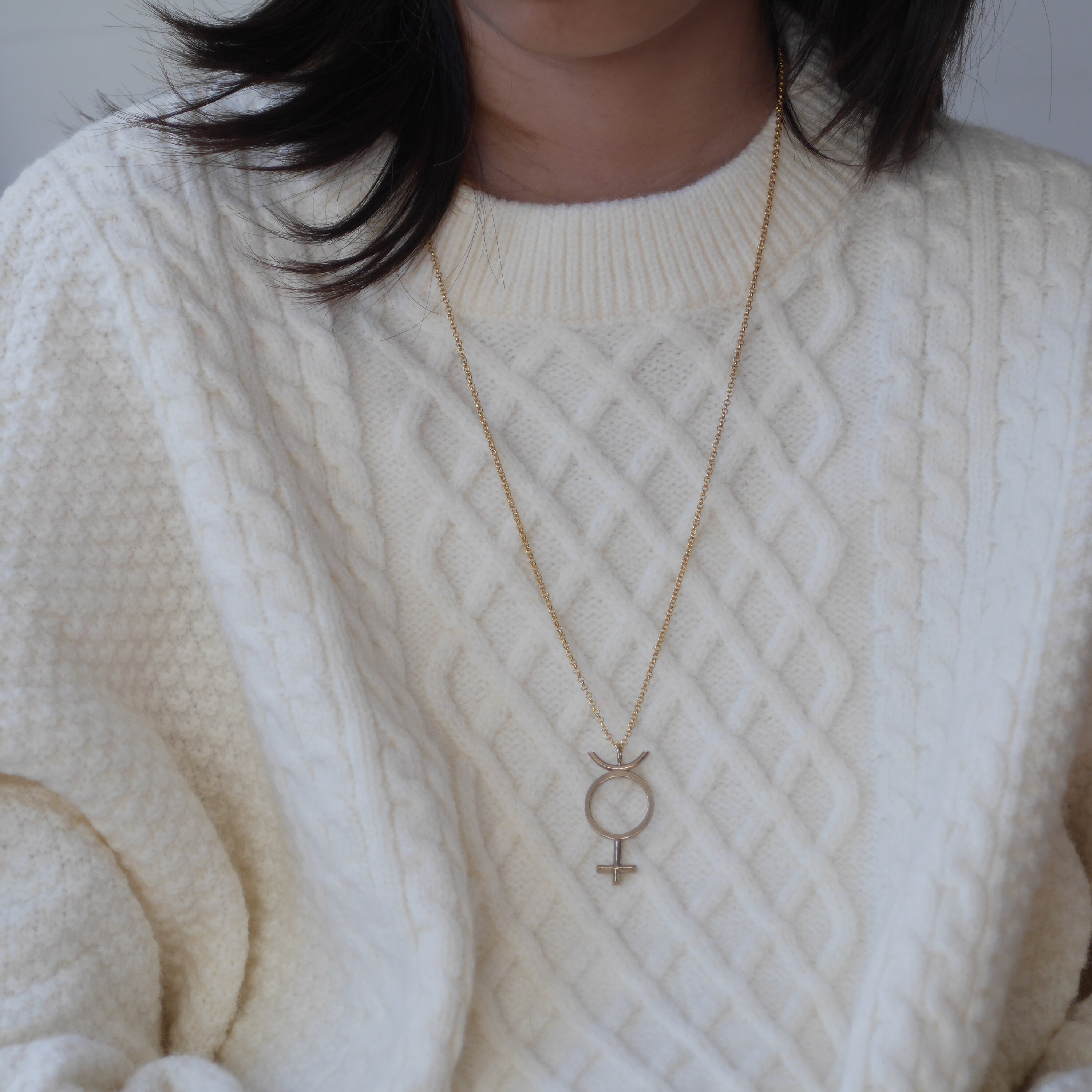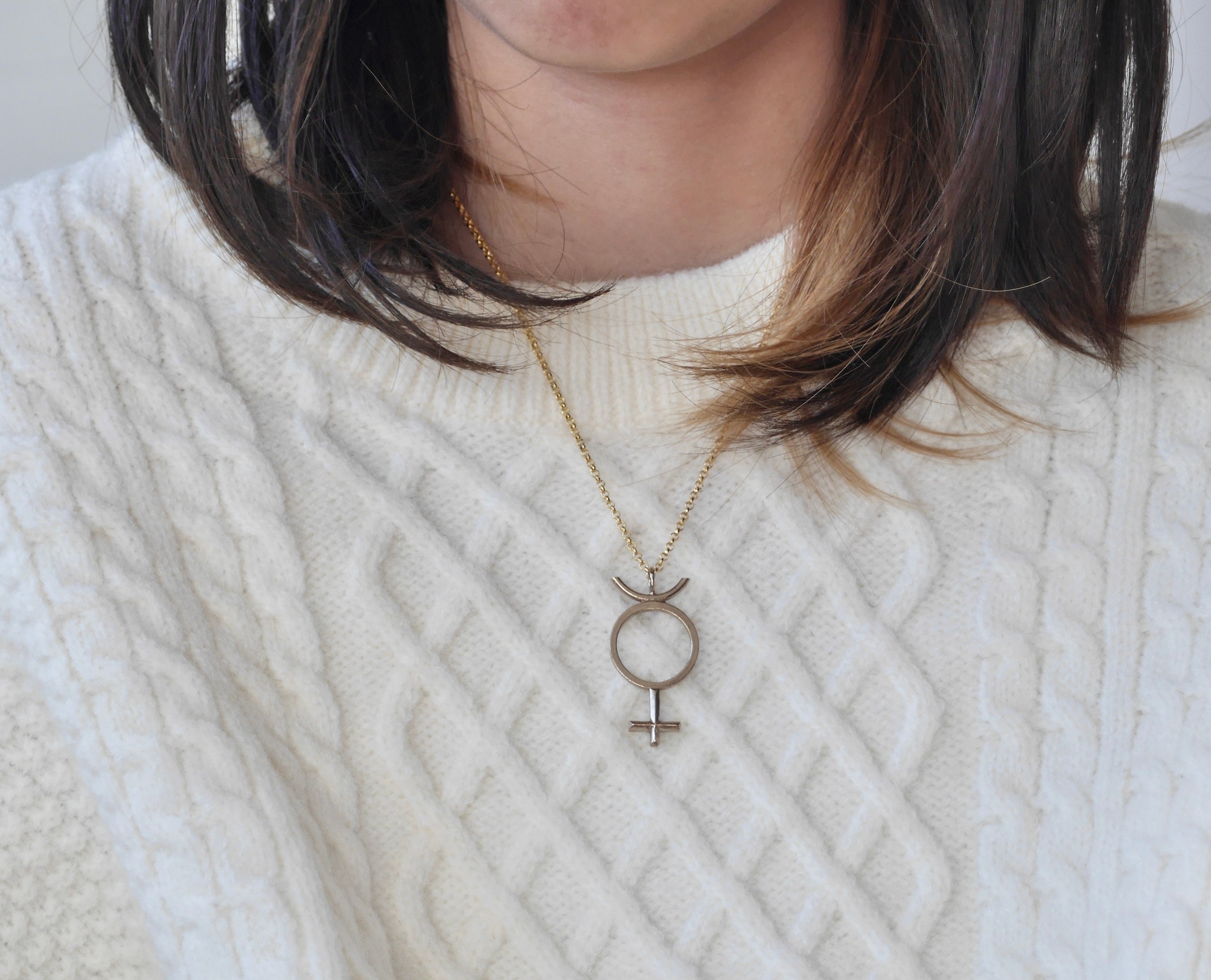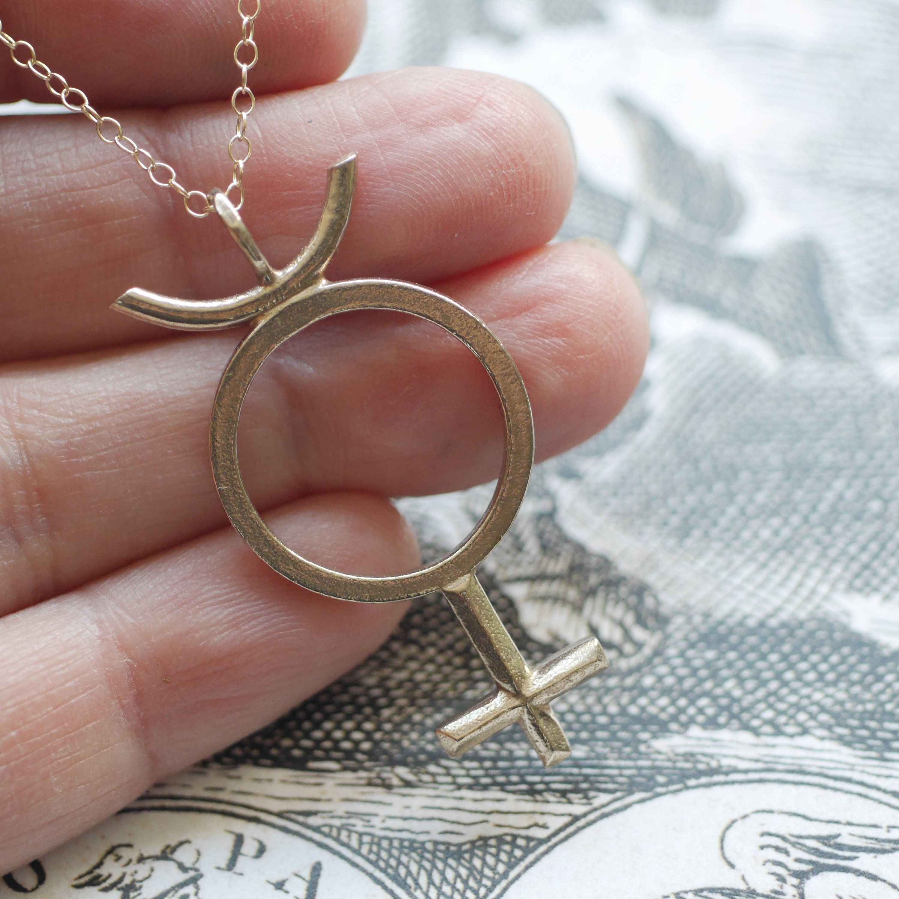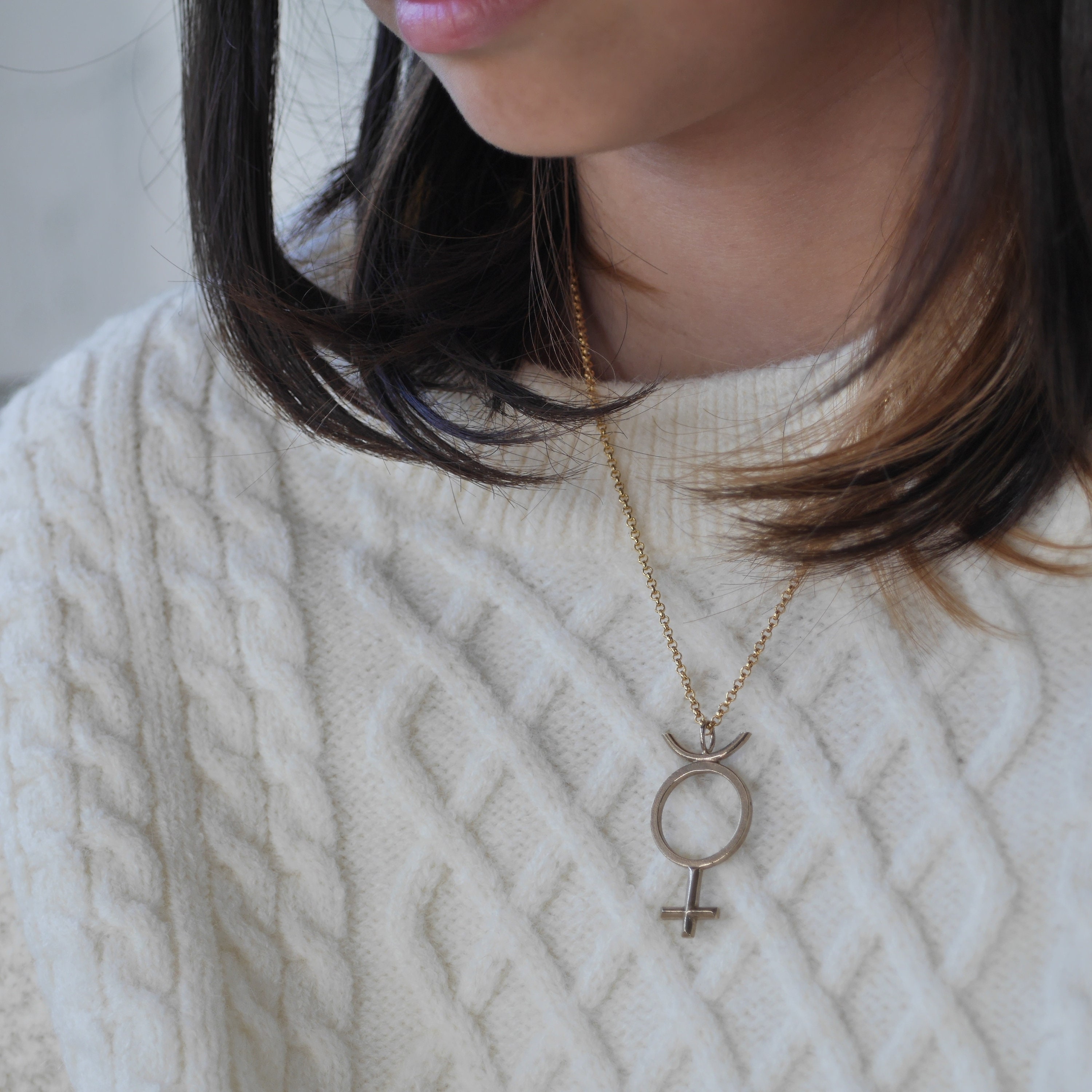 This large-sized bronze mercury glyph symbol charm necklace is a great gift for people who are interested in Jungian psychology, Astrology, Alchemy and Tarot card reading. I offer different chain styles and lengths for this Mercury symbolic jewellery. If you are interested in astrology and you think that you are affected by Mercury retrograde, this necklace might be a great amulet that Mercury is always with you.