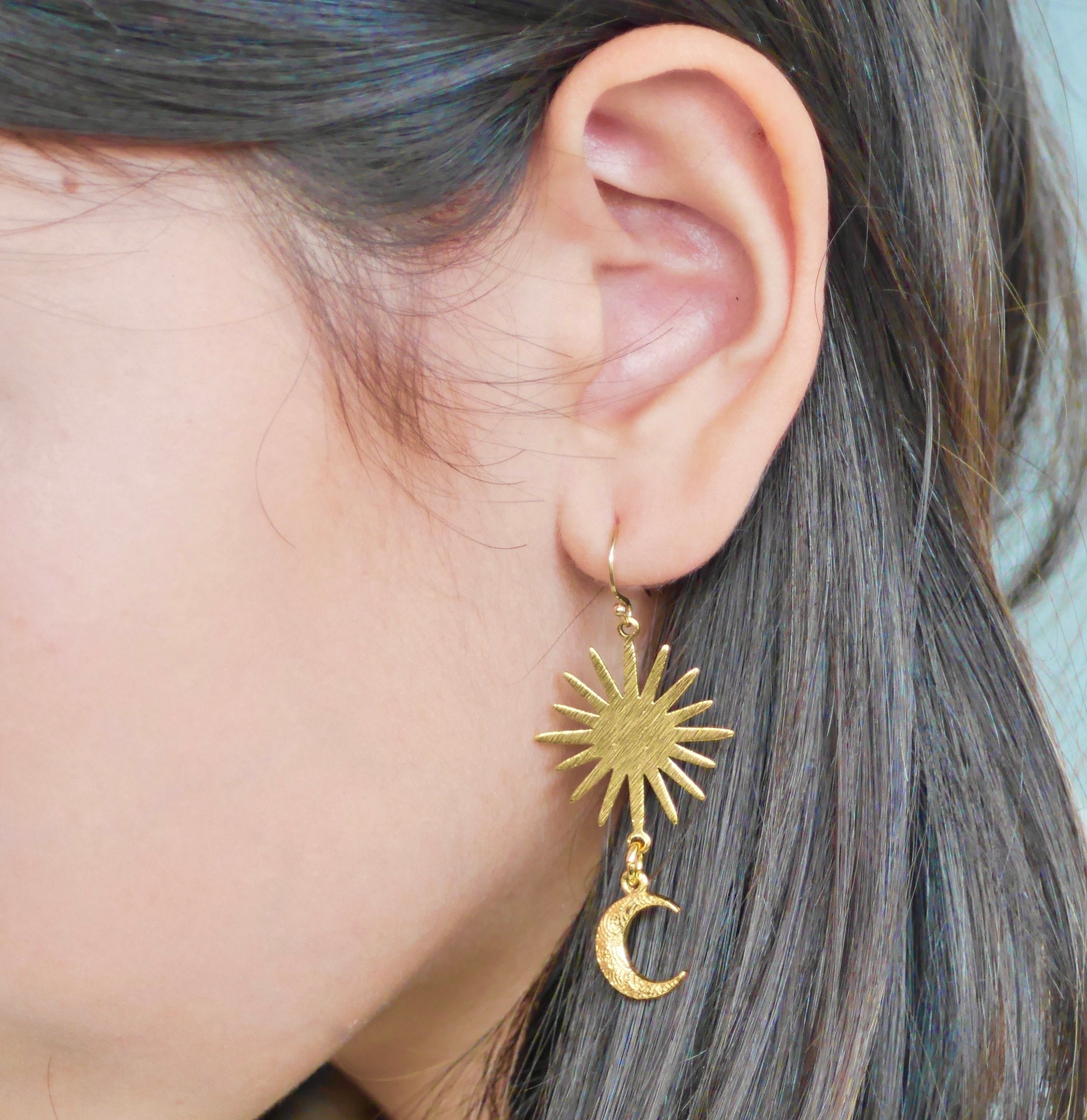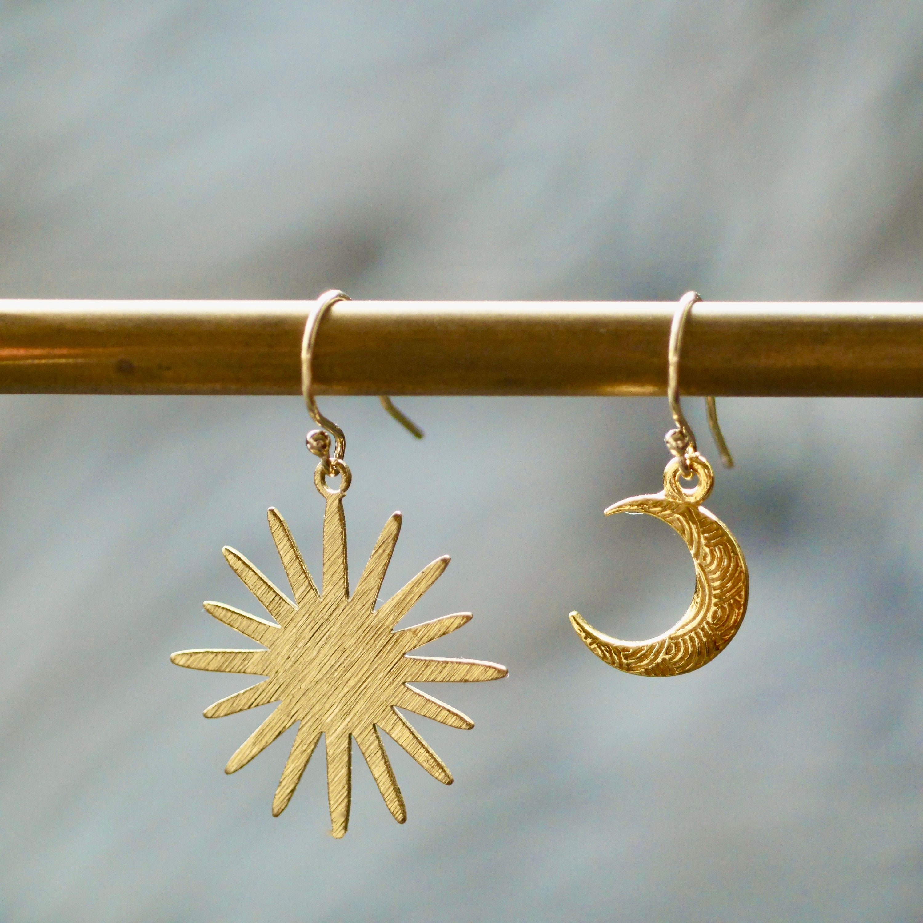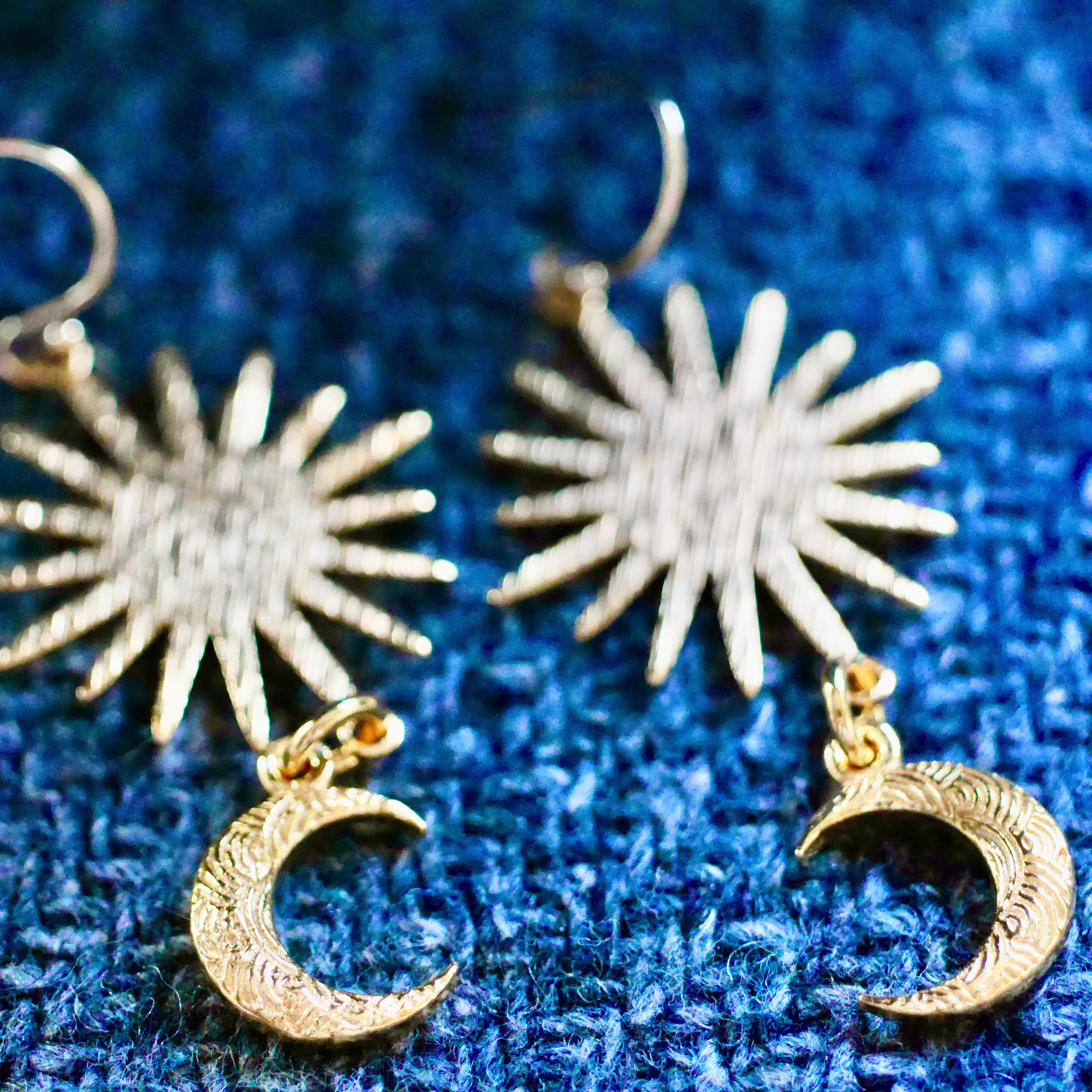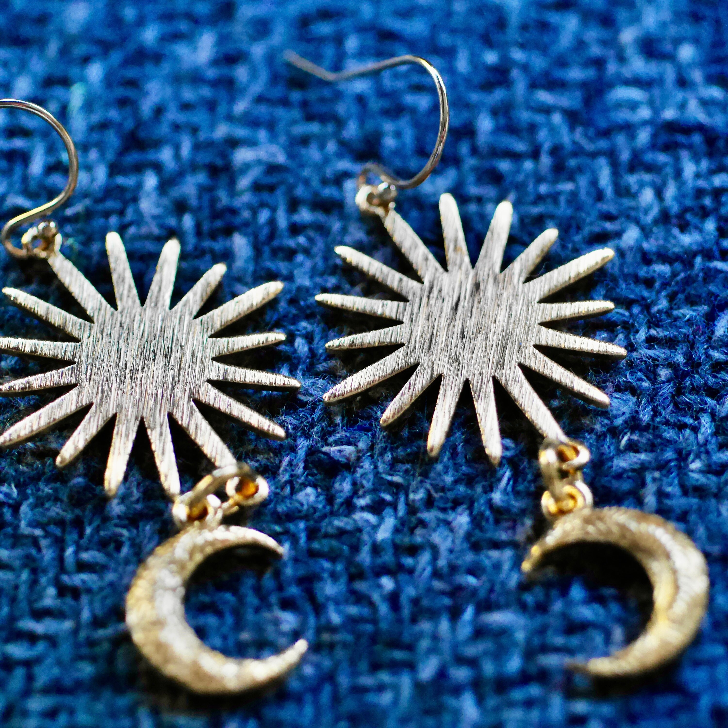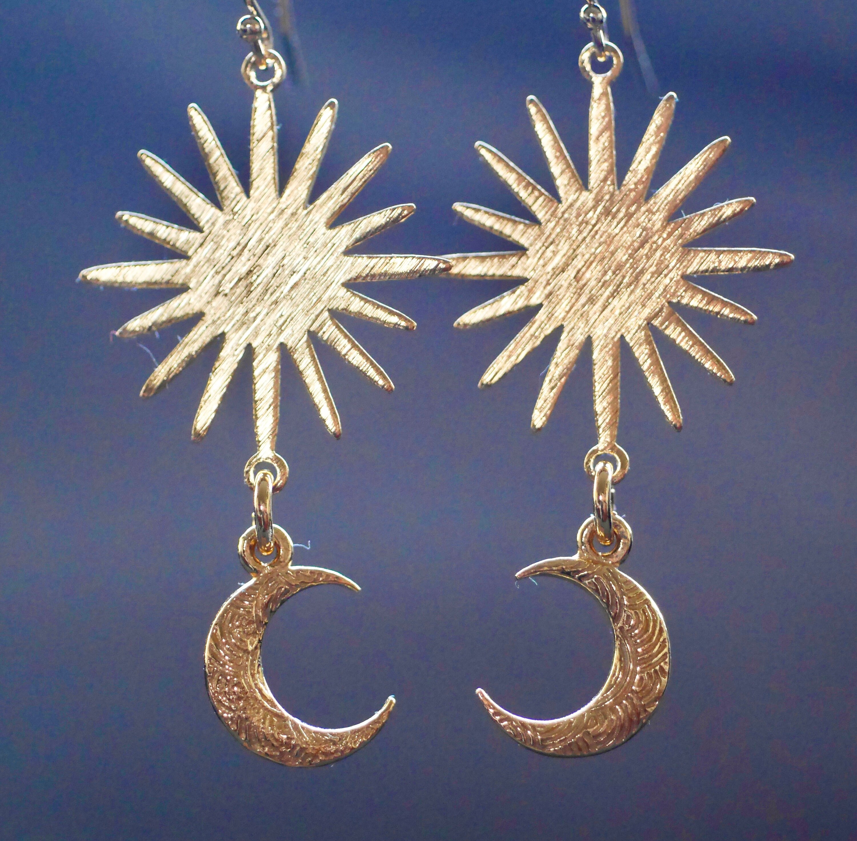 These beautiful Gold Moon and Sun Celestial Drop pair of Earrings come in 2 styles.
