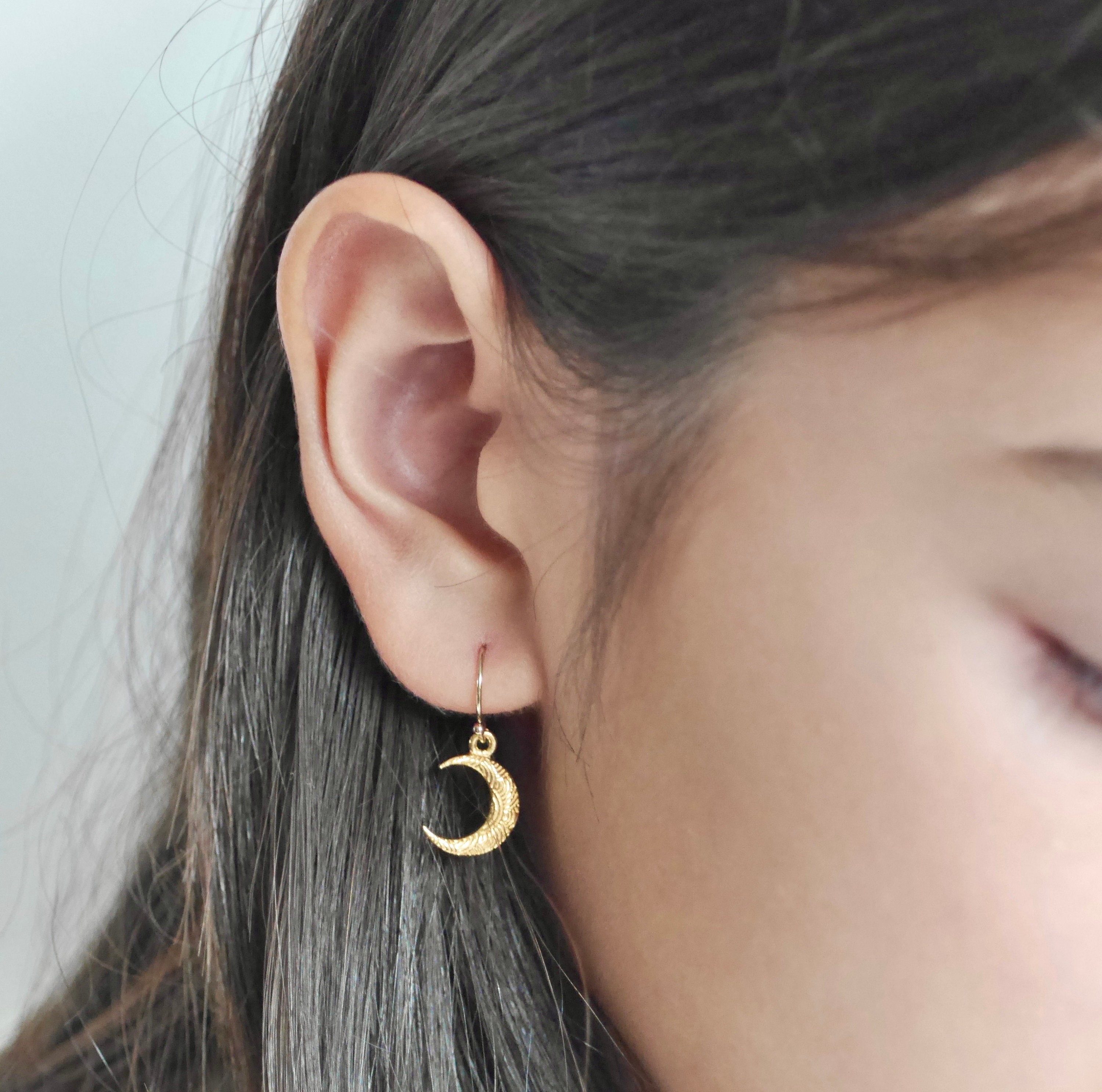 -The Moon charm - 1.3cm width, 1.5cm length x 3mm thickness - choice of raw brass and 18-carat gold plated on raw brass charms.
