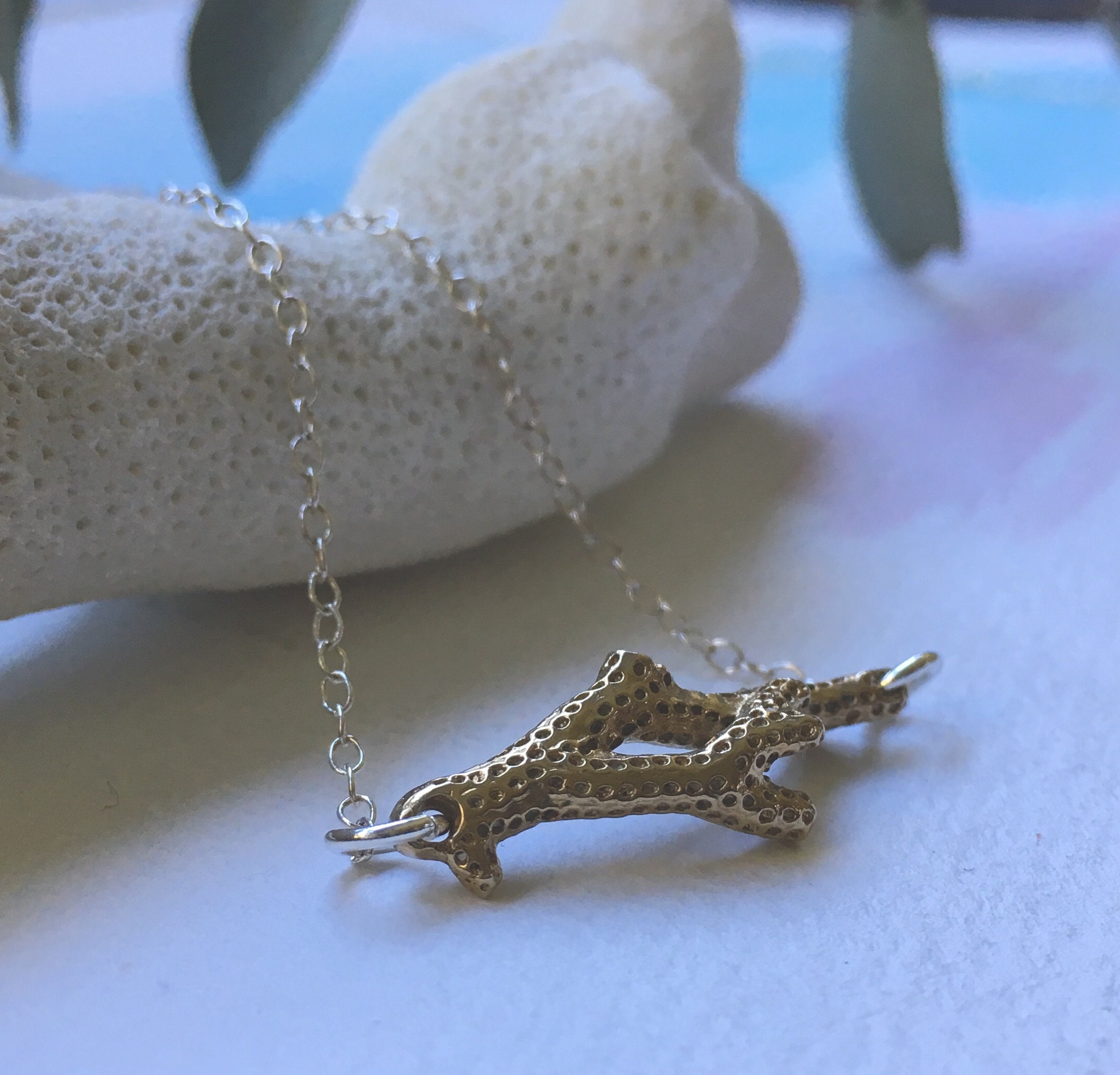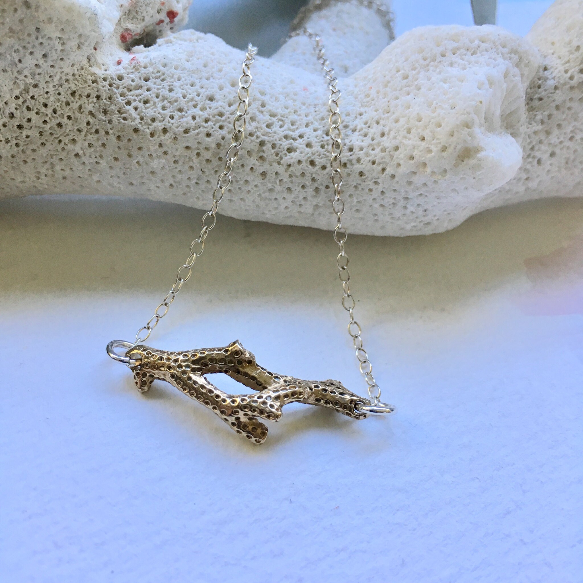 Marine Theme Casted Coral Necklace in Sterling Silver and Bronze