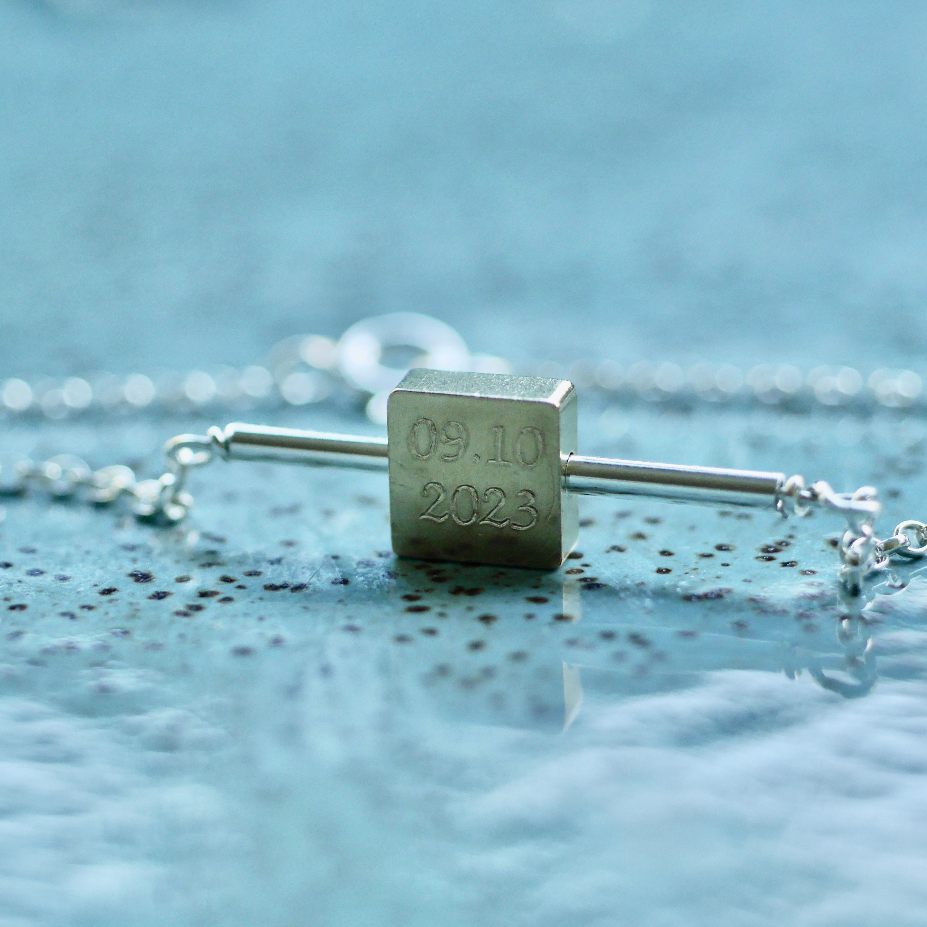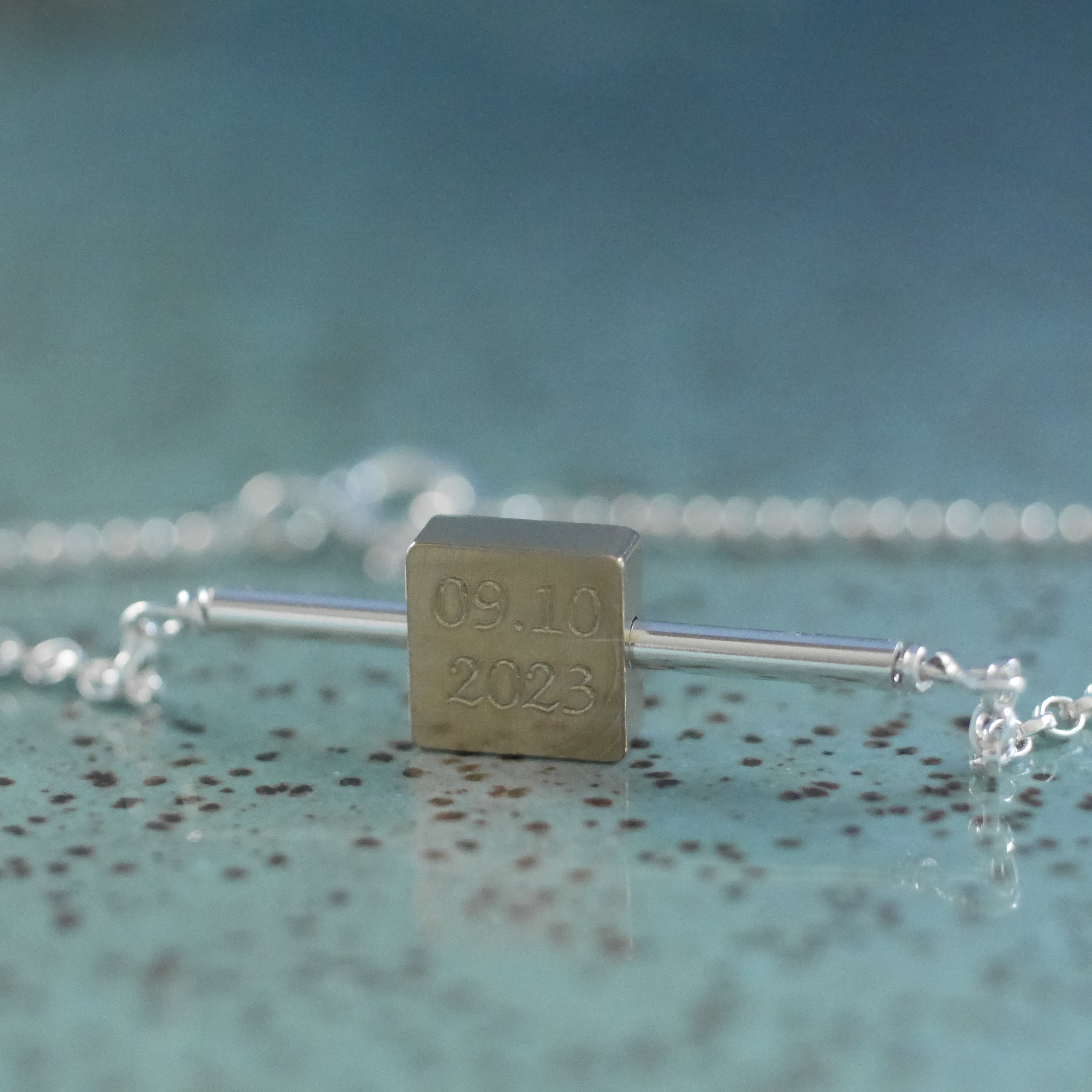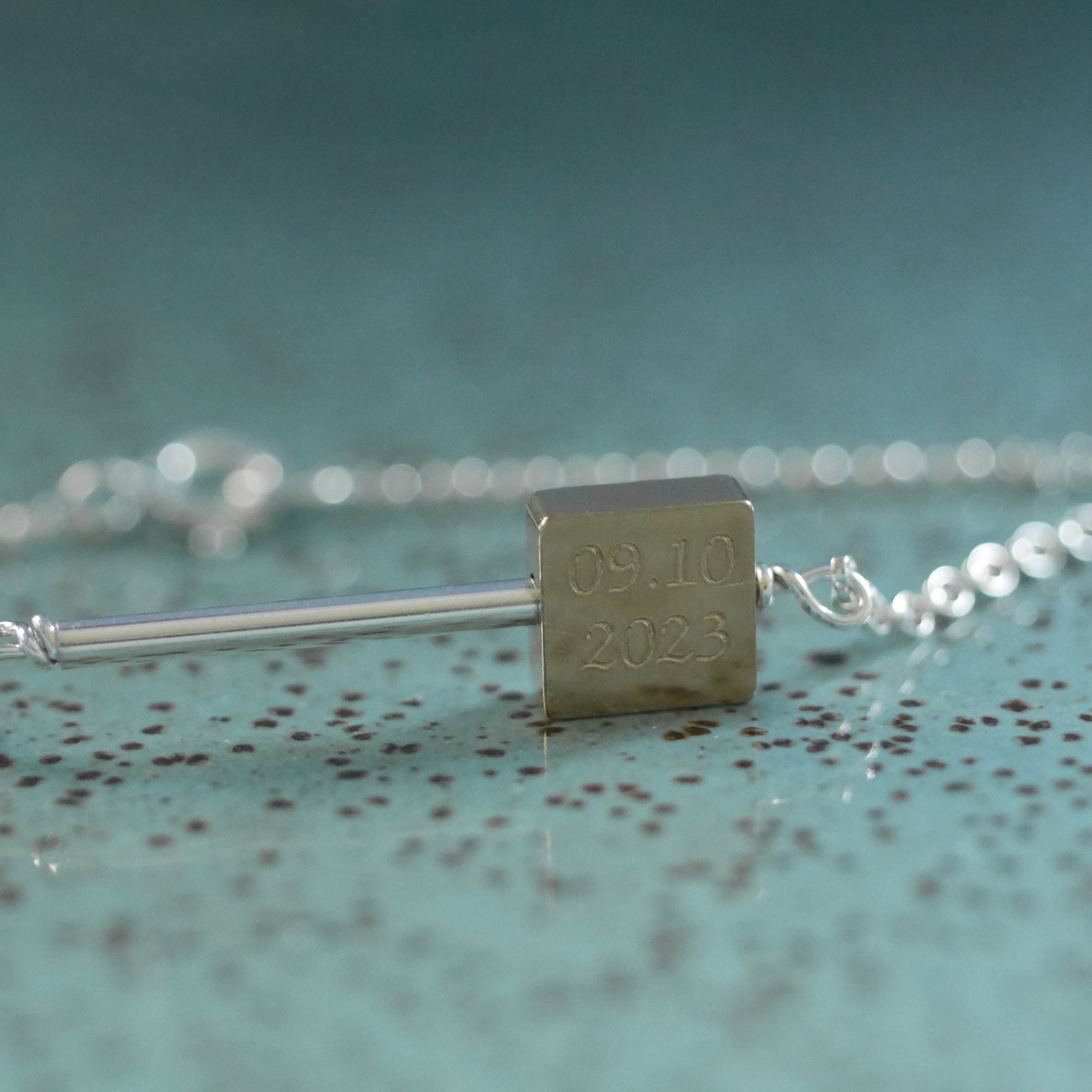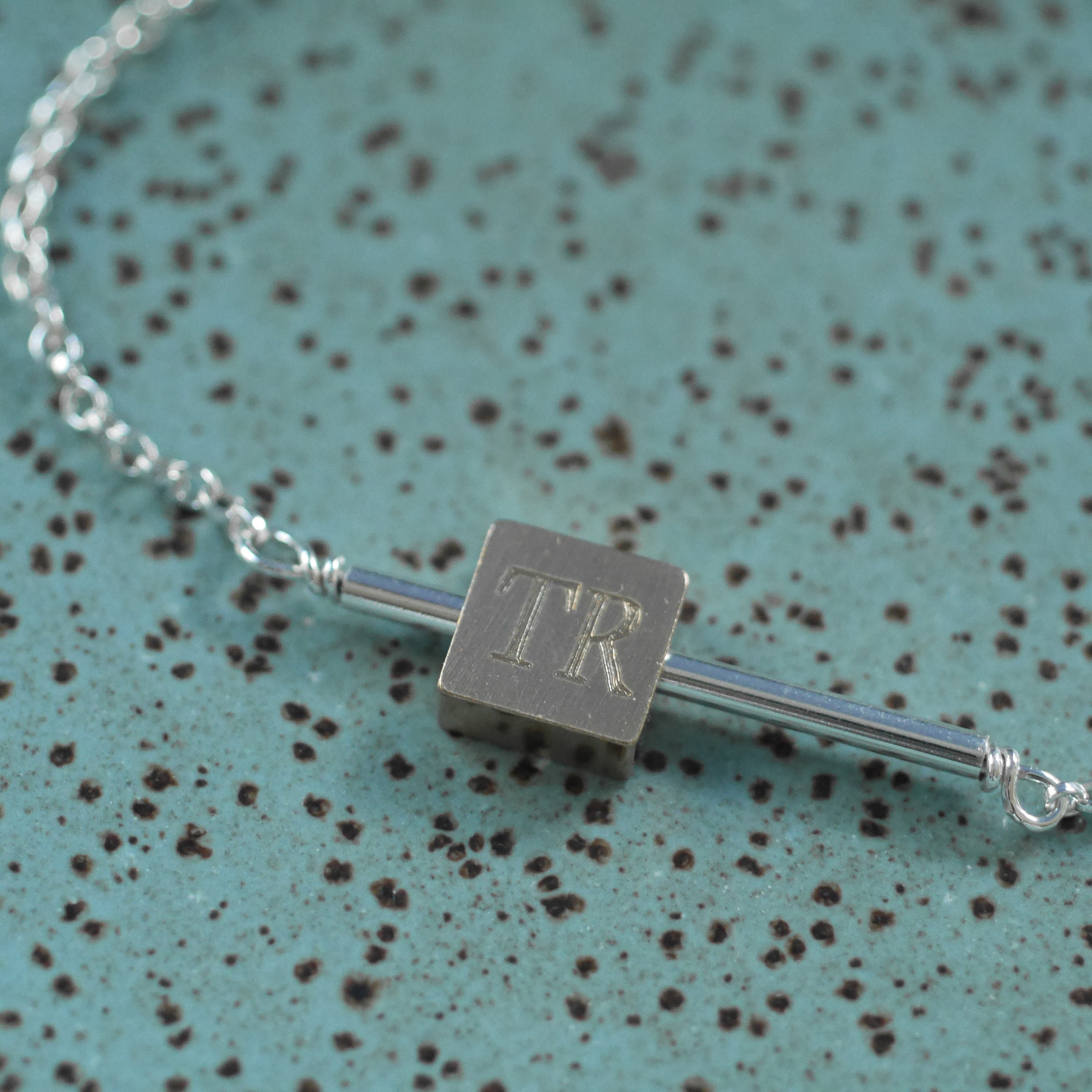 This unique unisex mixed metal bracelet comes with a personalisation option. I can engrave both sides of the brass cube charm to make it even more special. The brass cube charm slides on the sterling silver bar and you can wear the bracelet as a fidget bracelet to help soothe your anxiety.