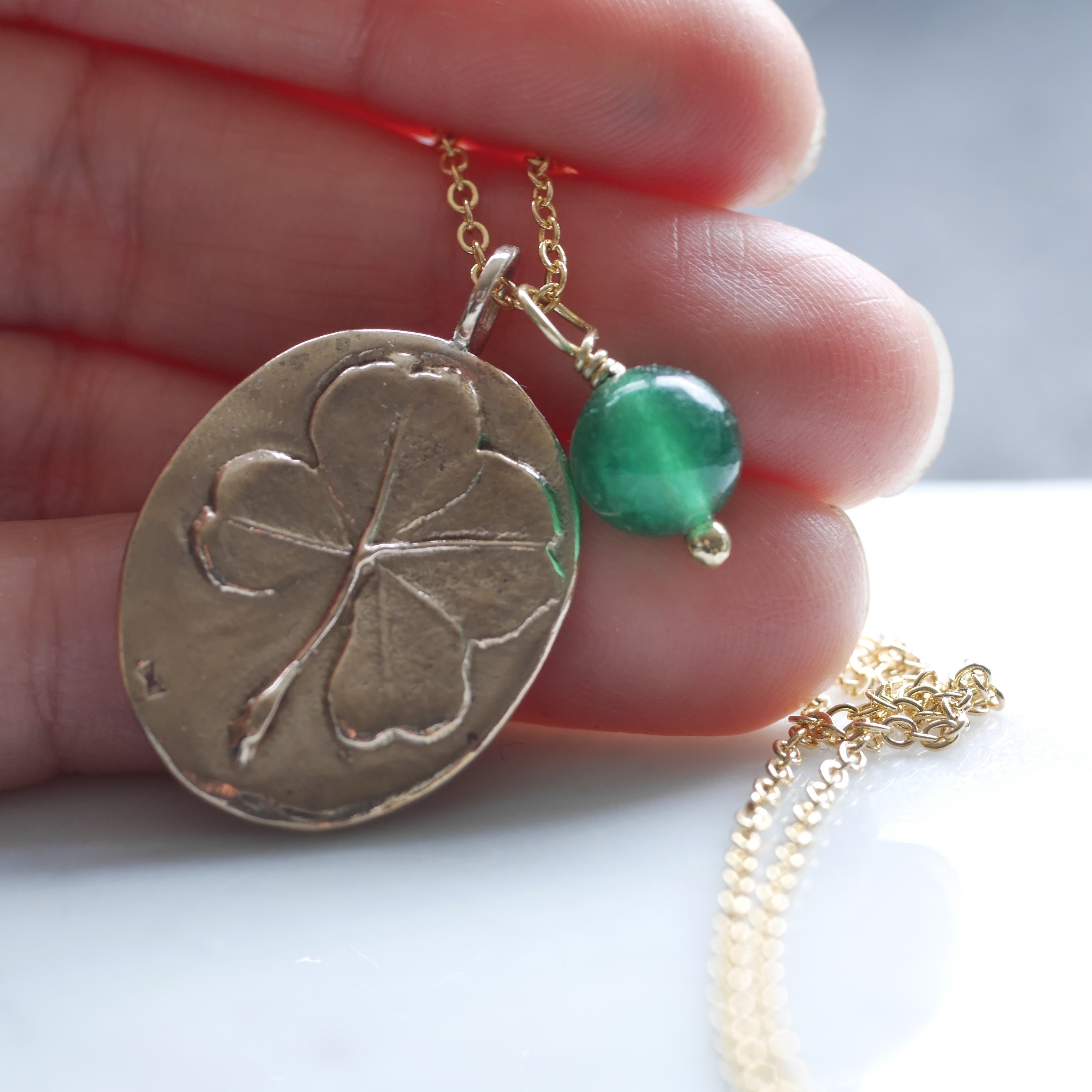 Customed four-leaf clover coin pendant charm necklace has the option to add birthstones, making it even more special and meaningful.