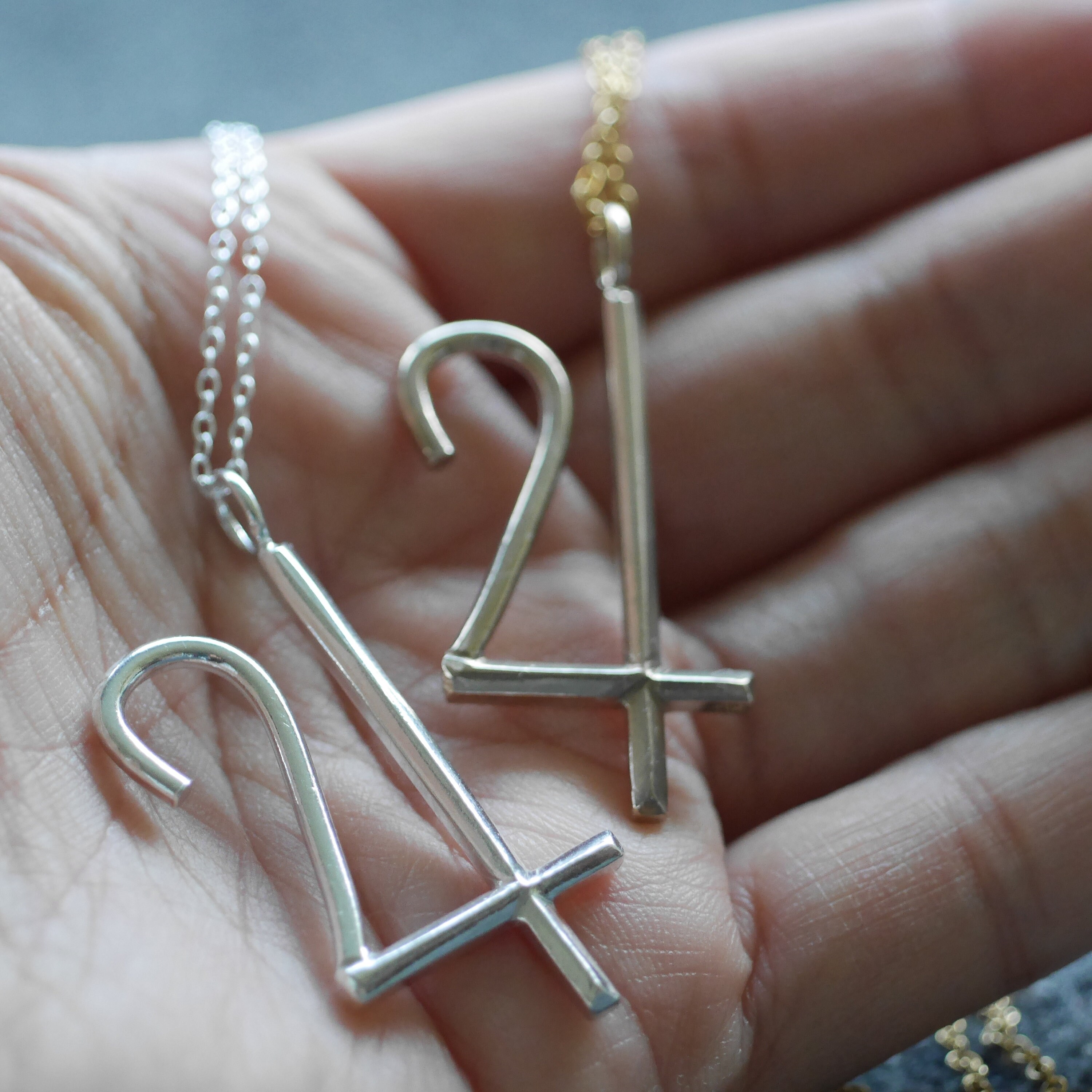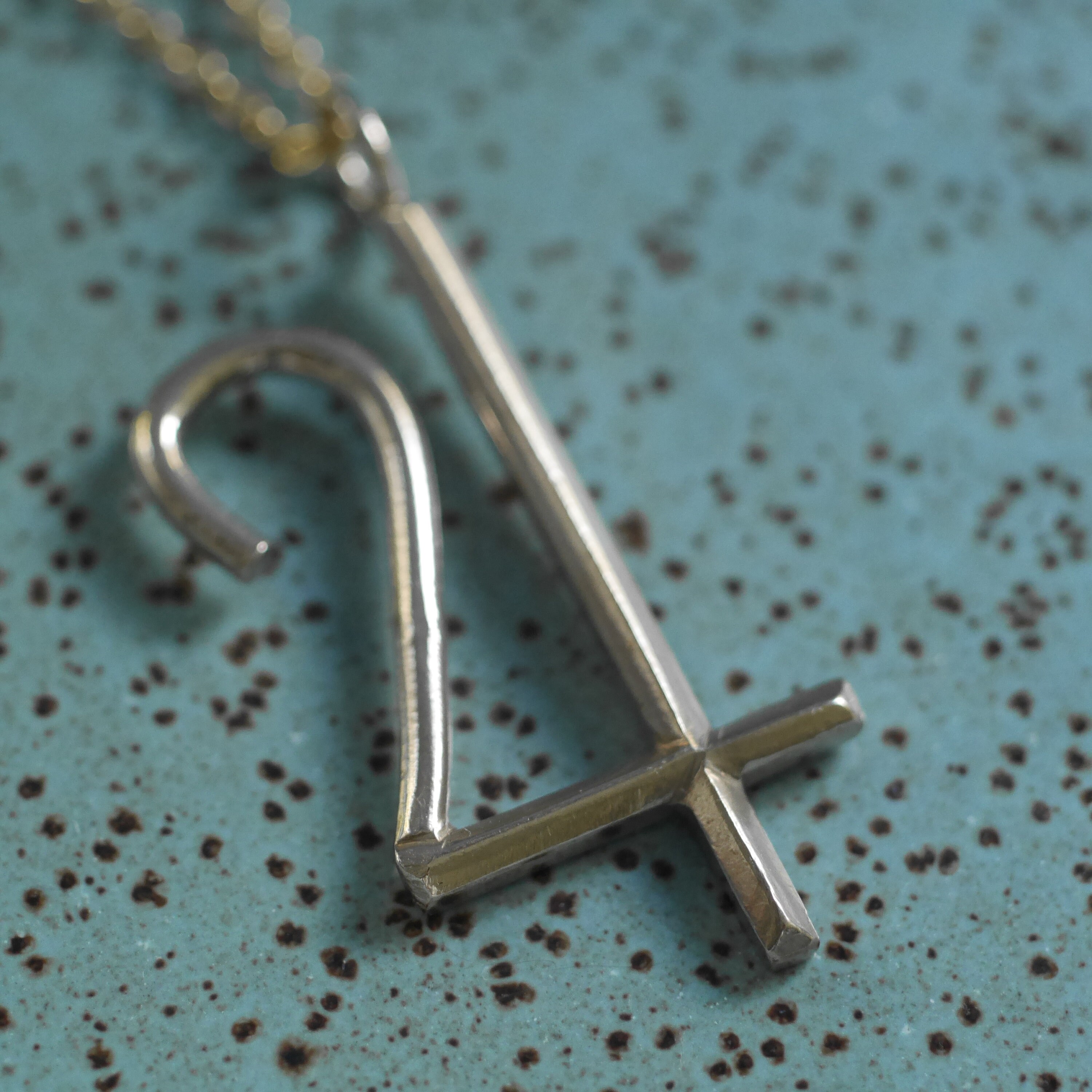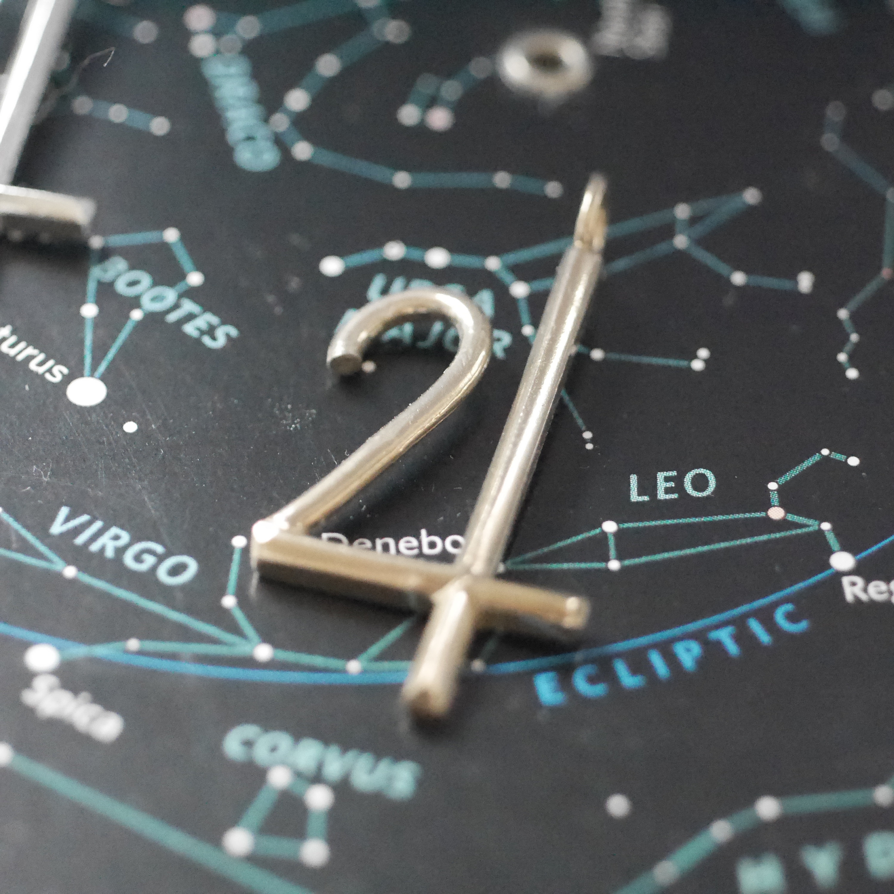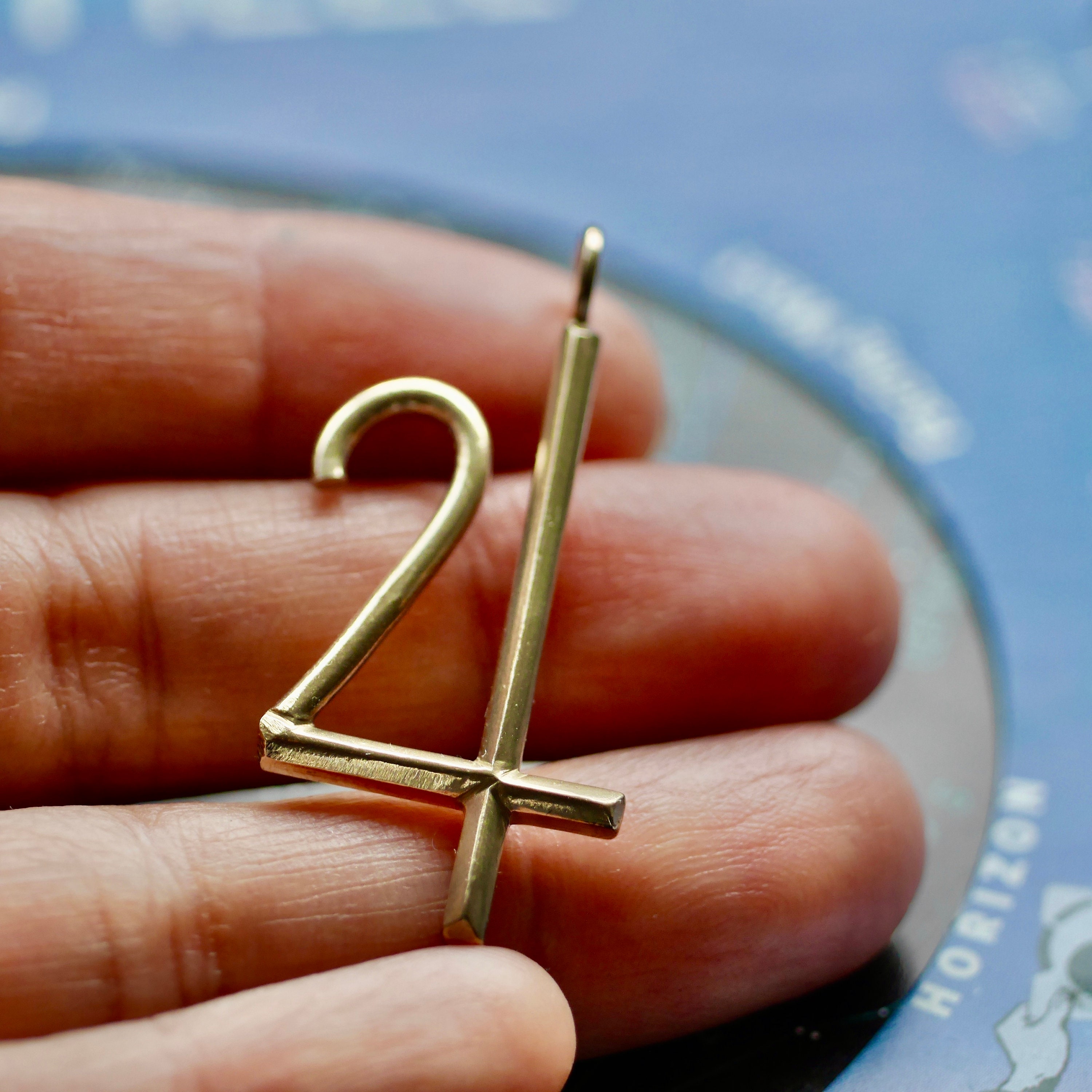 Handmade solid bronze Jupiter Astrological Planetary Symbol Necklace. Alchemy Jupiter Sign Pendant.