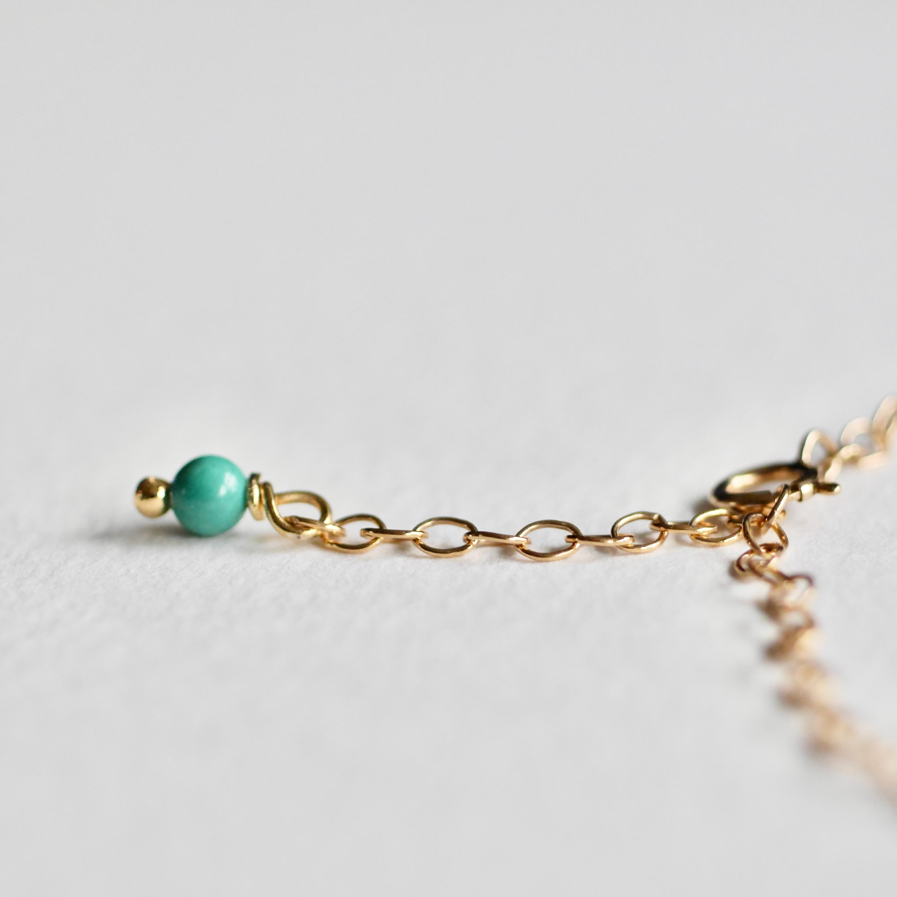 Enhance your style with this exquisite minimalist turquoise bracelet, featuring 3mm turquoise stones on a gold-filled chain. The bracelet showcases a delicate gold circle charm, made from 18-carat gold plating, and is adorned with turquoise gemstone beads. This dainty gold bracelet is adjustable, with a gold-filled linked chain, ensuring a perfect fit for wrist sizes between 14 cm and 21 cm. It’s a timeless piece of turquoise jewellery, blending elegance with simplicity, perfect for any occasion.