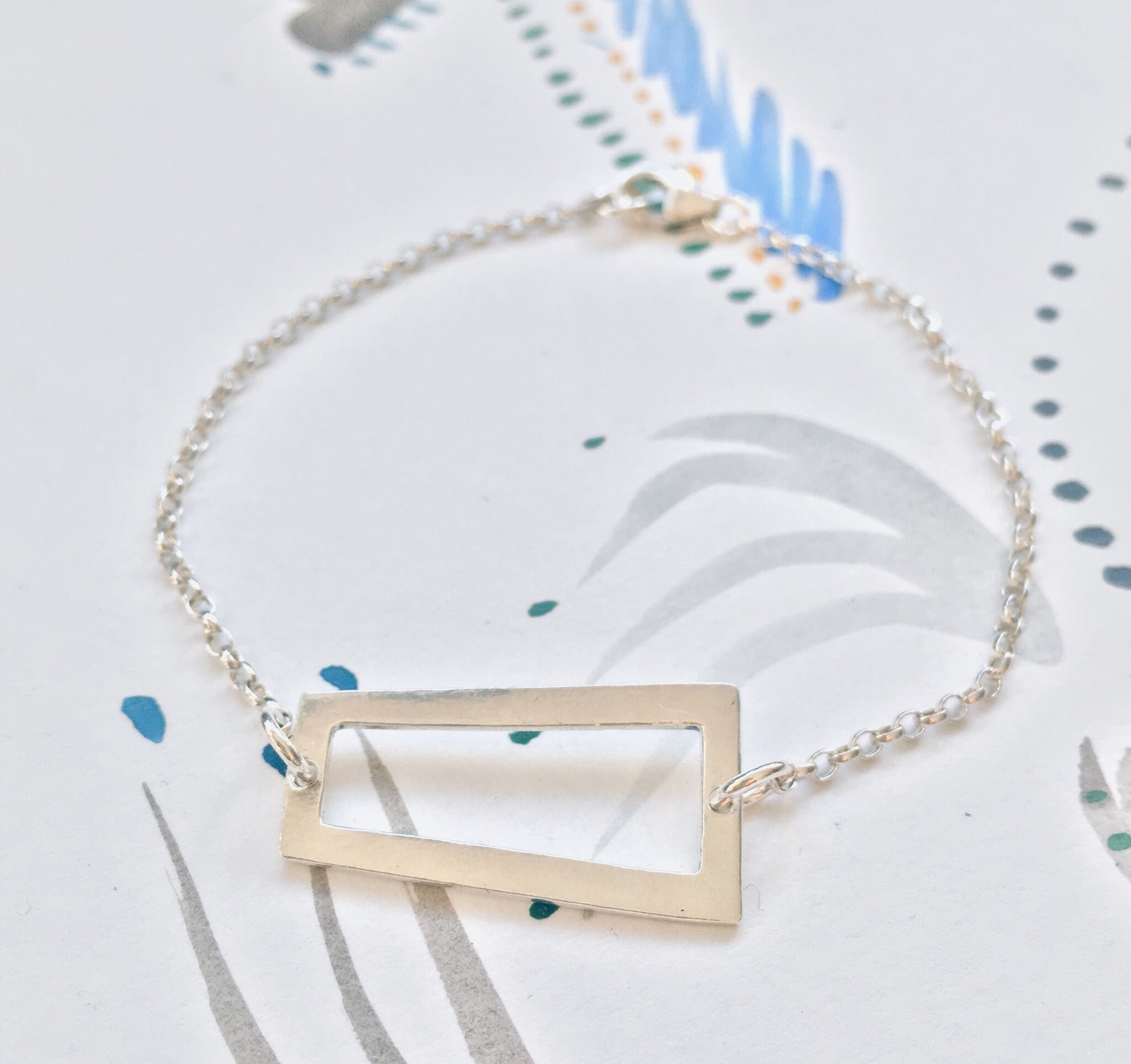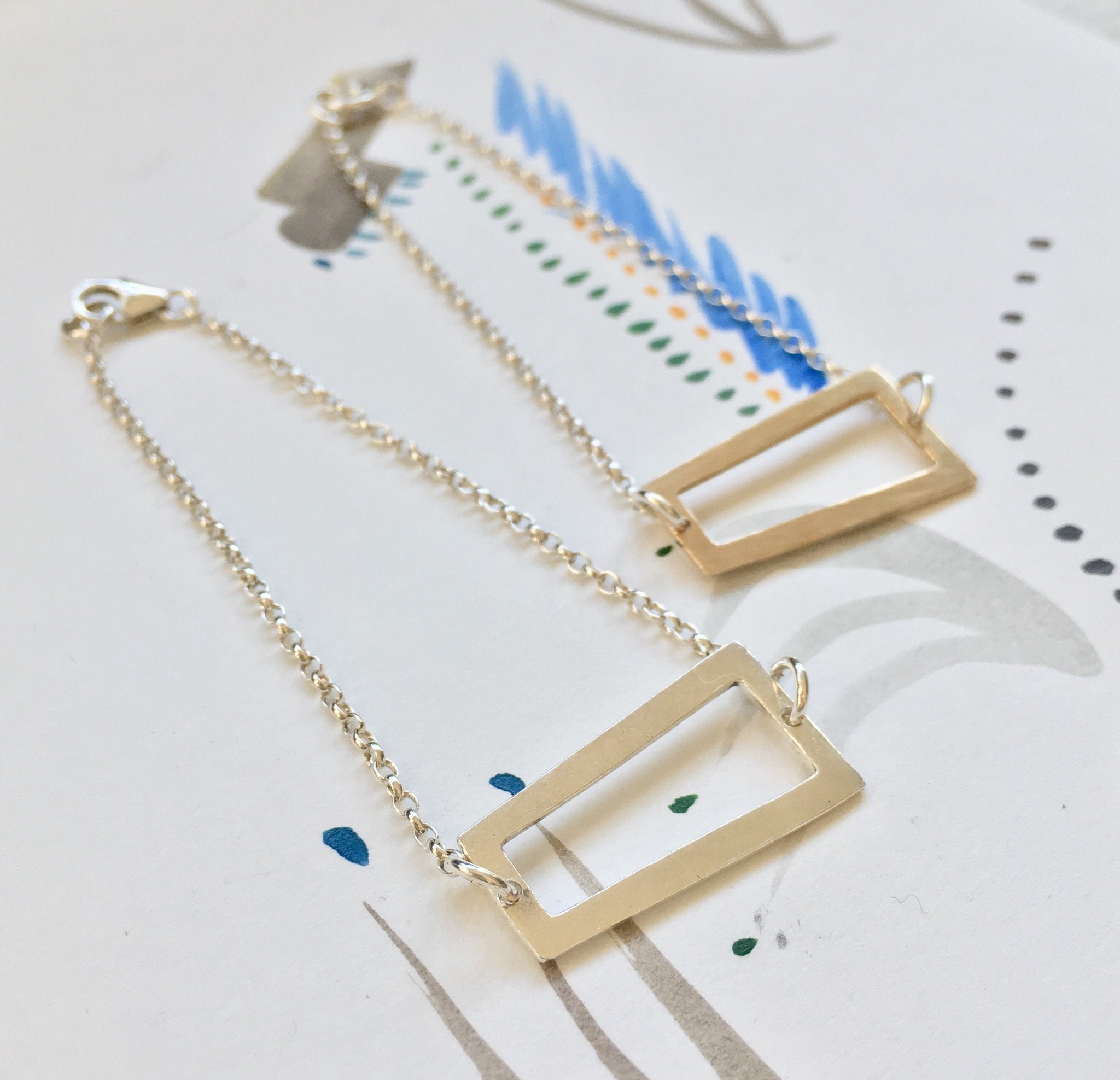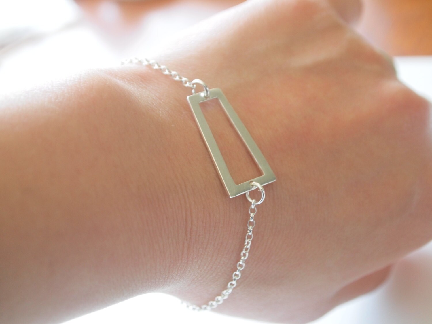 Personalised minimalist geometric Trapezium bracelet choice of sterling silver or bronze trapezium shape.