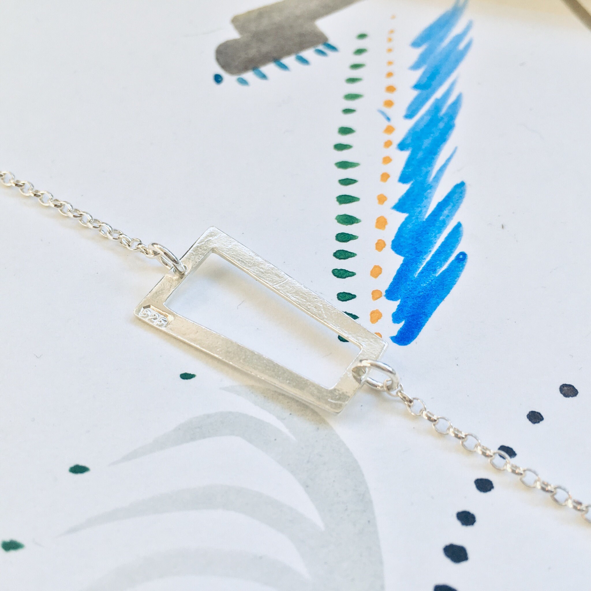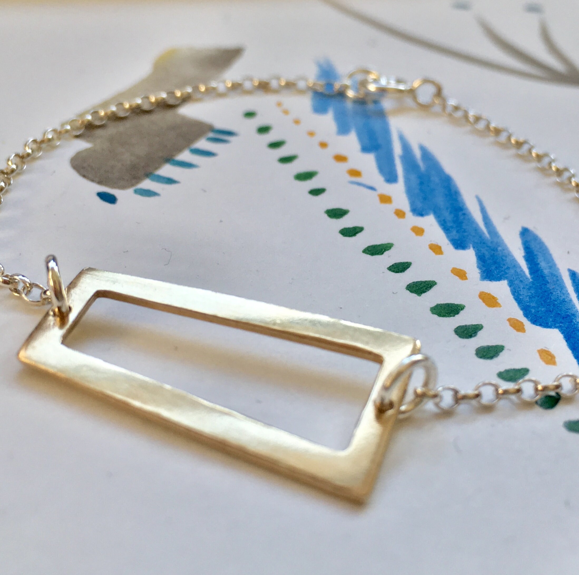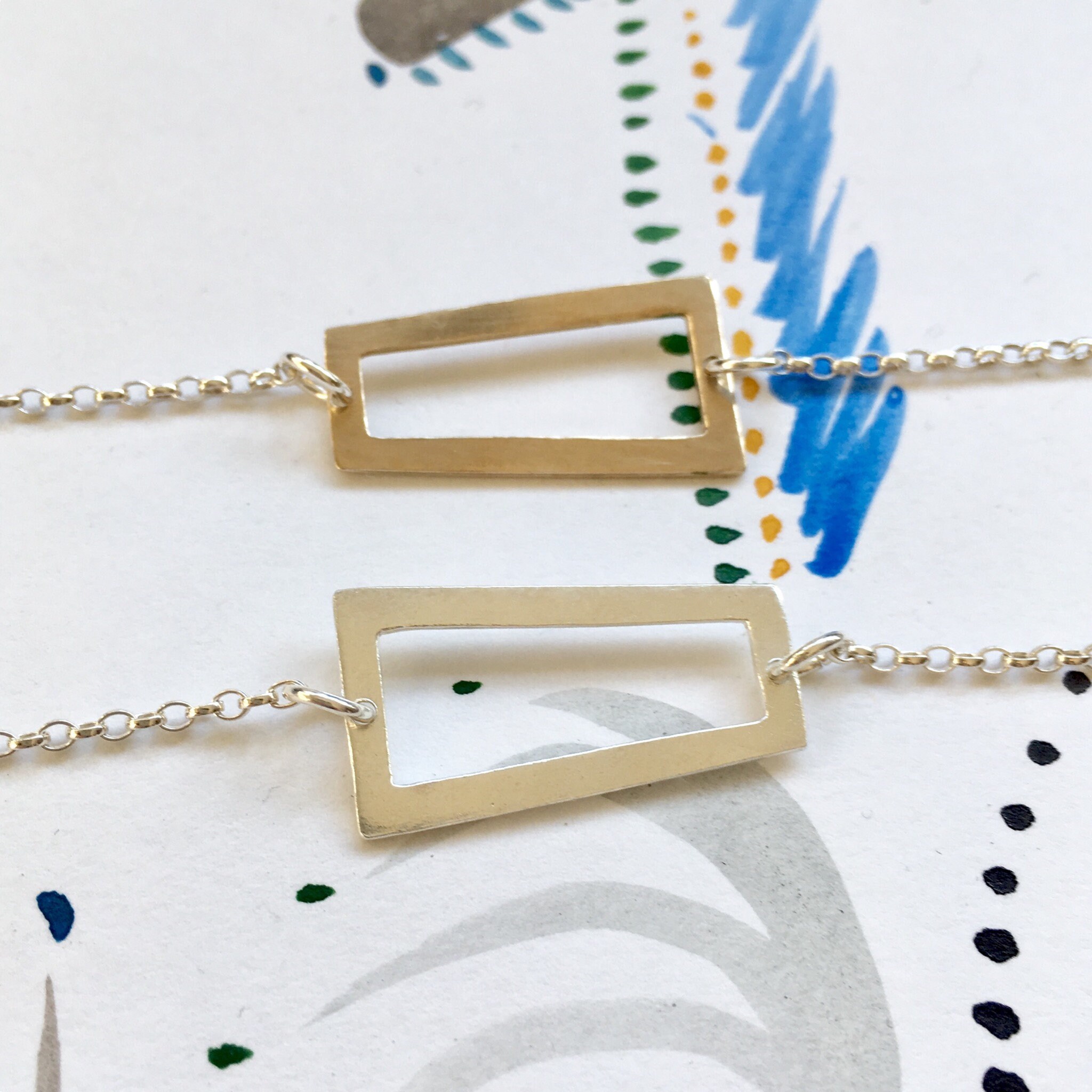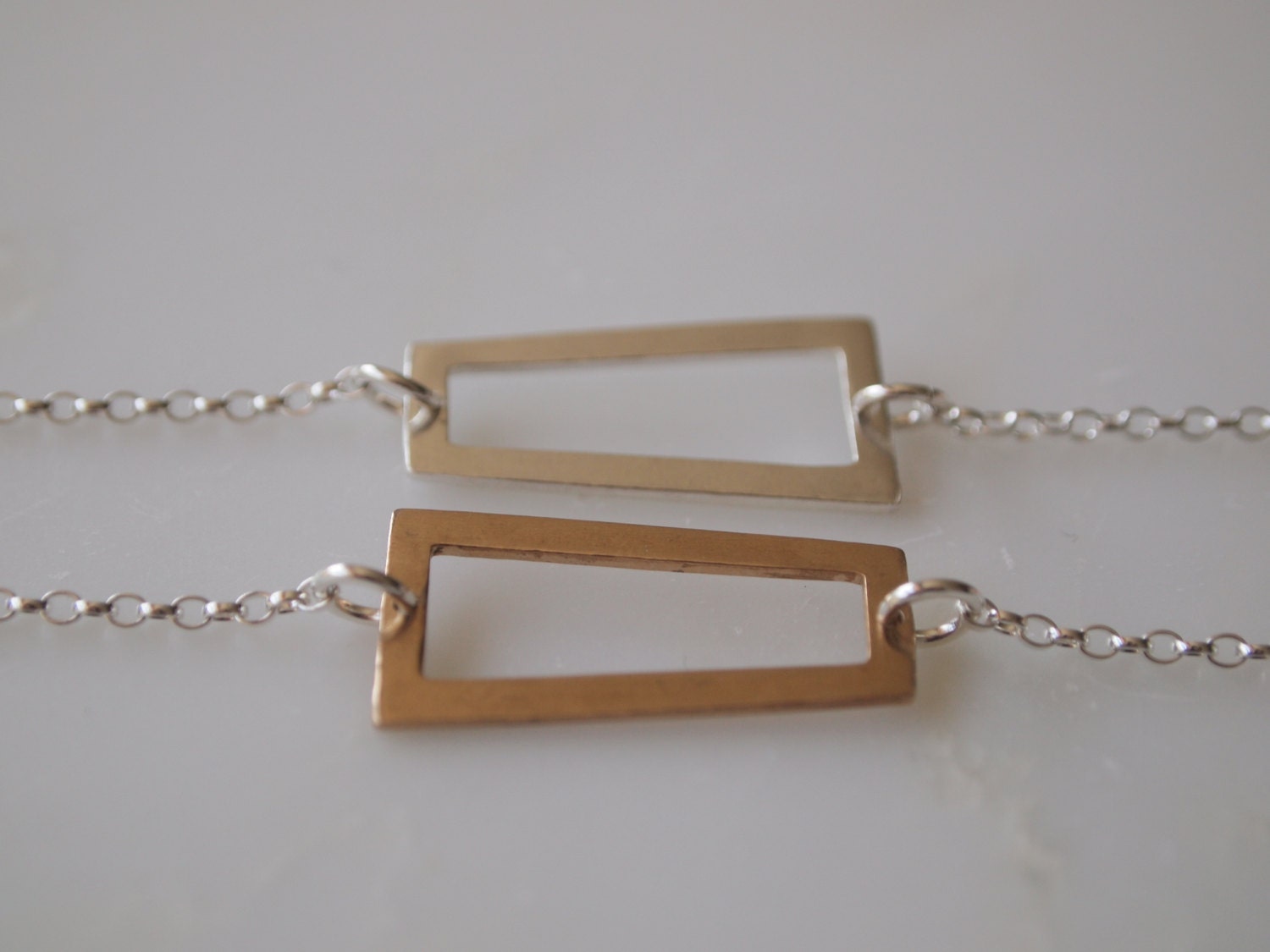Very unique minimal geometric rectangle shape bracelet comes with free personalisation.