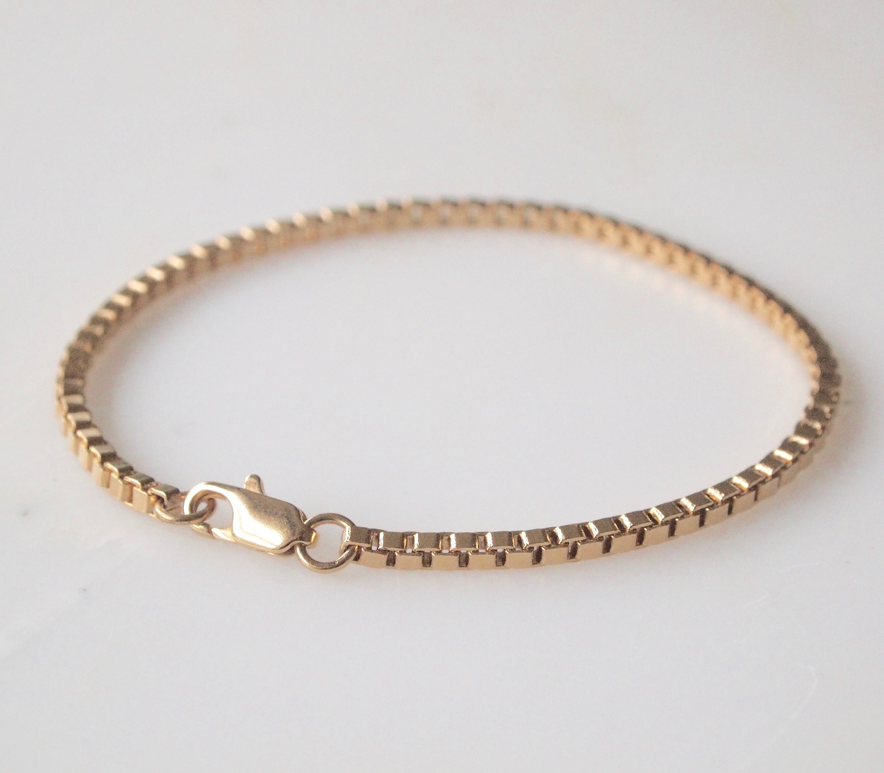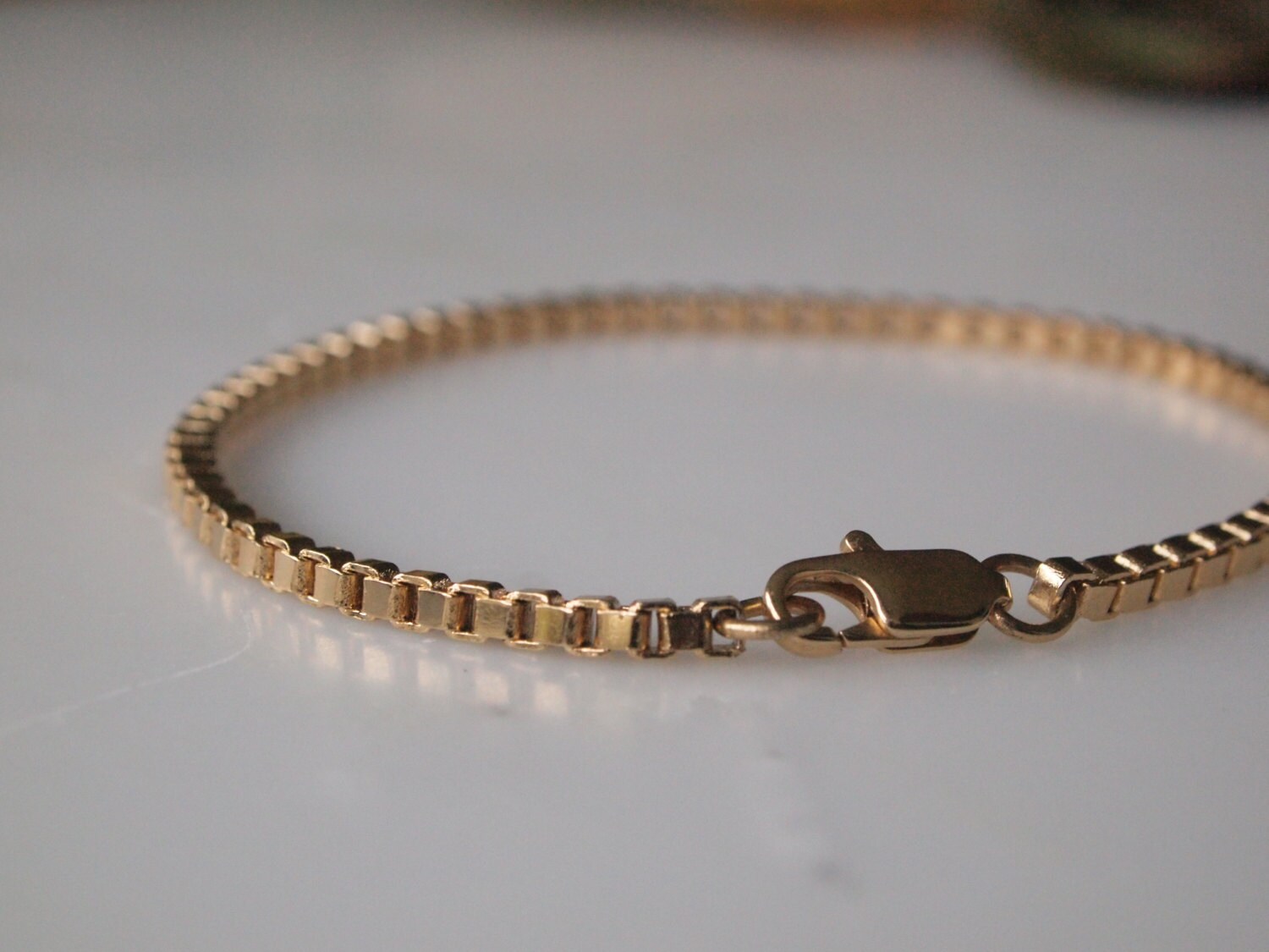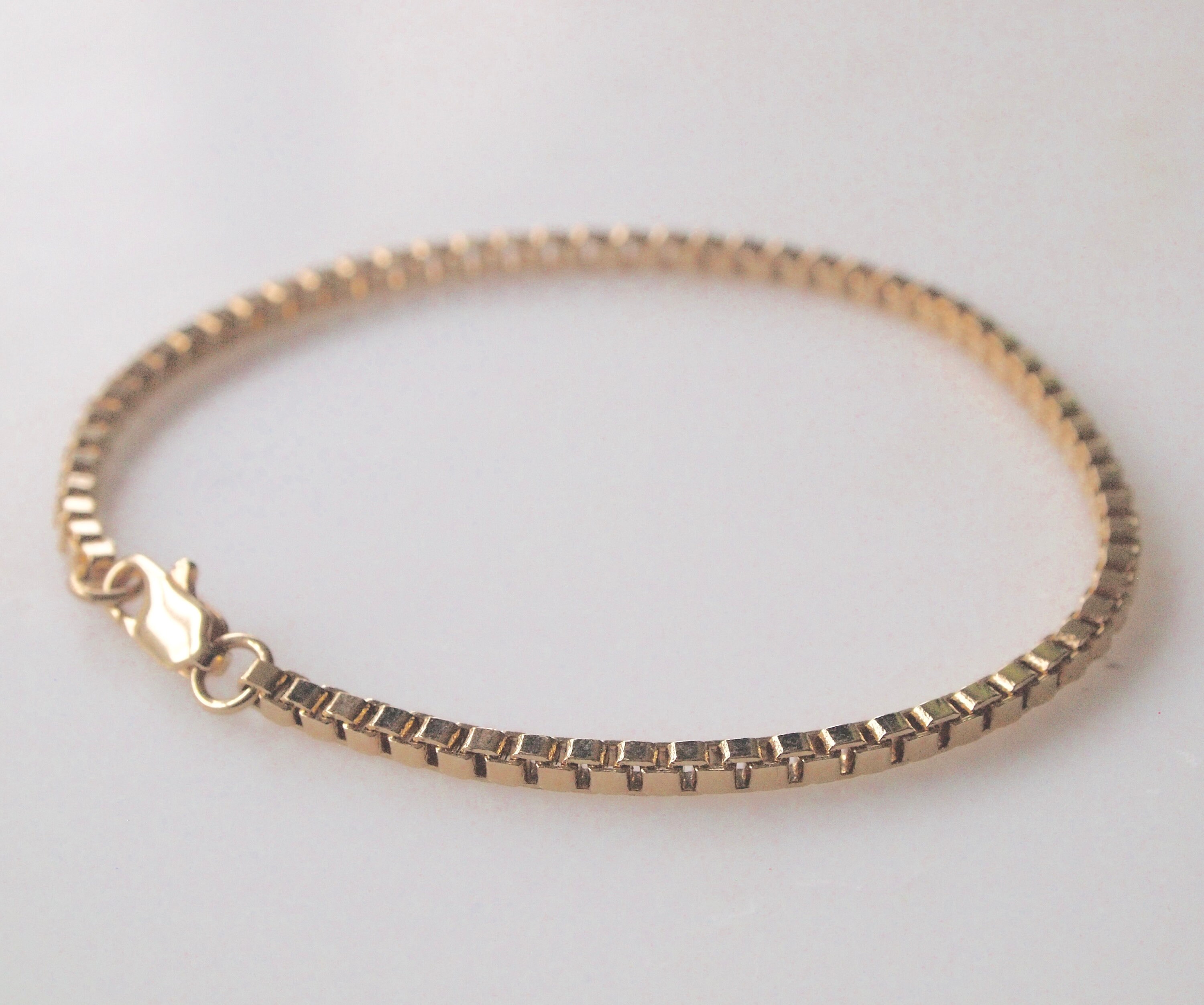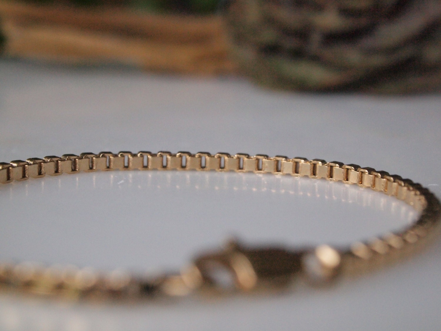 Minimalist gold bracelet comes with delicate, elegant finish with carefully selected 14 carat gold filled box chain. This is an unisex gold bracelet can fit for both male and female. I have been selling this minimalist box chain bracelet for a while and had a good feedback from them.
