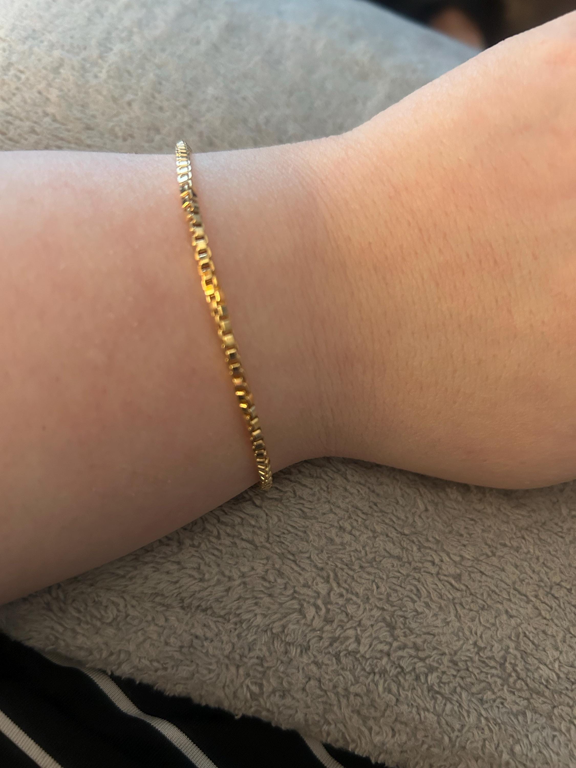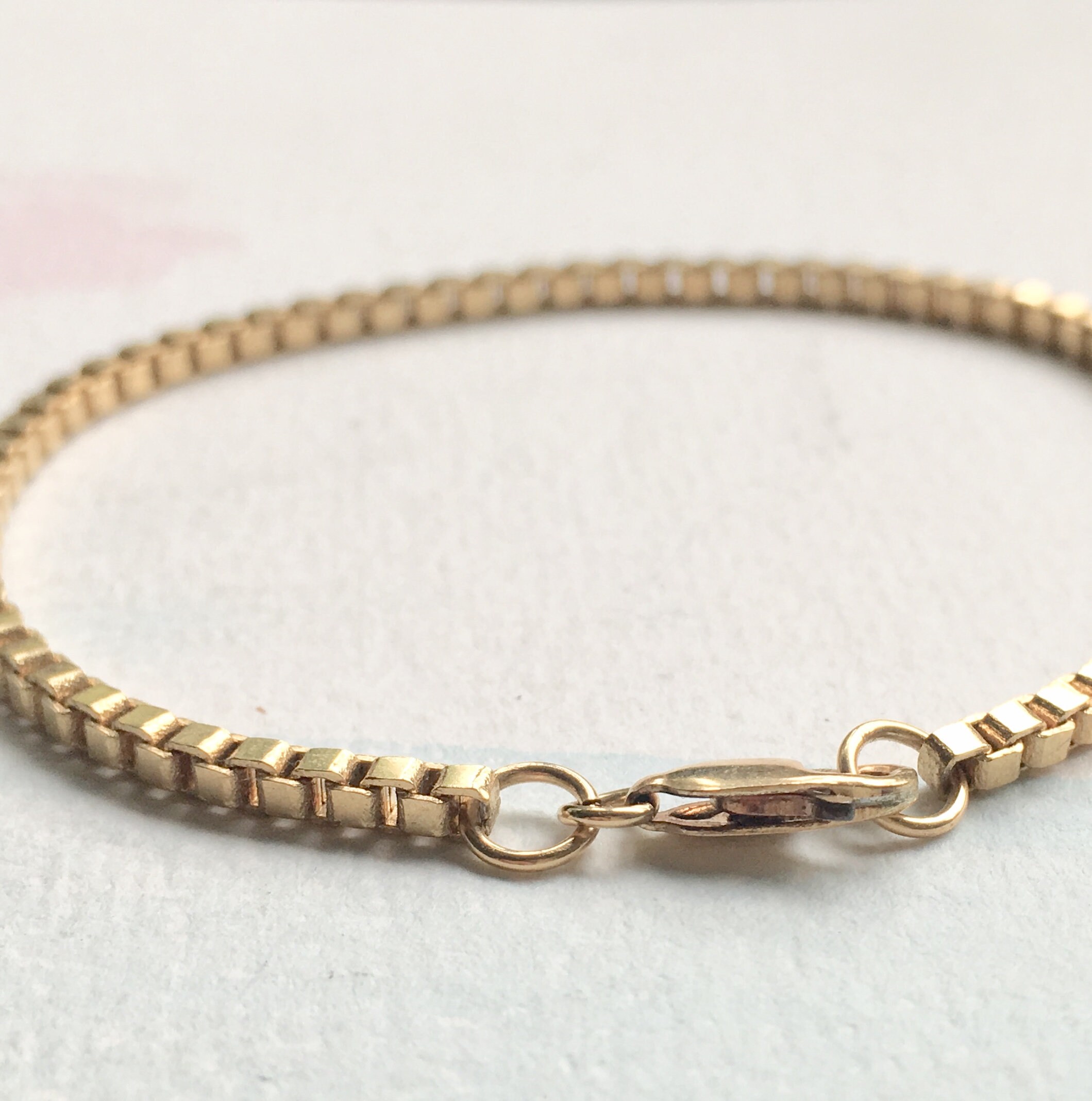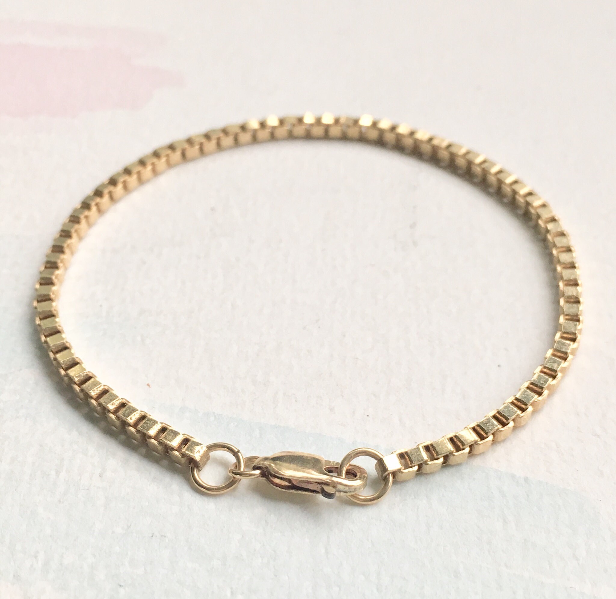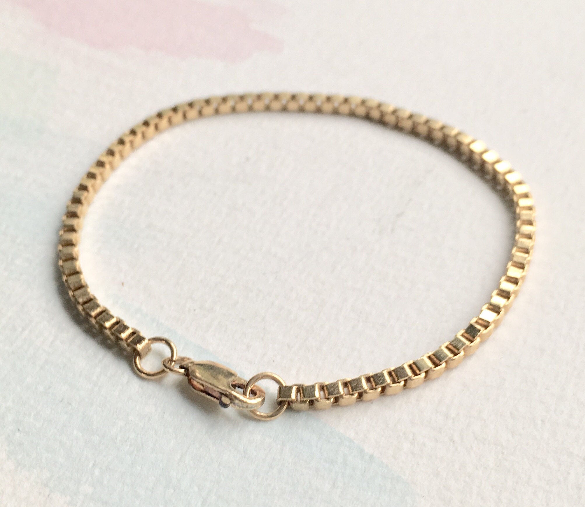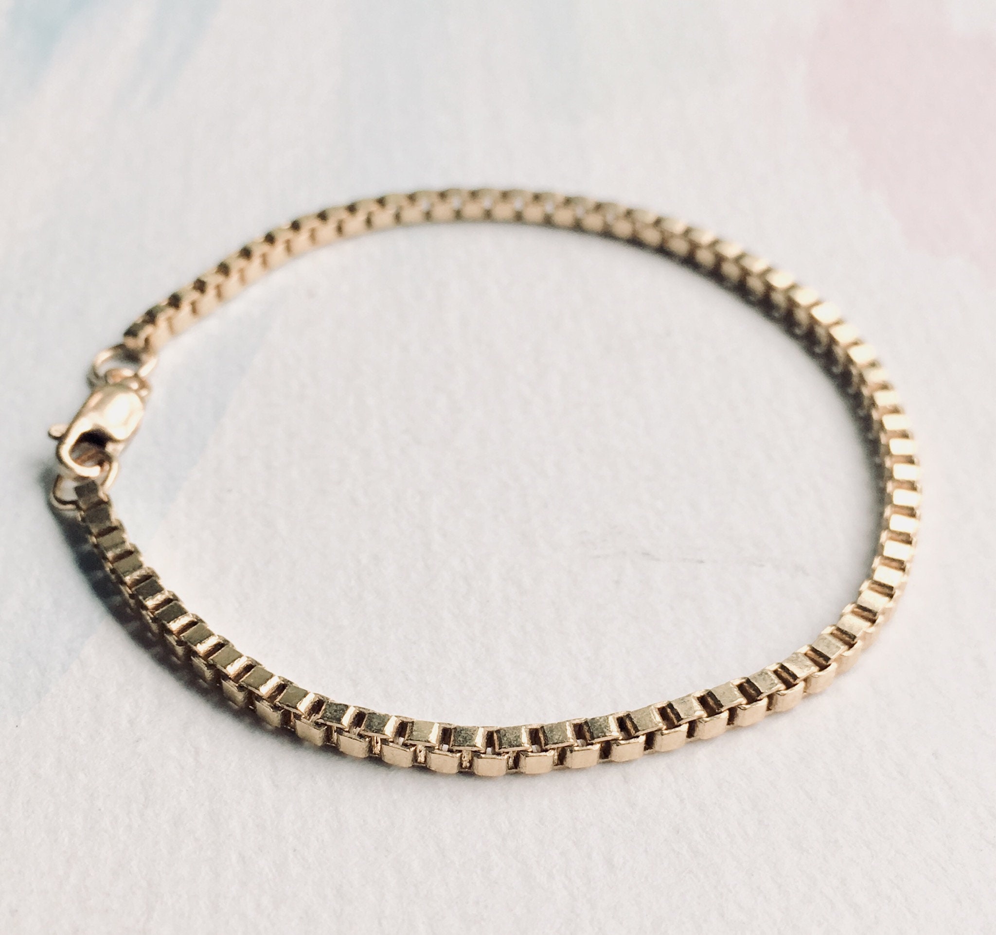 Minimalist gold bracelet comes with delicate, elegant finish with carefully selected 14 carat gold filled box chain. This is an unisex gold bracelet can fit for both male and female. I have been selling this minimalist box chain bracelet for a while and had a good feedback from them.