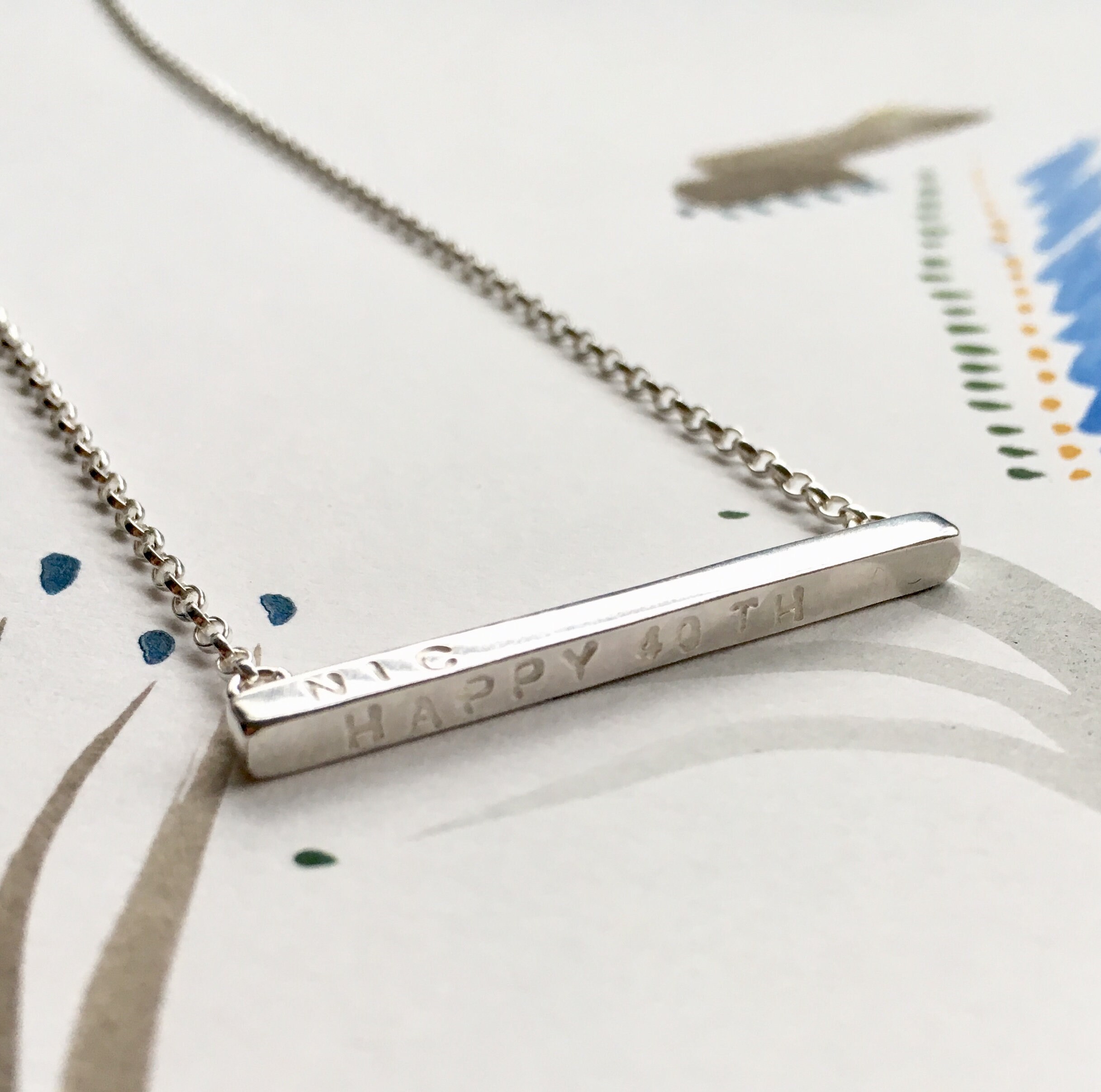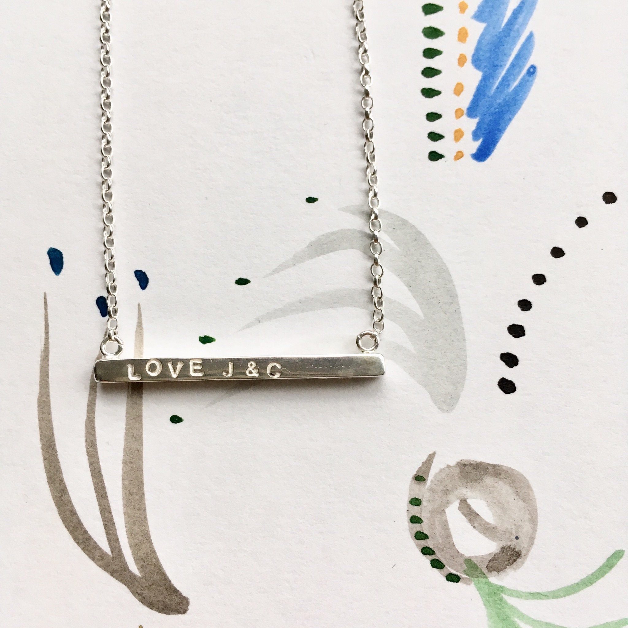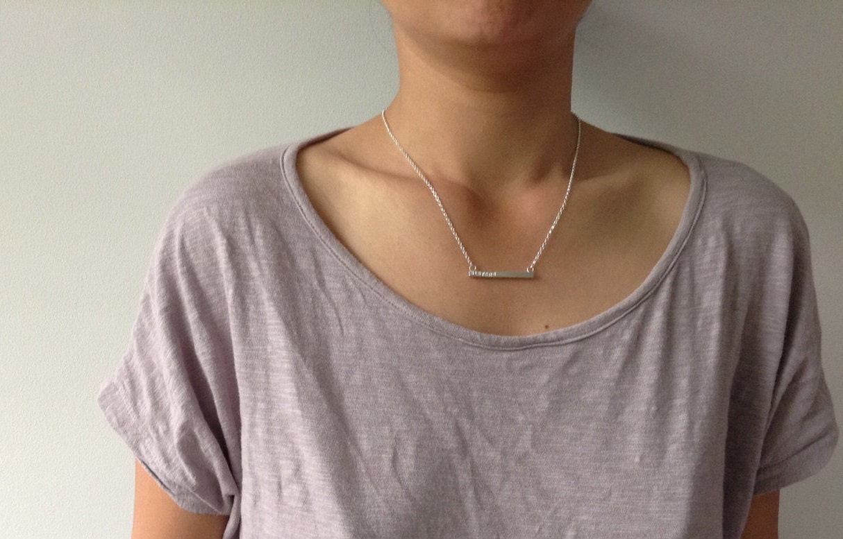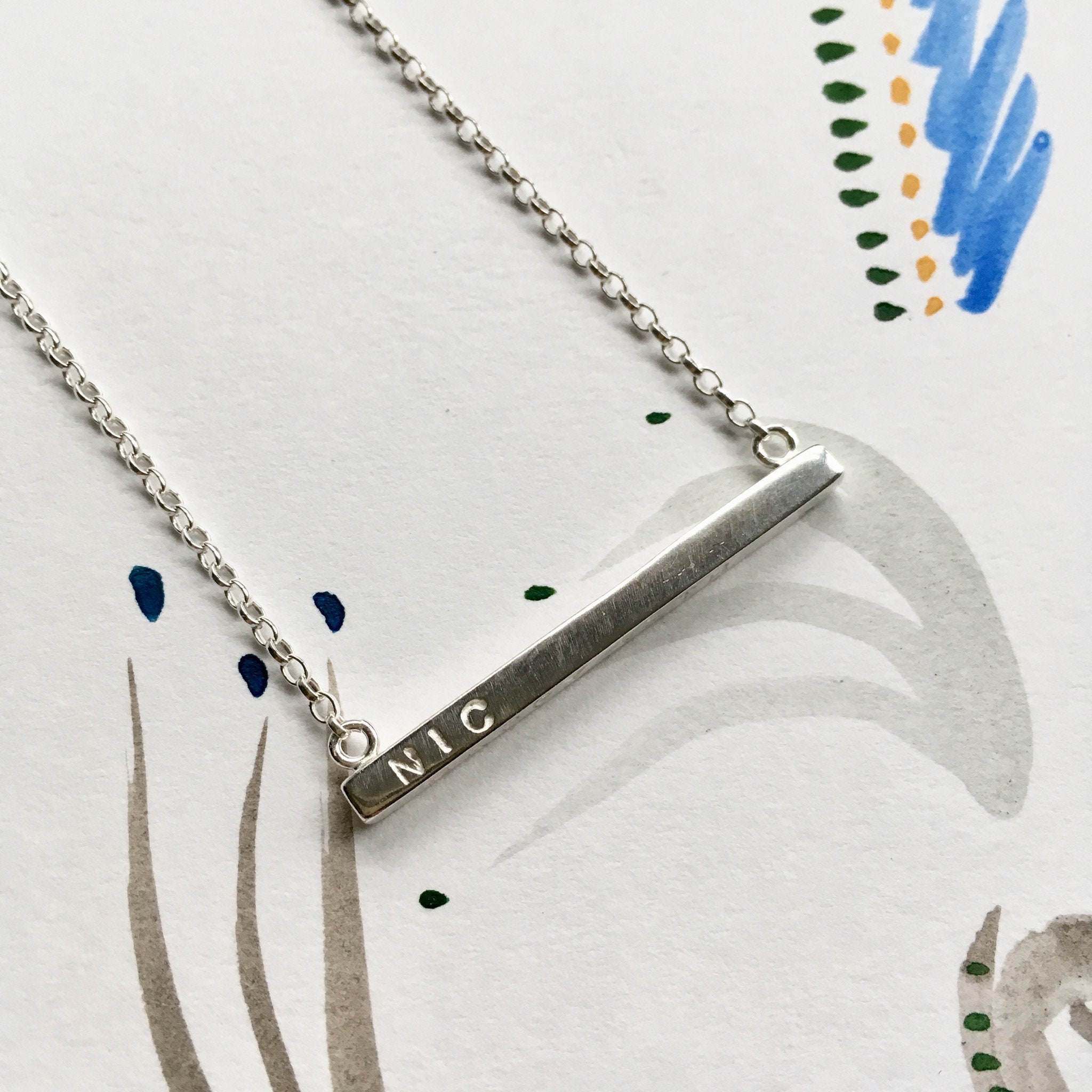 Personalised Sterling Silver Bar Necklace - Handmade Silver Name Bar Necklace for her.