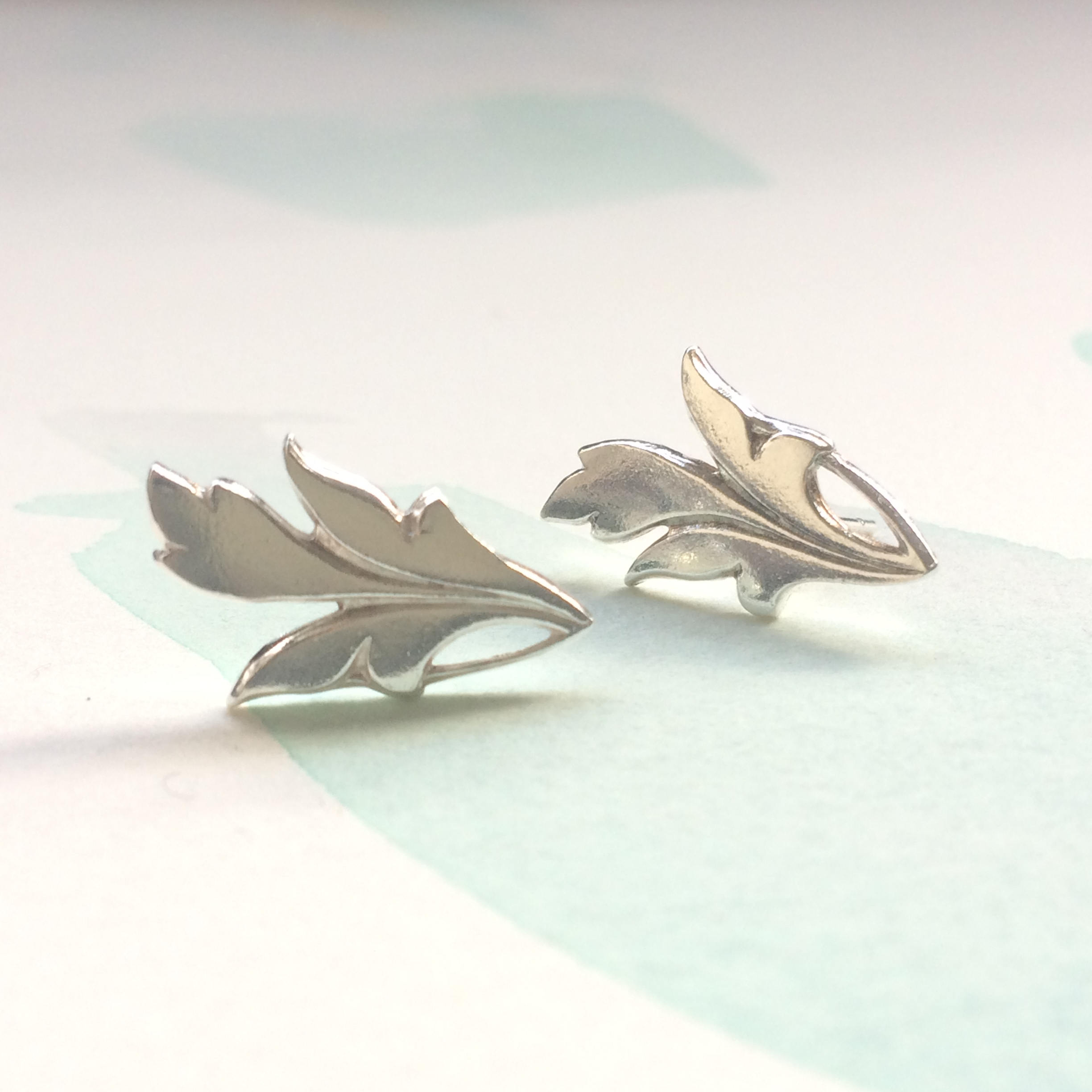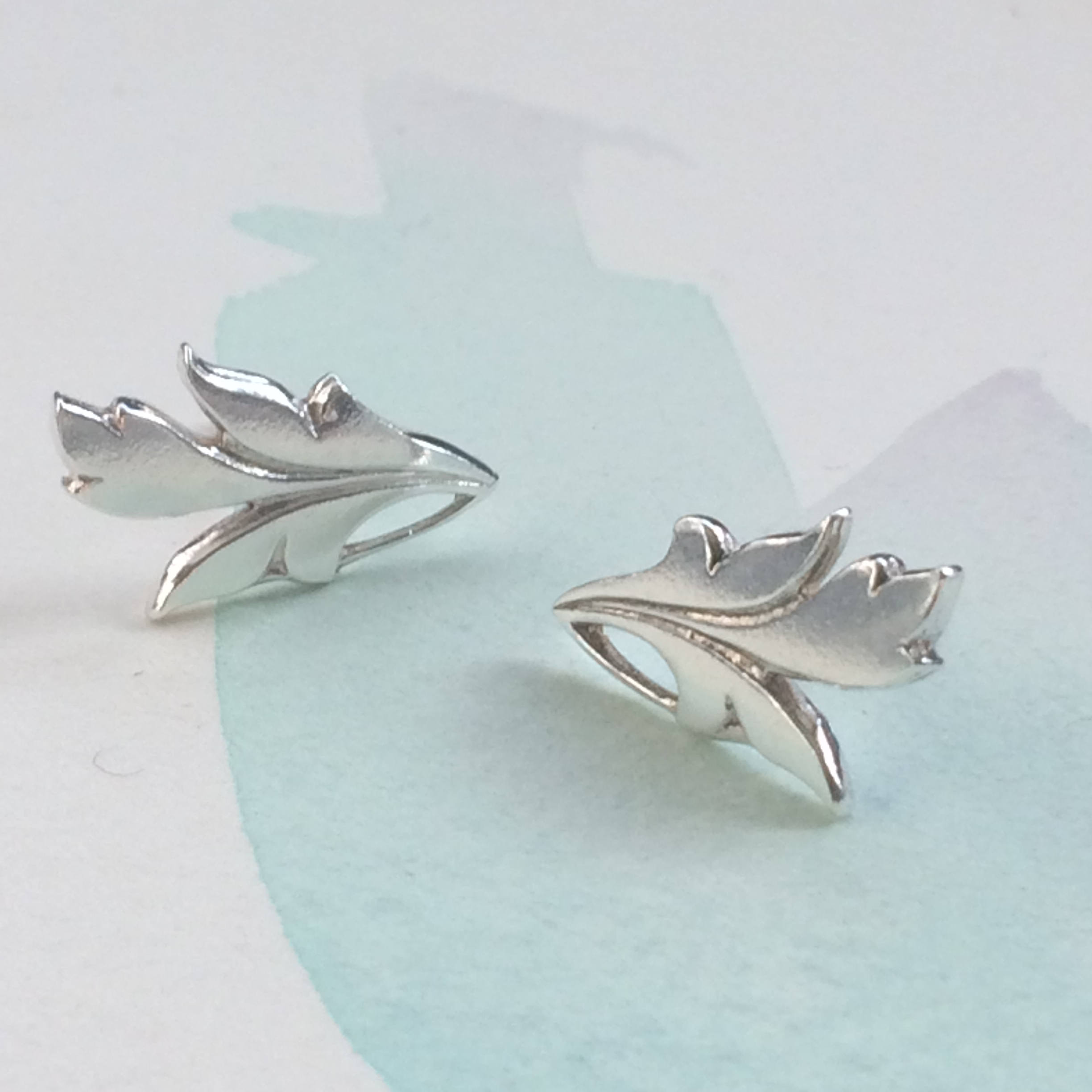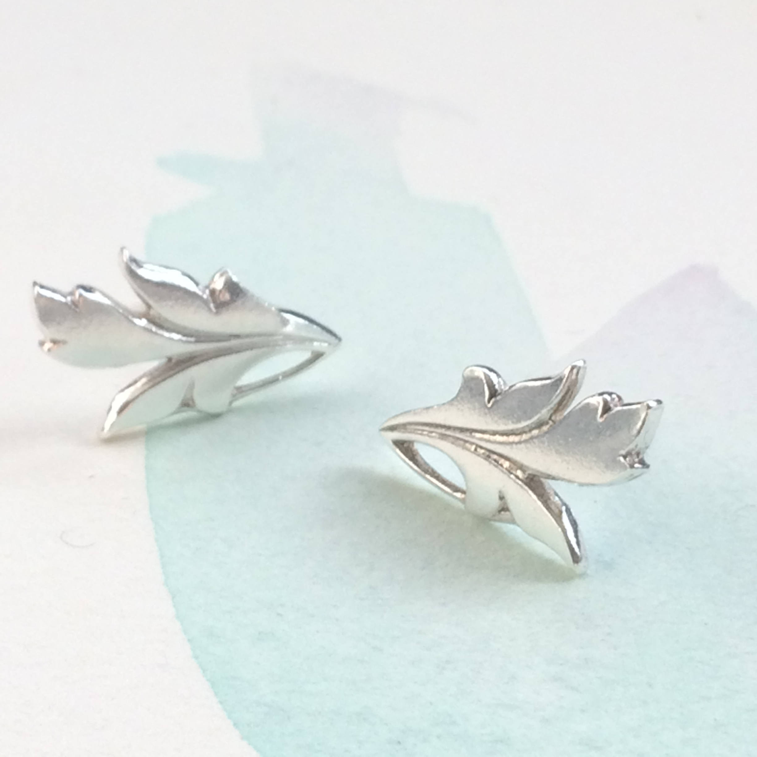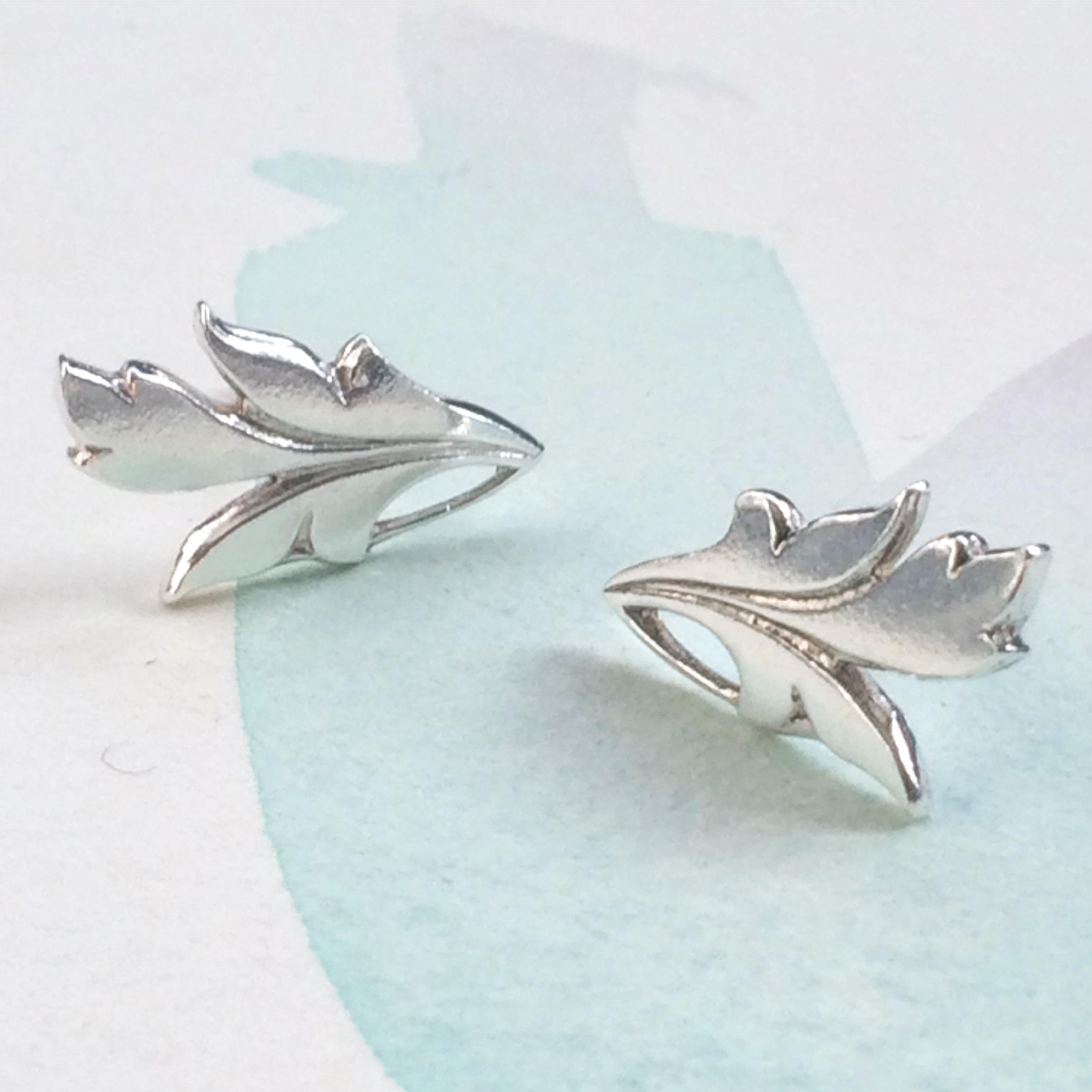 Sterling Silver Leaf Stud Earrings - Leaf Studs - Leaf Earrings - Silver Leaf Studs - Nature Theme Jewellery - Leaf Jewellery
