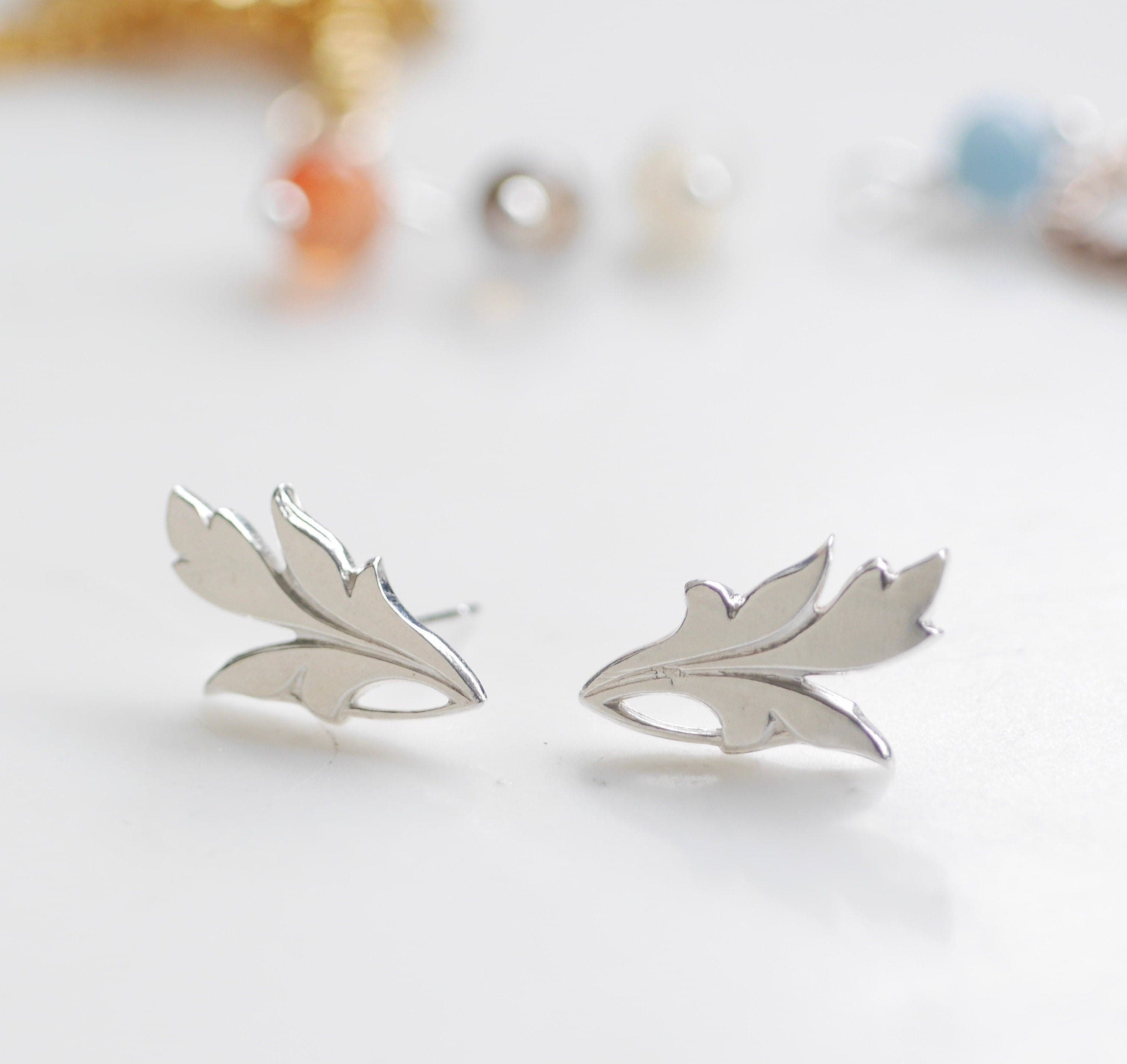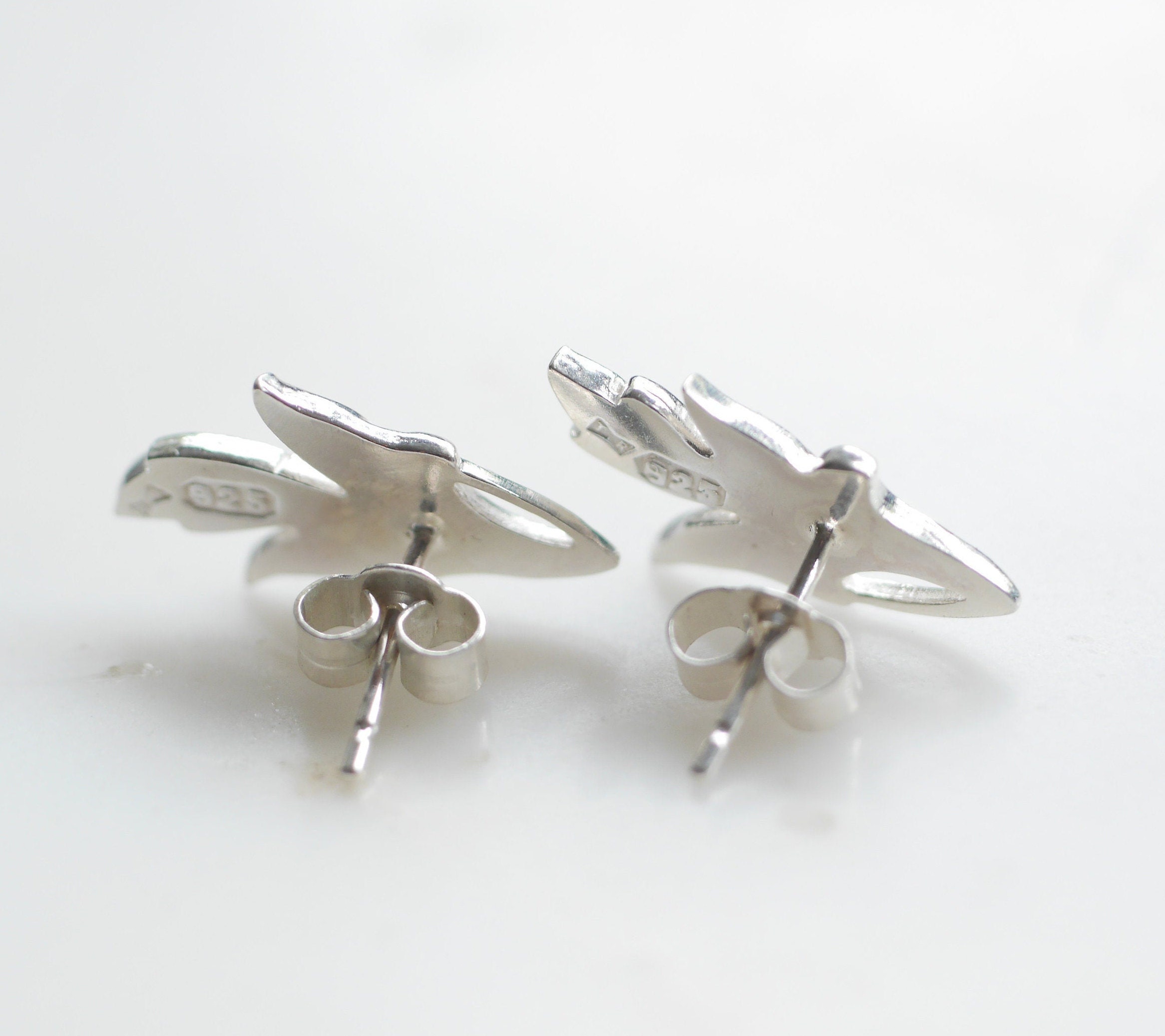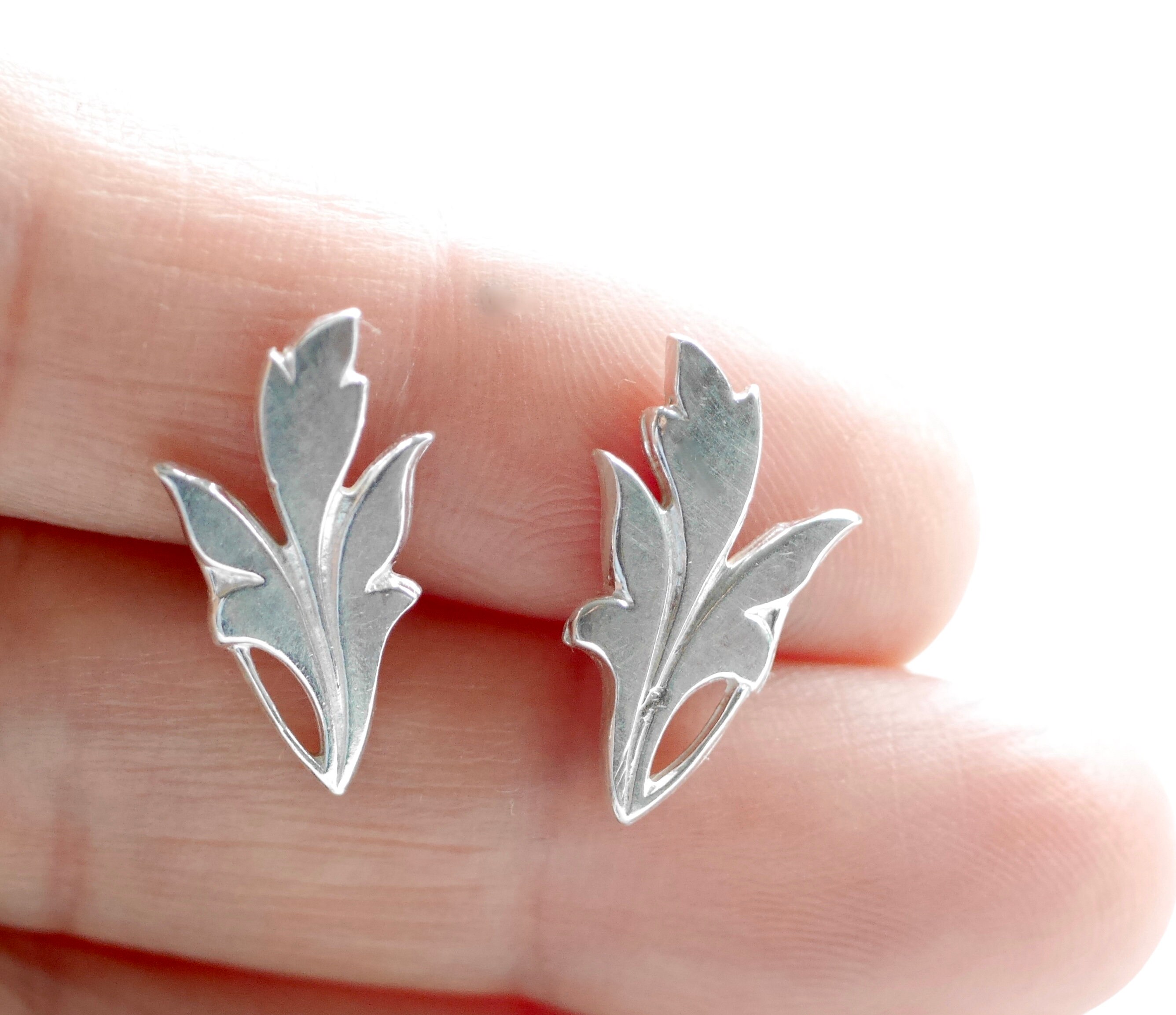 Simple yet striking leaf shaped sterling silver stud earrings. Casted sterling silver leaf shape studs for someone who loves nature.