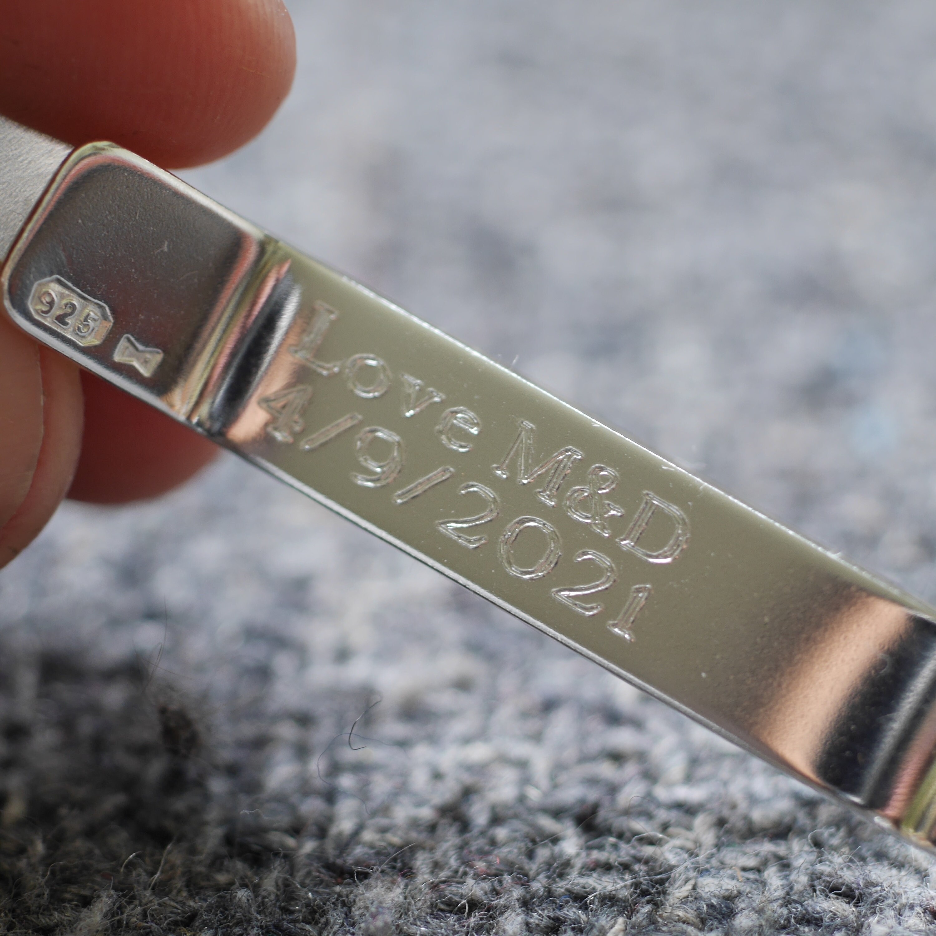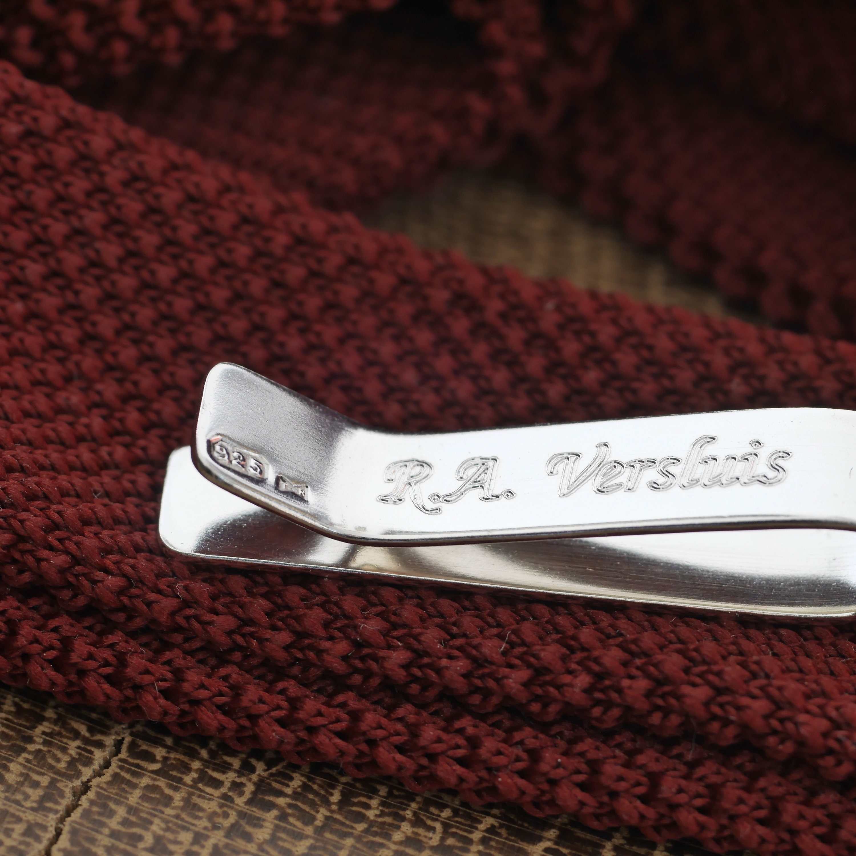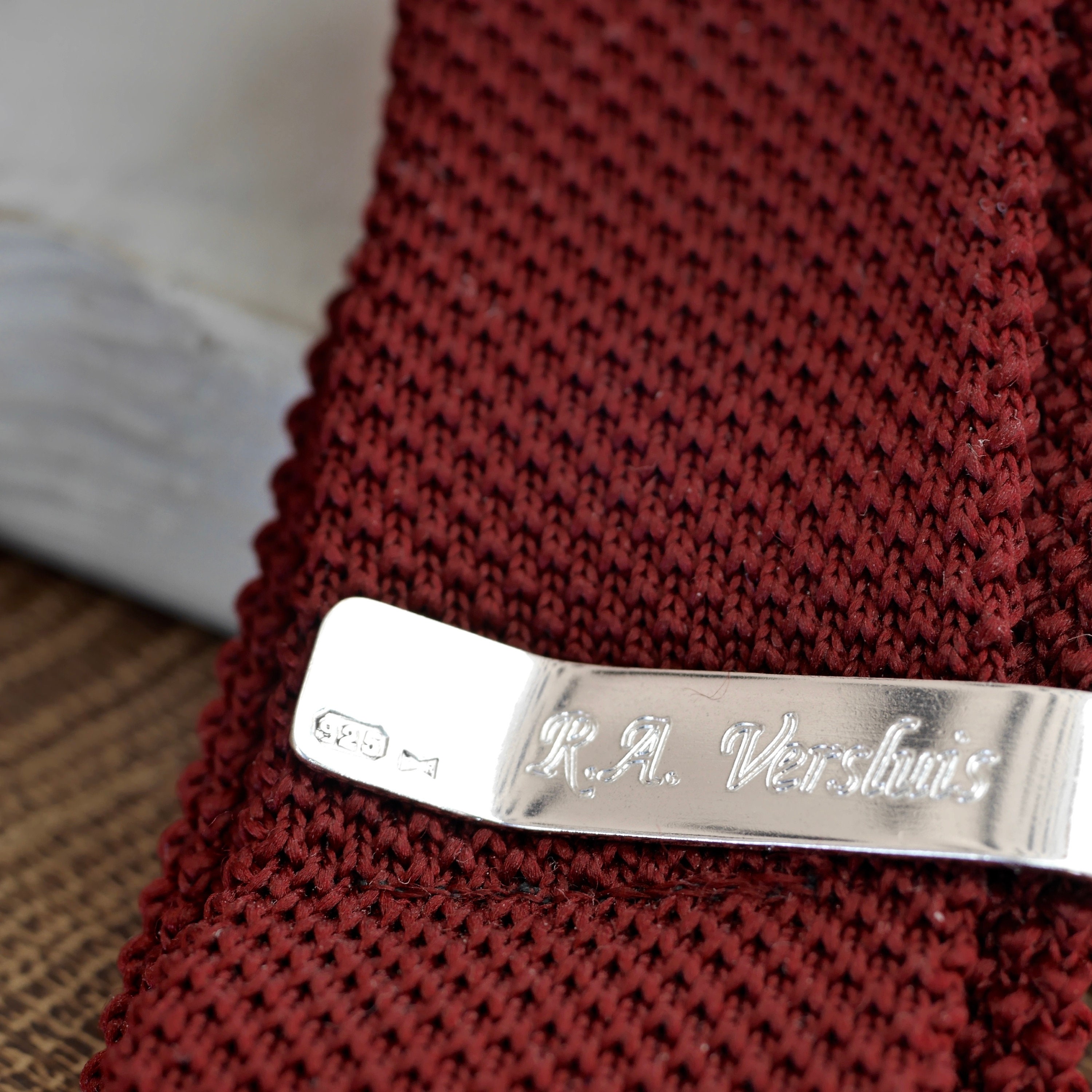 I will engrave your secret special message on a 0.9mm thick sterling silver tie clip.