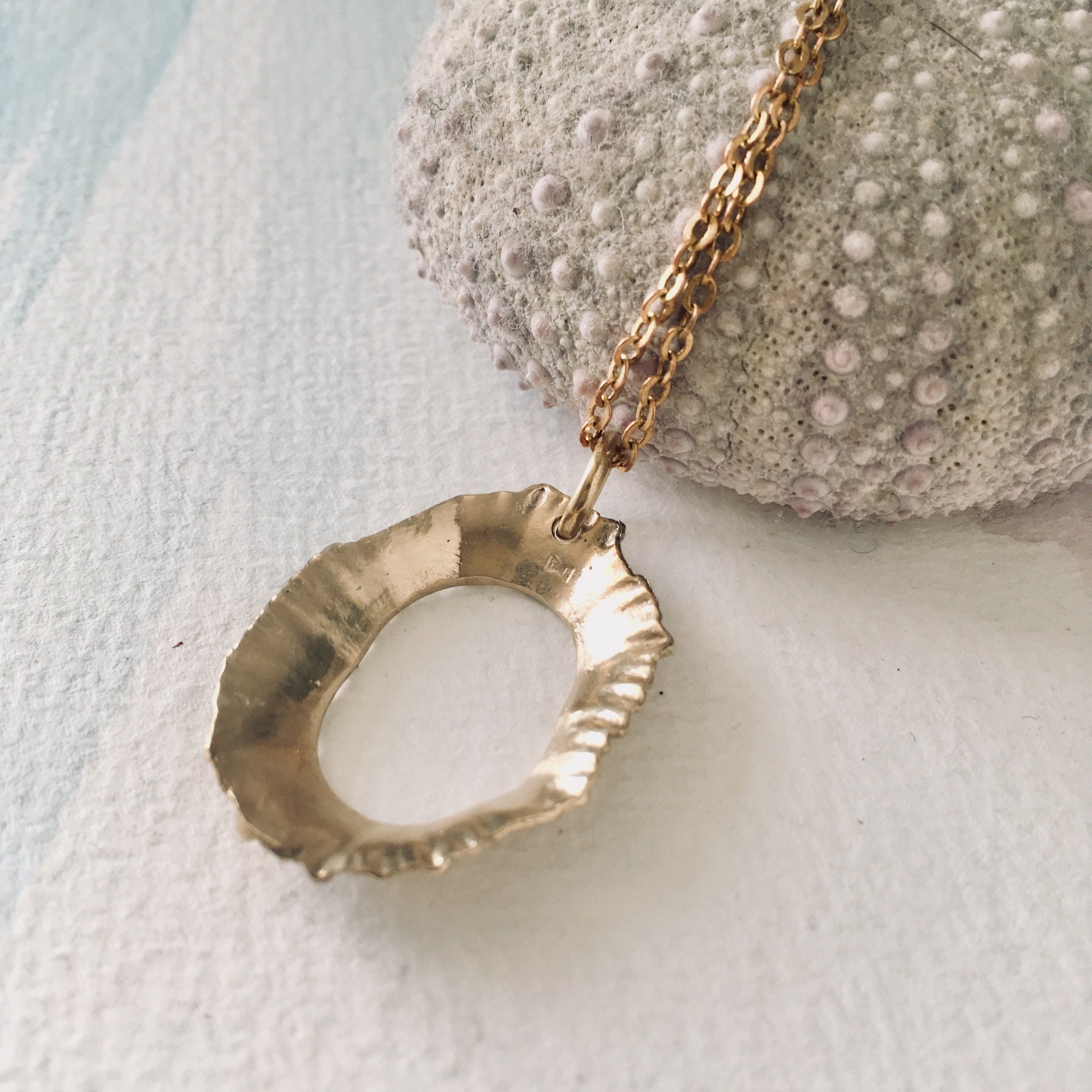 This necklace features an elegant cast bronze limpet shell plated in high-quality 18-carat gold. It makes for a perfect gift for mothers, friends, sisters, and daughters who appreciate ocean-inspired jewelry.