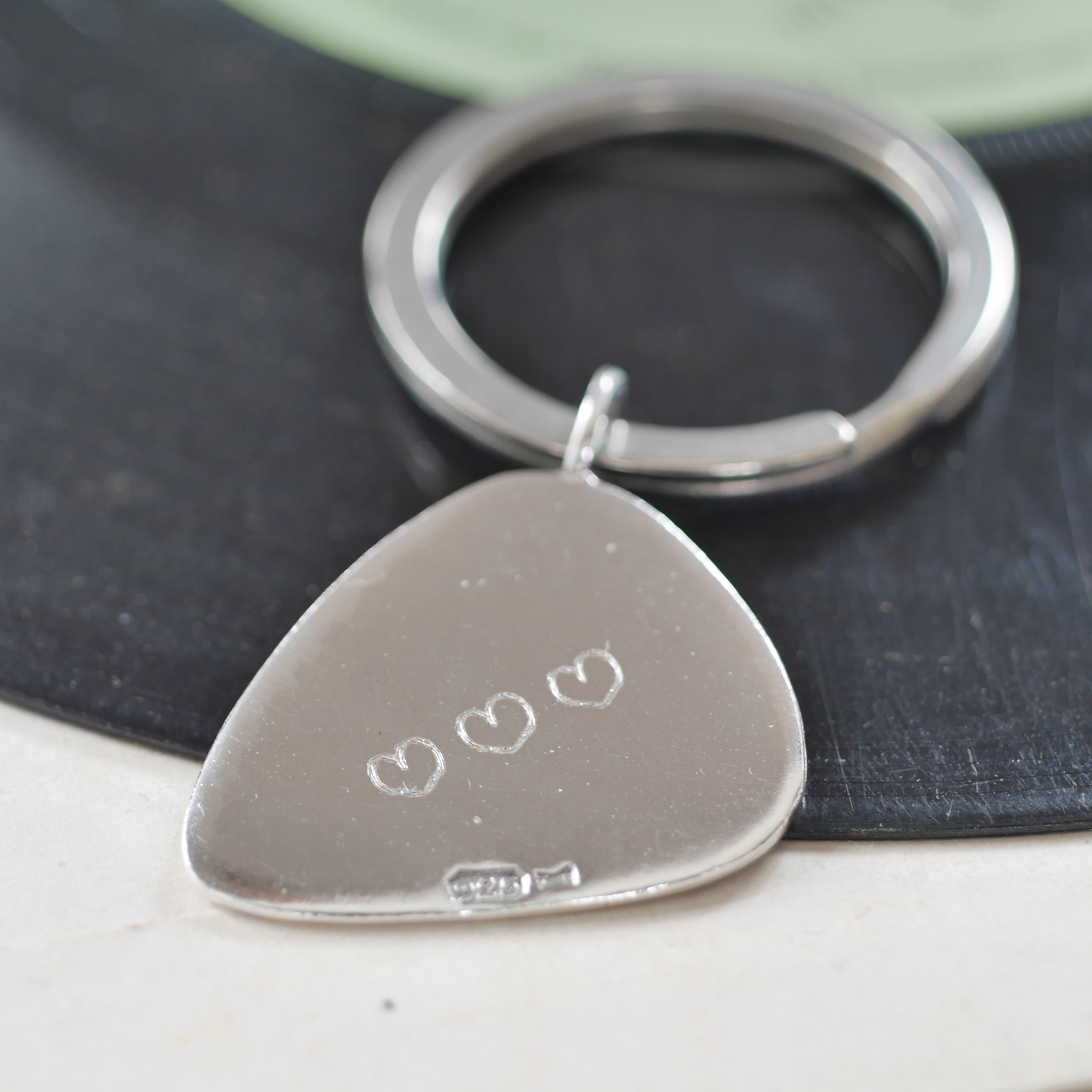 Having spent my youth immersed in music—working in a record shop, listening to records, and going to concerts—I wanted to create something meaningful for musicians. My first creation was a personalised guitar capo, followed by this beautifully crafted silver or bronze guitar plectrum keyring. This personalised pick serves as both a unique keepsake and a functional accessory, allowing your special message to be carried along every day.