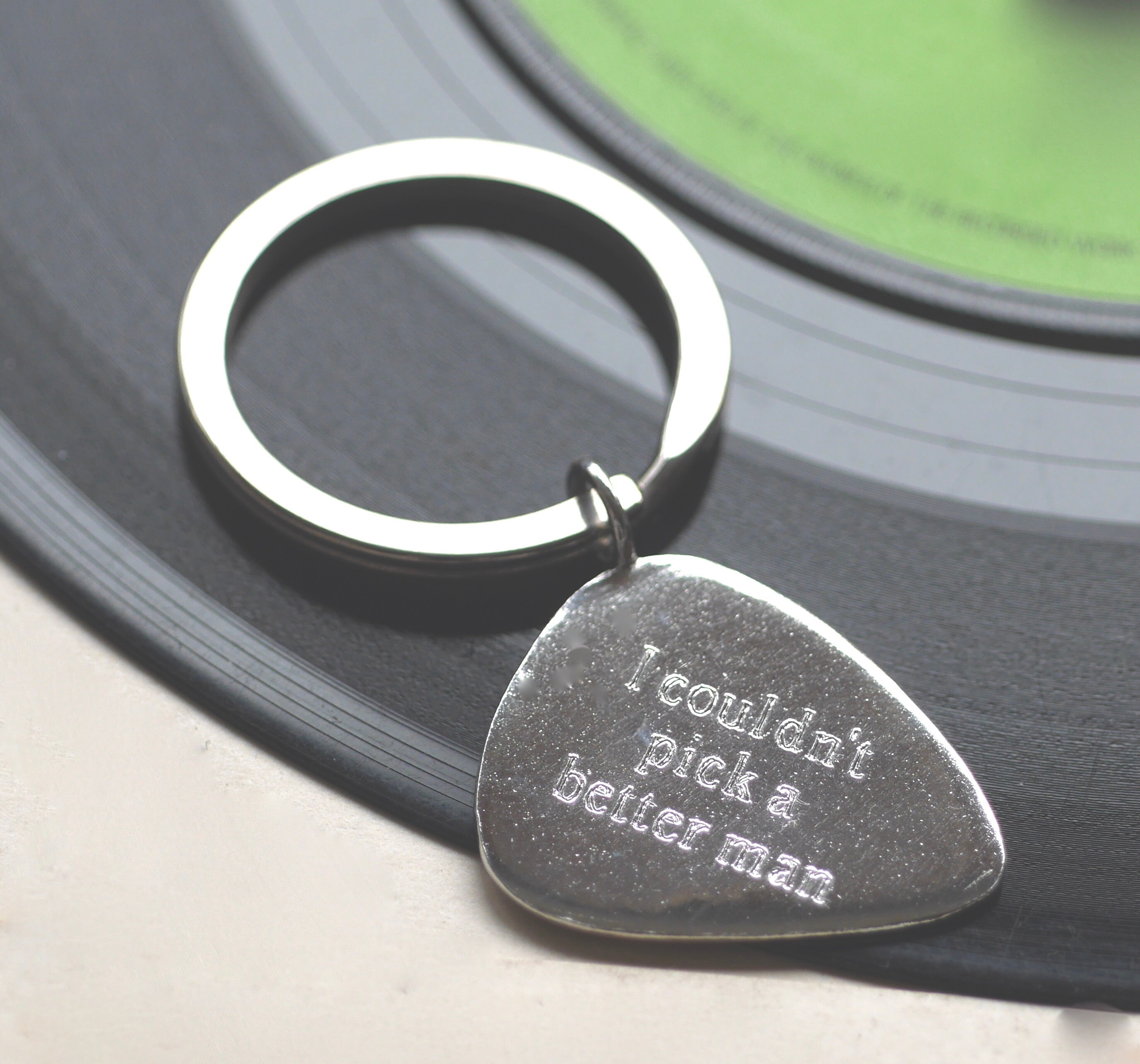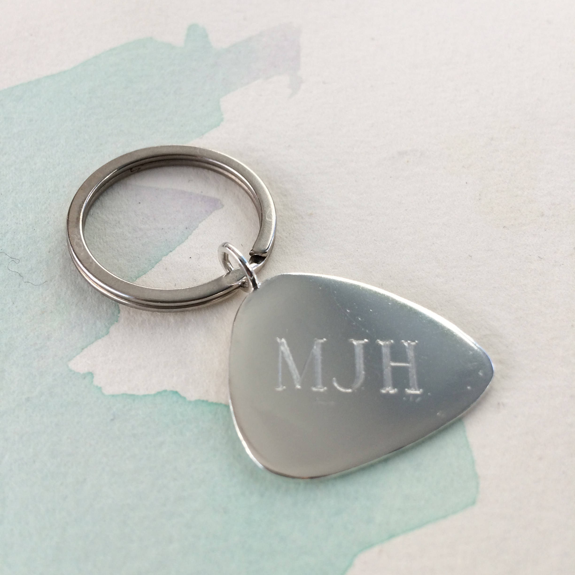 Personalised Guitar Pick Key Ring - Sterling Silver, Bronze - Custom Guitar Plectrum Keyring