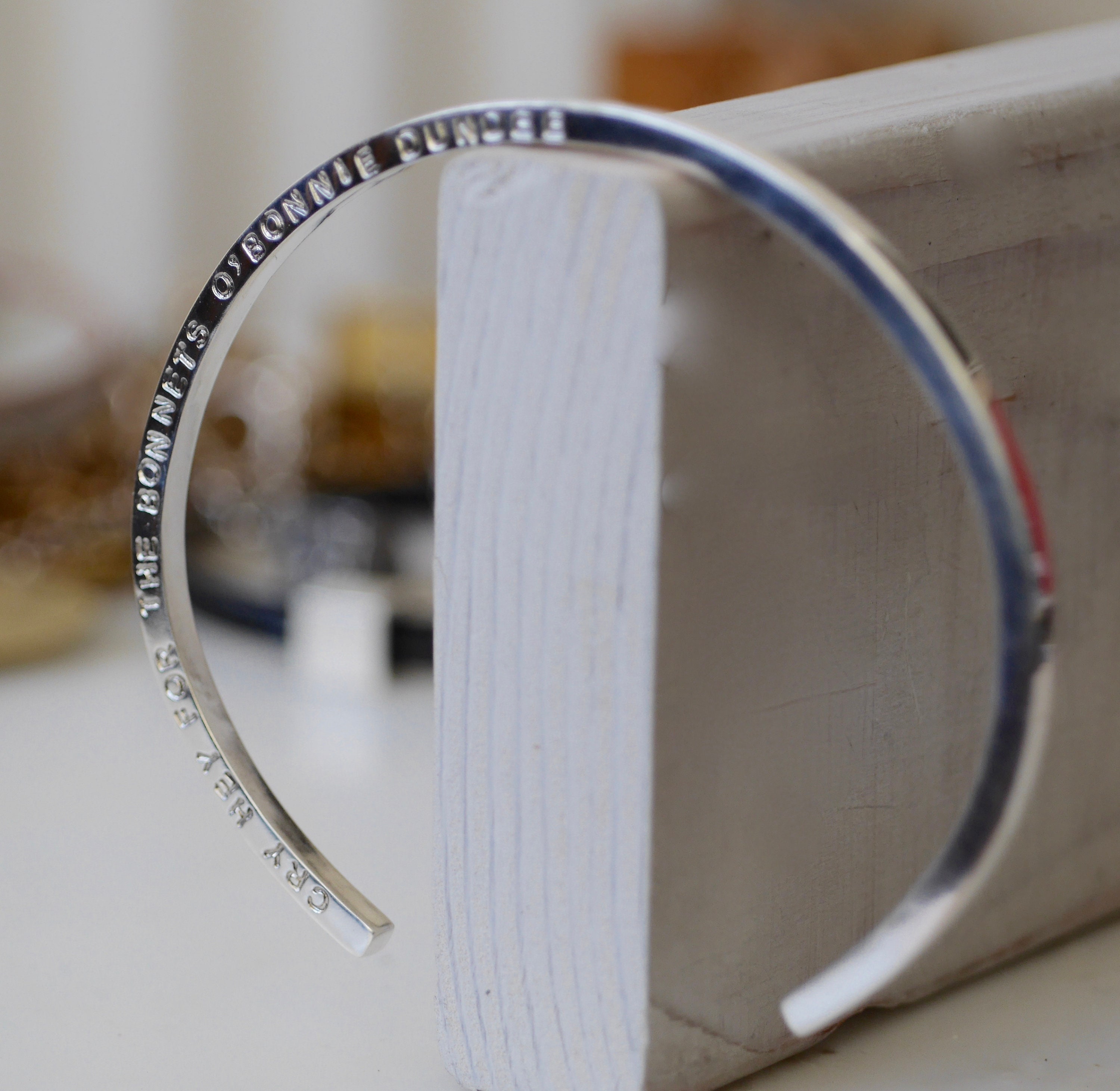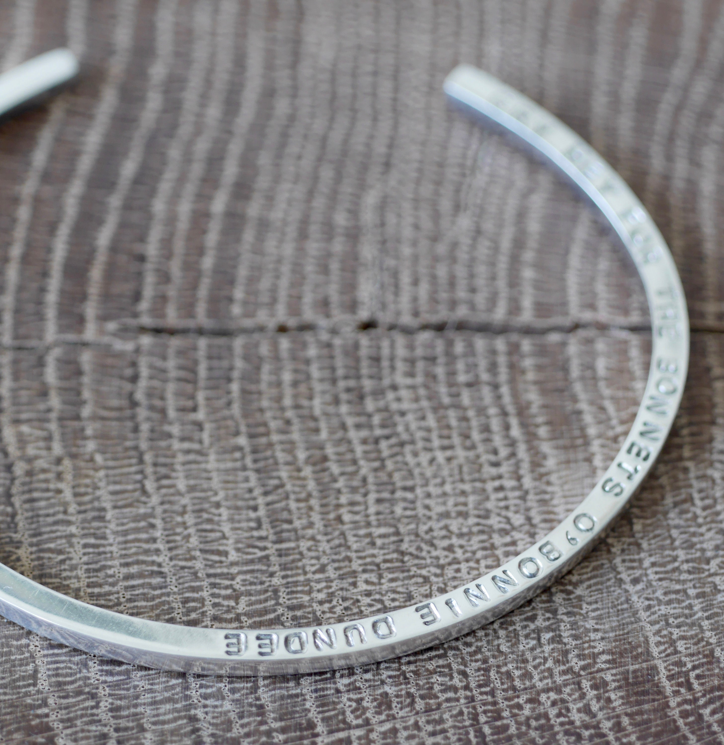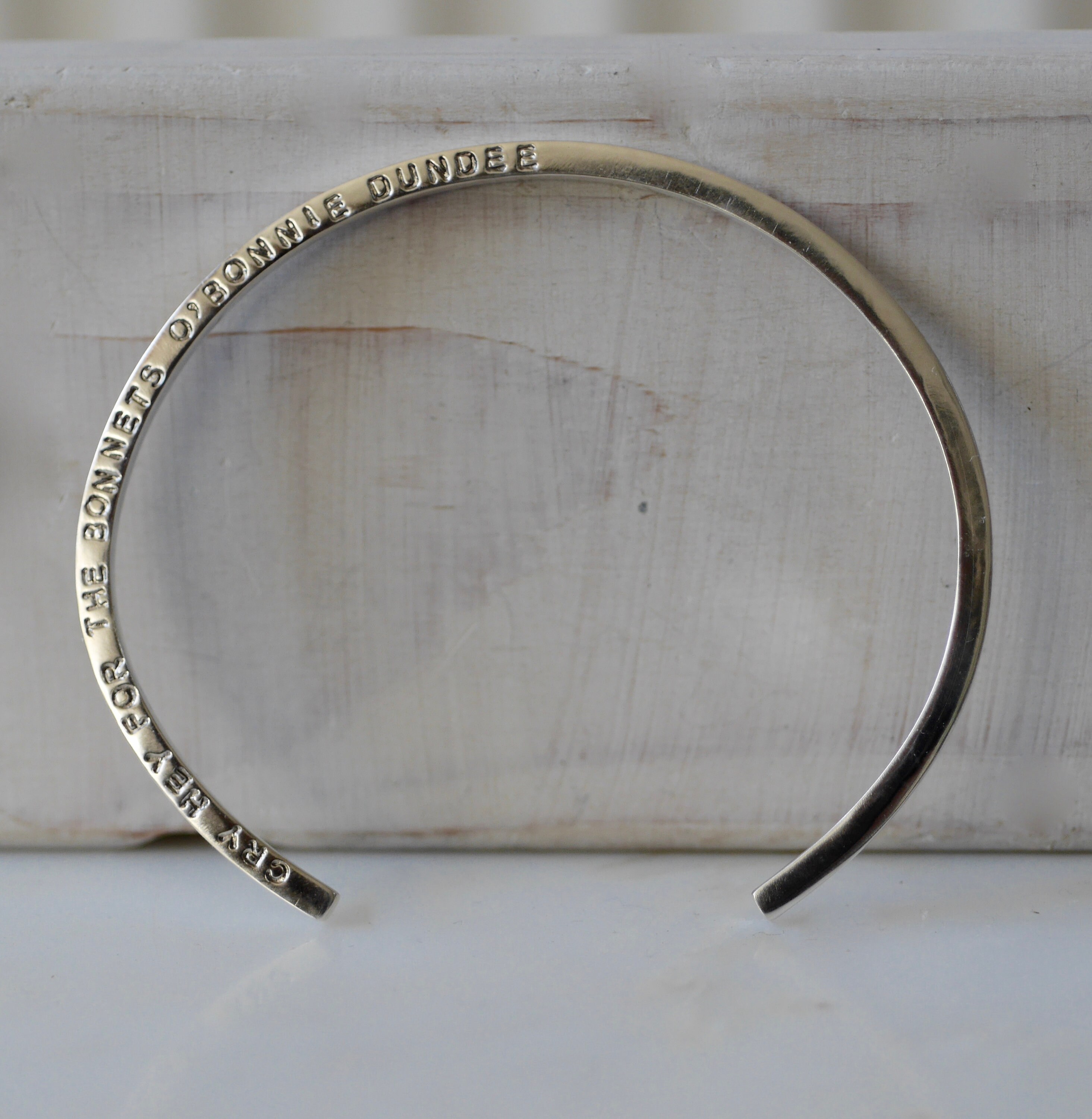 You can fit 50 letters in each cuff. Please think of some words you would like to be stamped, such as poems, lyrics, or simple messages.