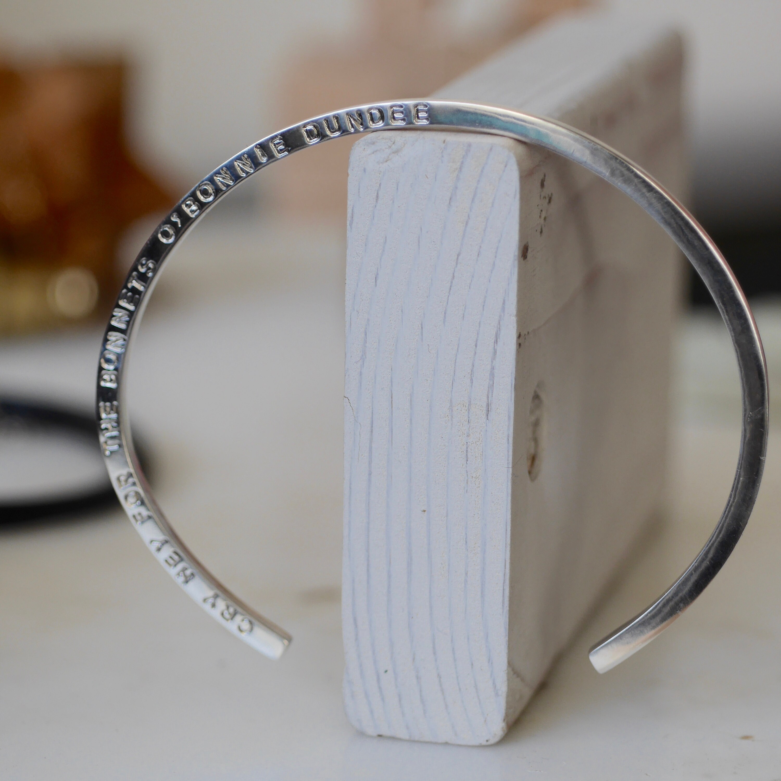 Minimalist Personalised Sterling Silver Square Bar Cuff Bracelet.