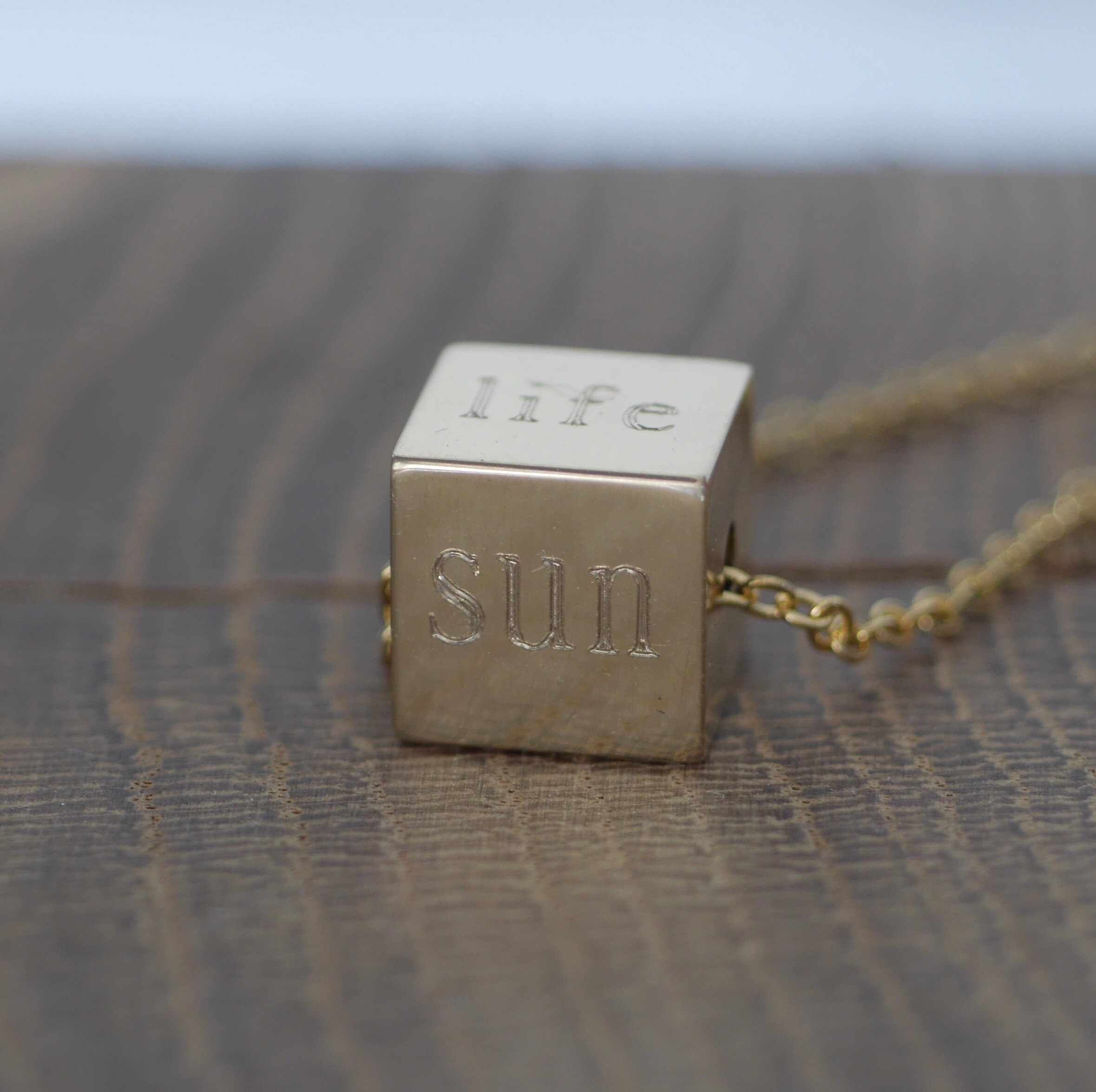 This minimalist engraved brass cube necklace comes with a personalisation option to make it more special. This minimalist cubic necklace could be a great gift for both males and females.