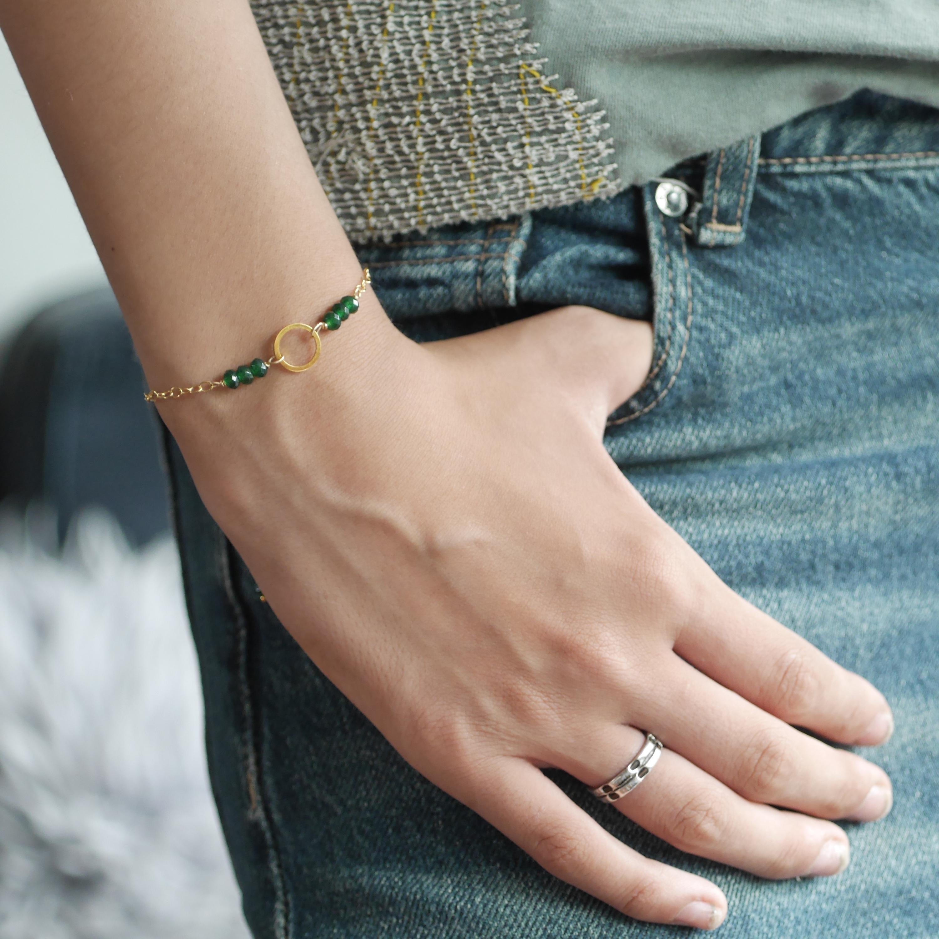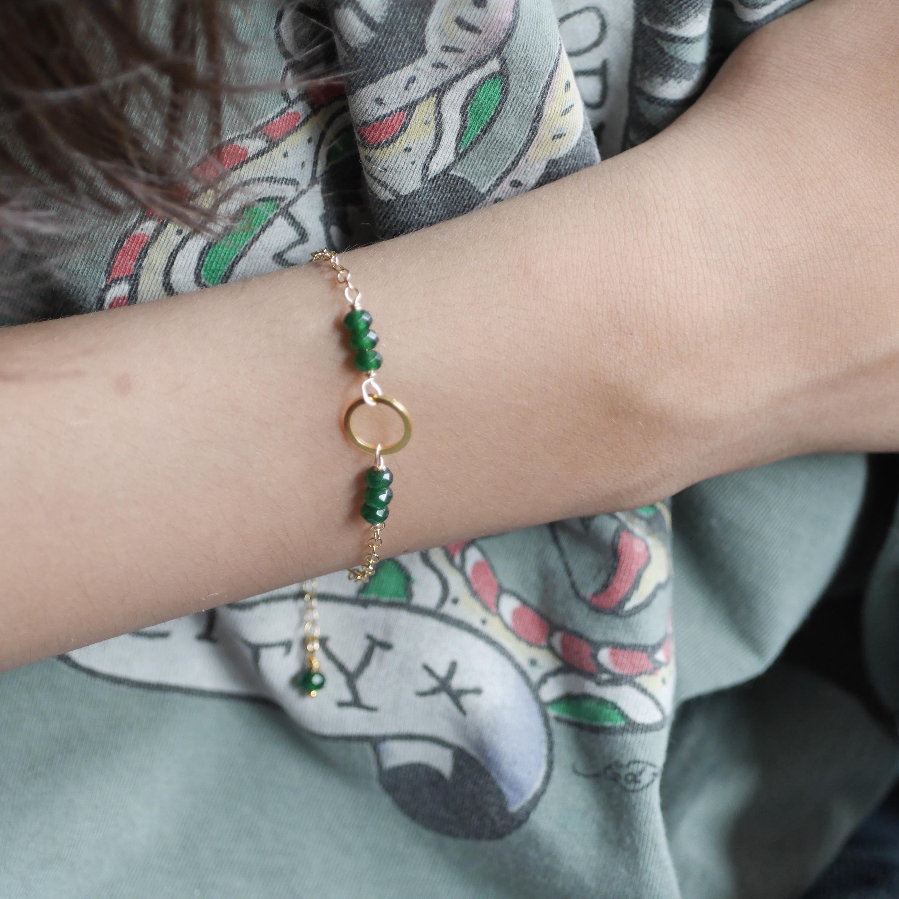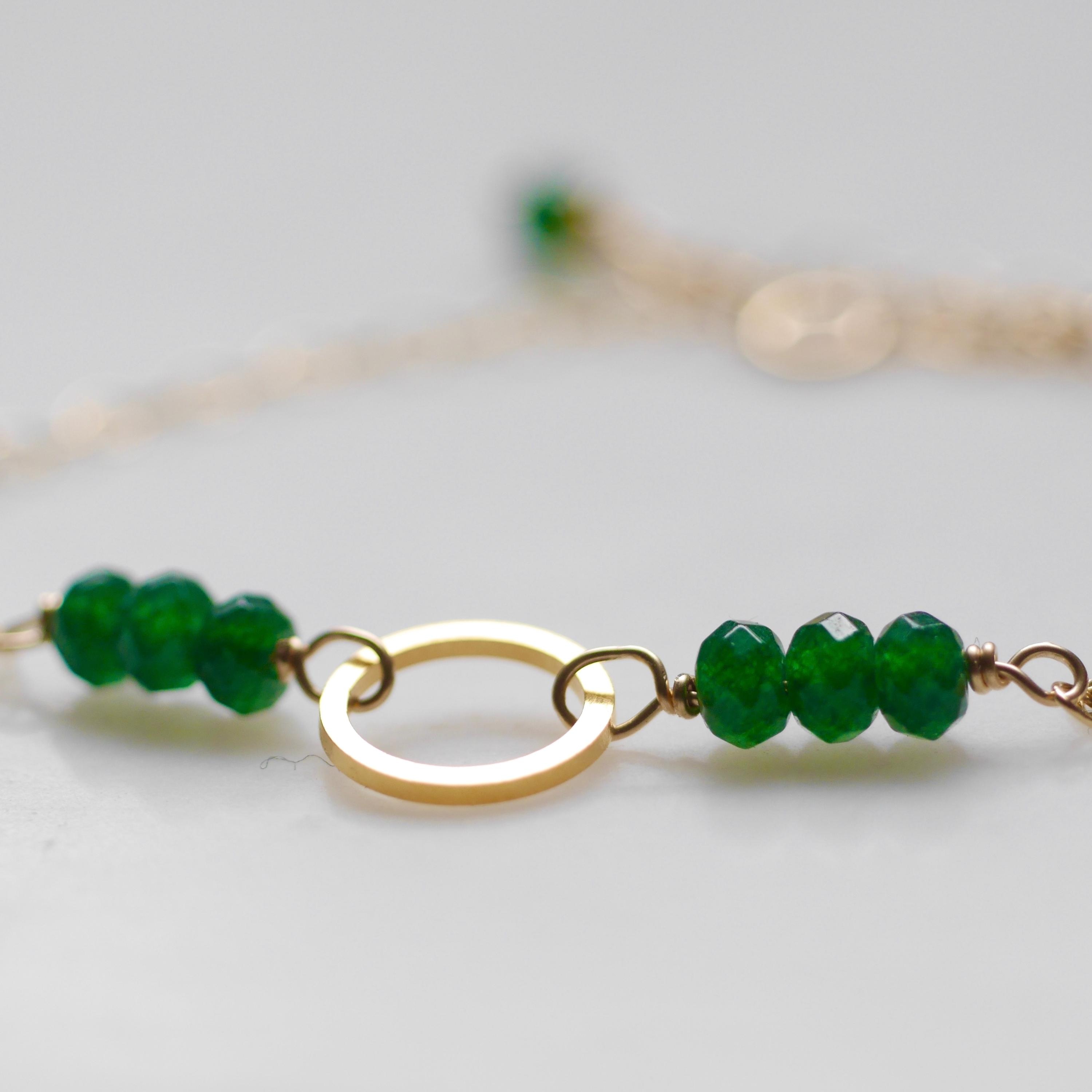 Emerald and Gold Circle Charm Adjustable Chain Bracelet – Dainty Gemstone Jewellery