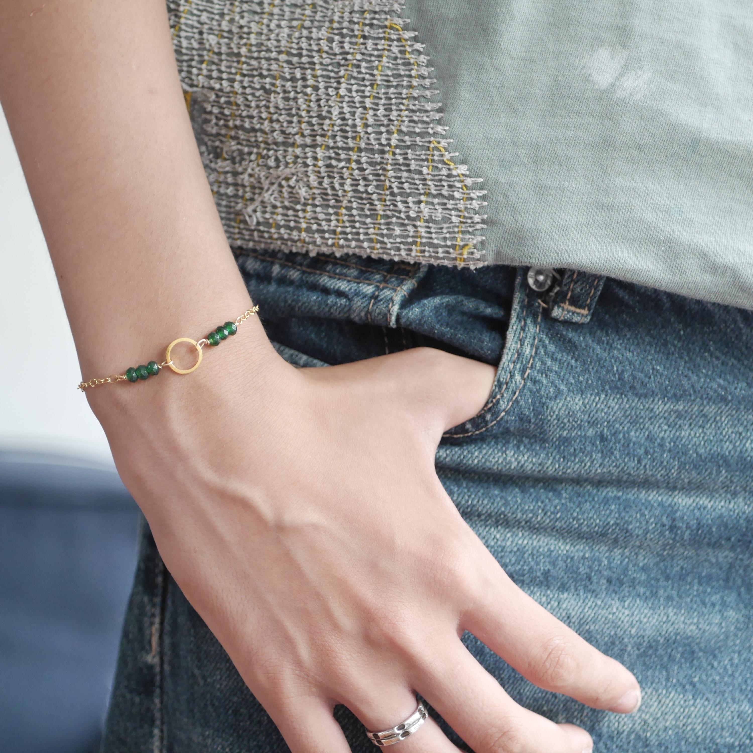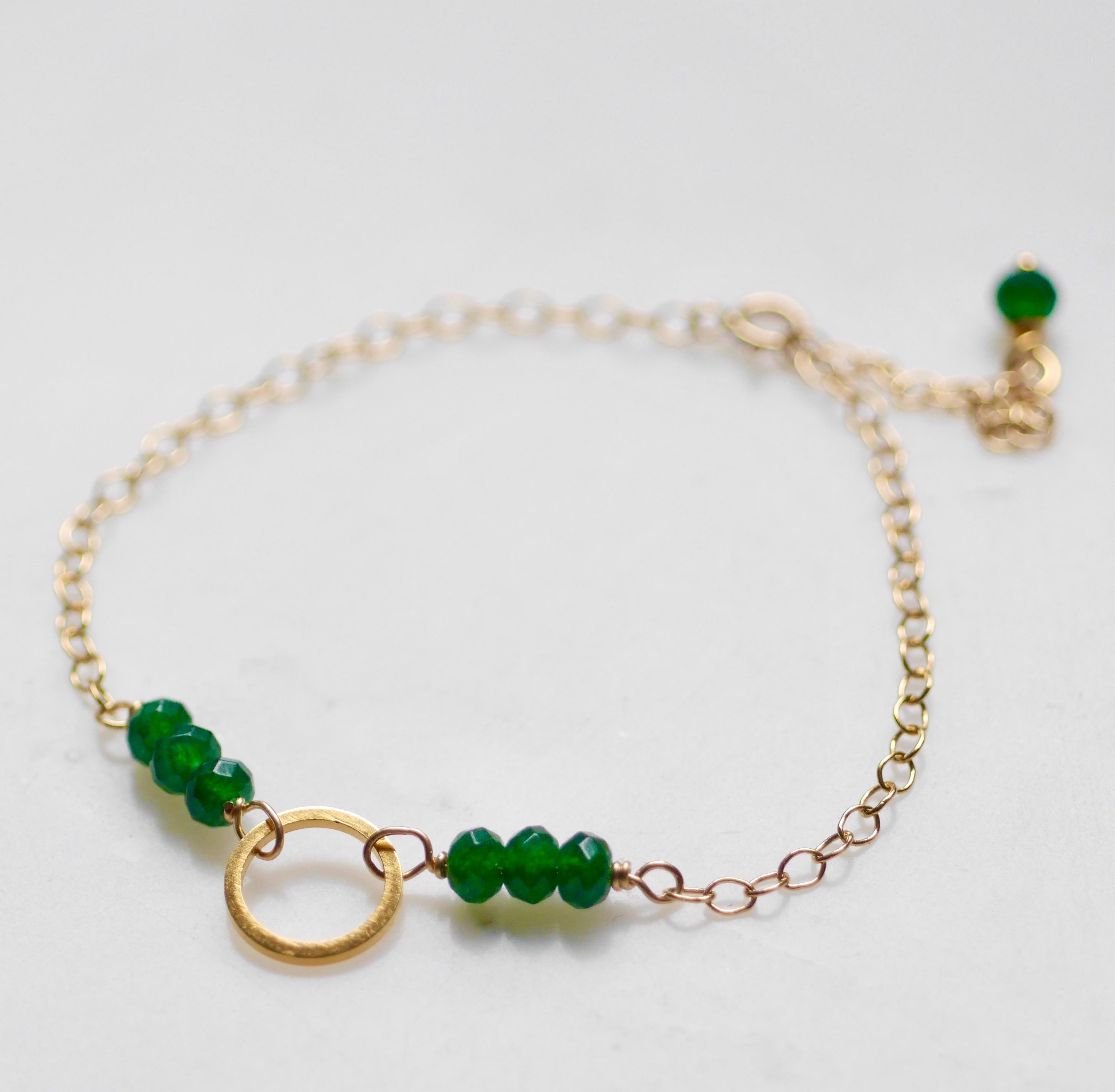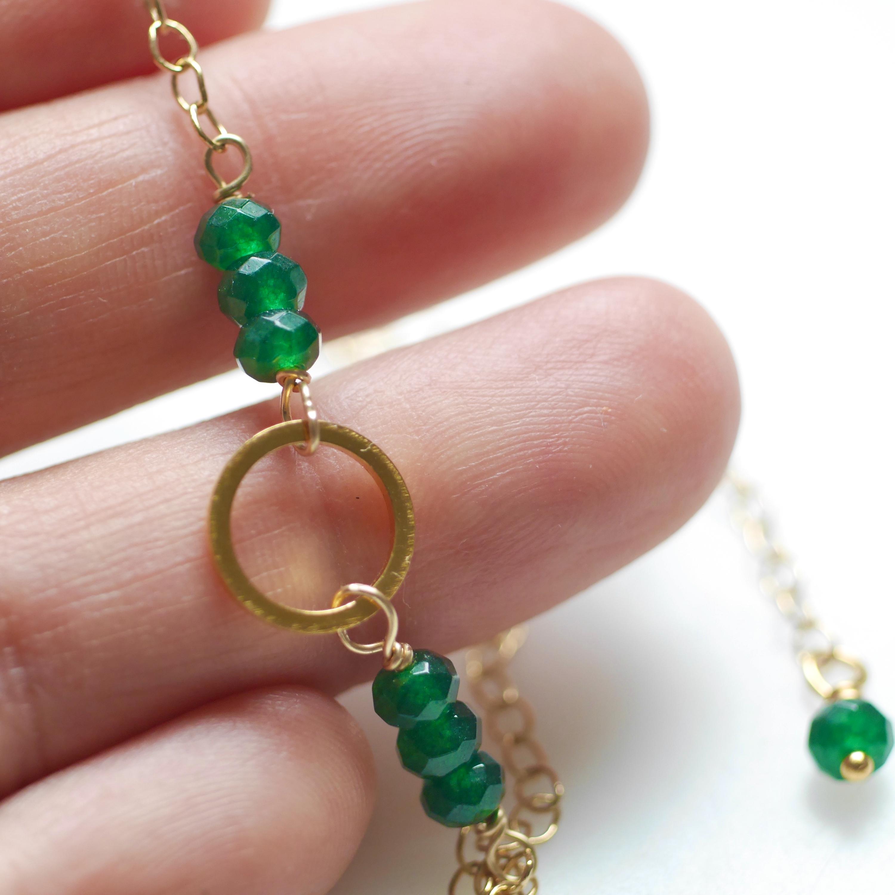Emerald and Gold Circle Charm Adjustable Chain Bracelet – Dainty Gemstone Jewellery