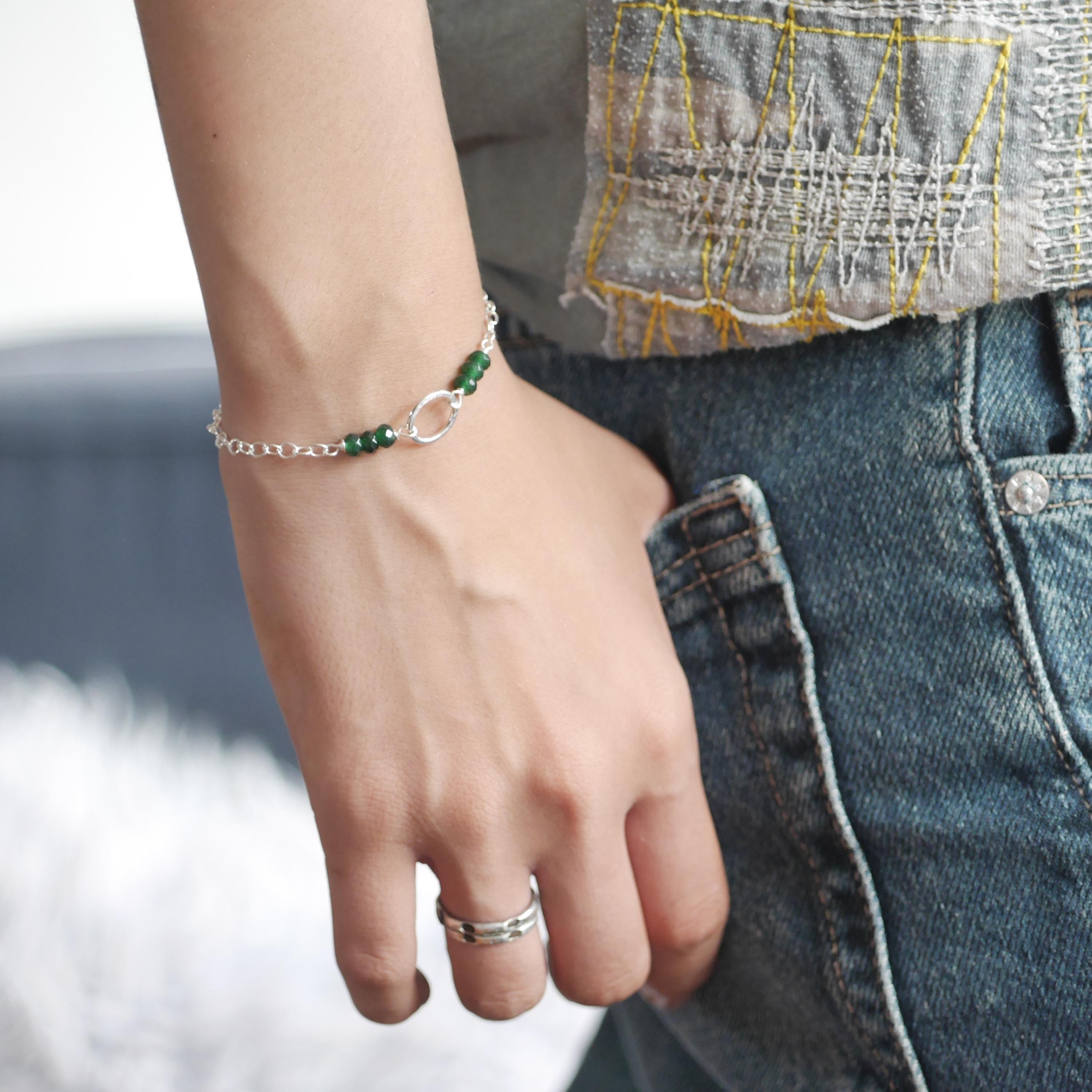 This dainty emerald bracelet makes a meaningful May birthstone gift, a thoughtful piece for someone special, or a subtle yet striking addition to your own collection. Its natural green shimmer and cool silver tones create a refined, versatile look.