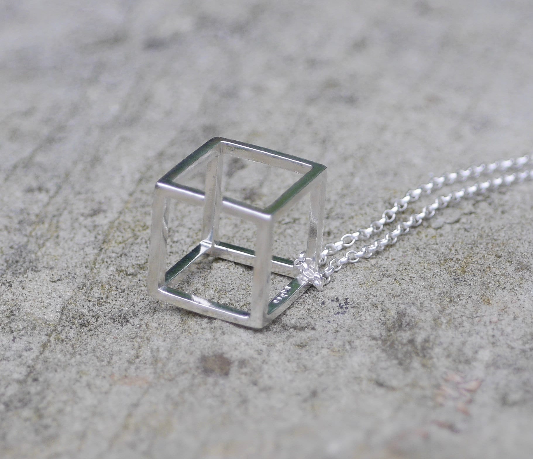 Impossible 3D Cube Necklace - Impossible Object Necklace -Escher Impossible Cube - Cube Necklace - Optical Illusion Necklace - Escher Necklace