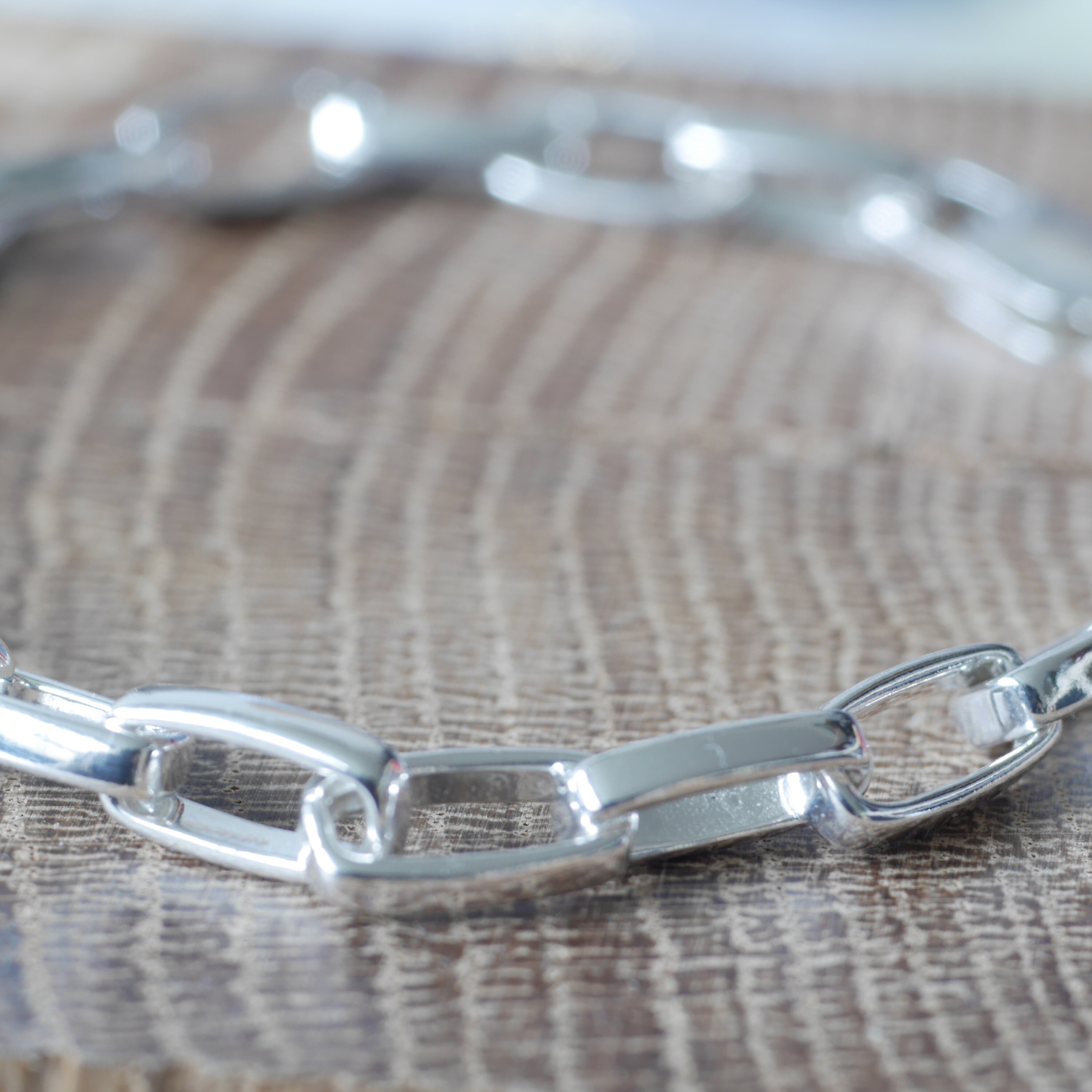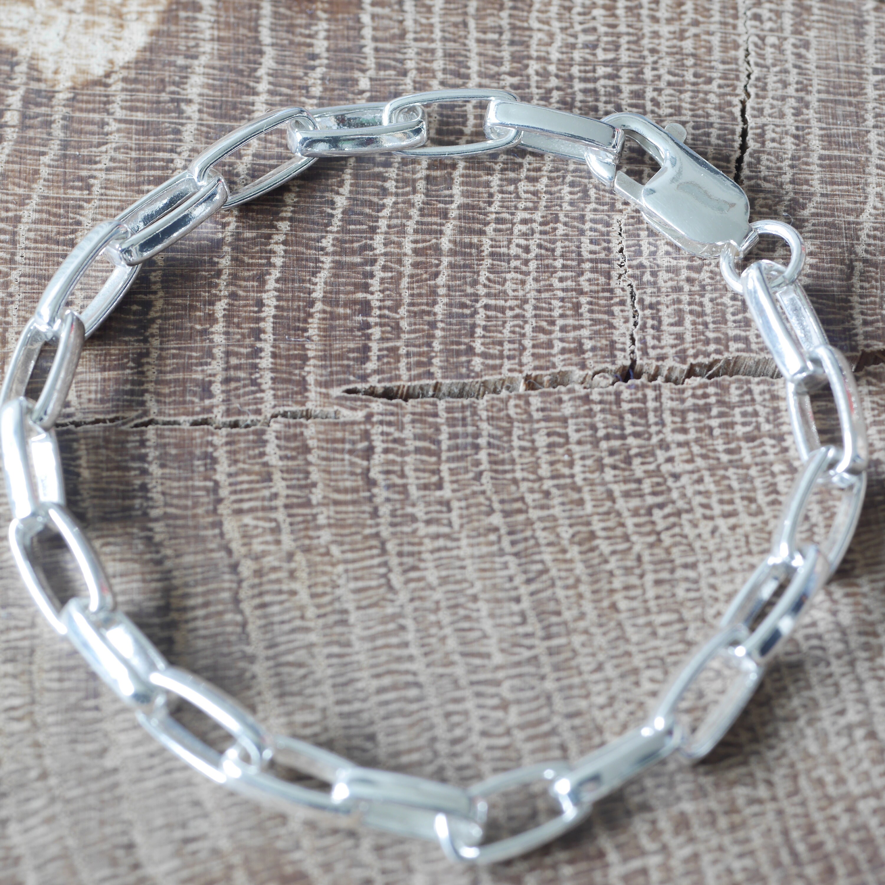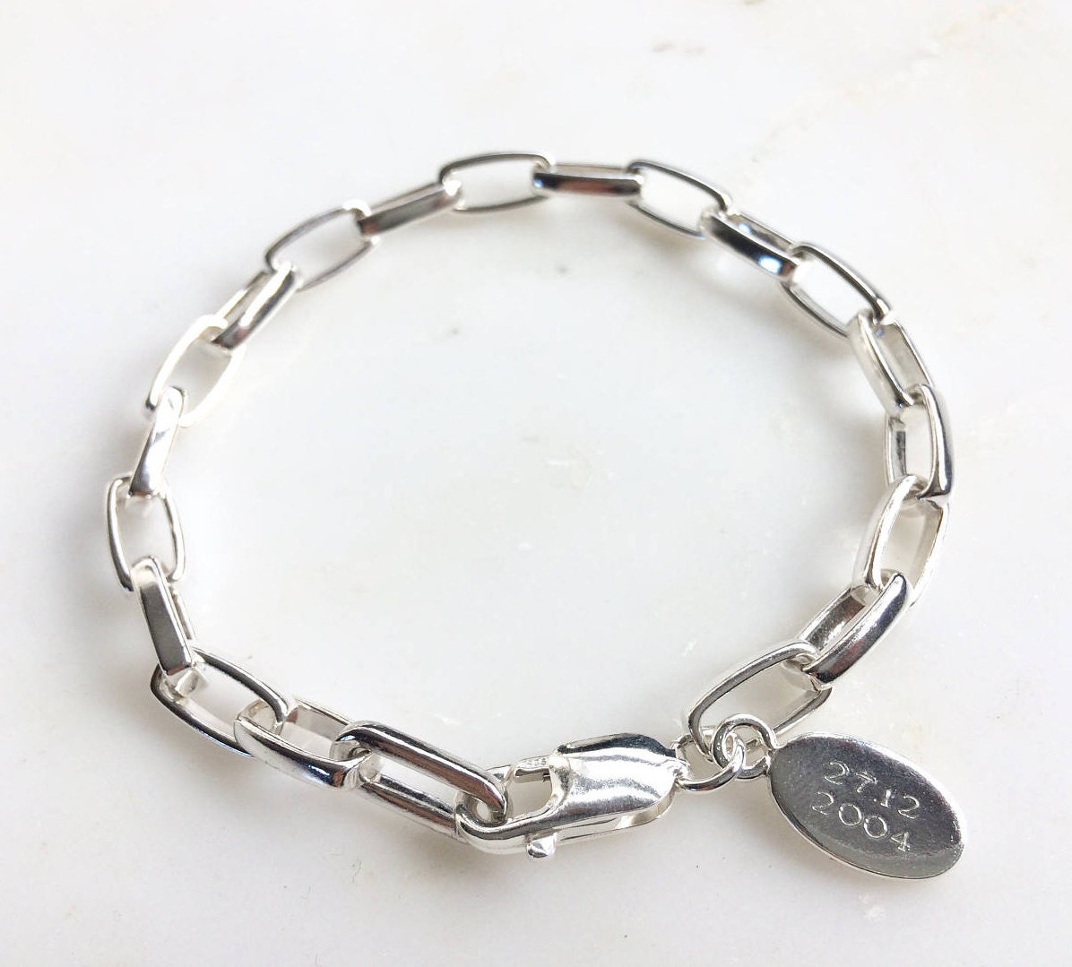 This heavy, chunky sterling silver rectangle chain bracelet will mark your special day.
