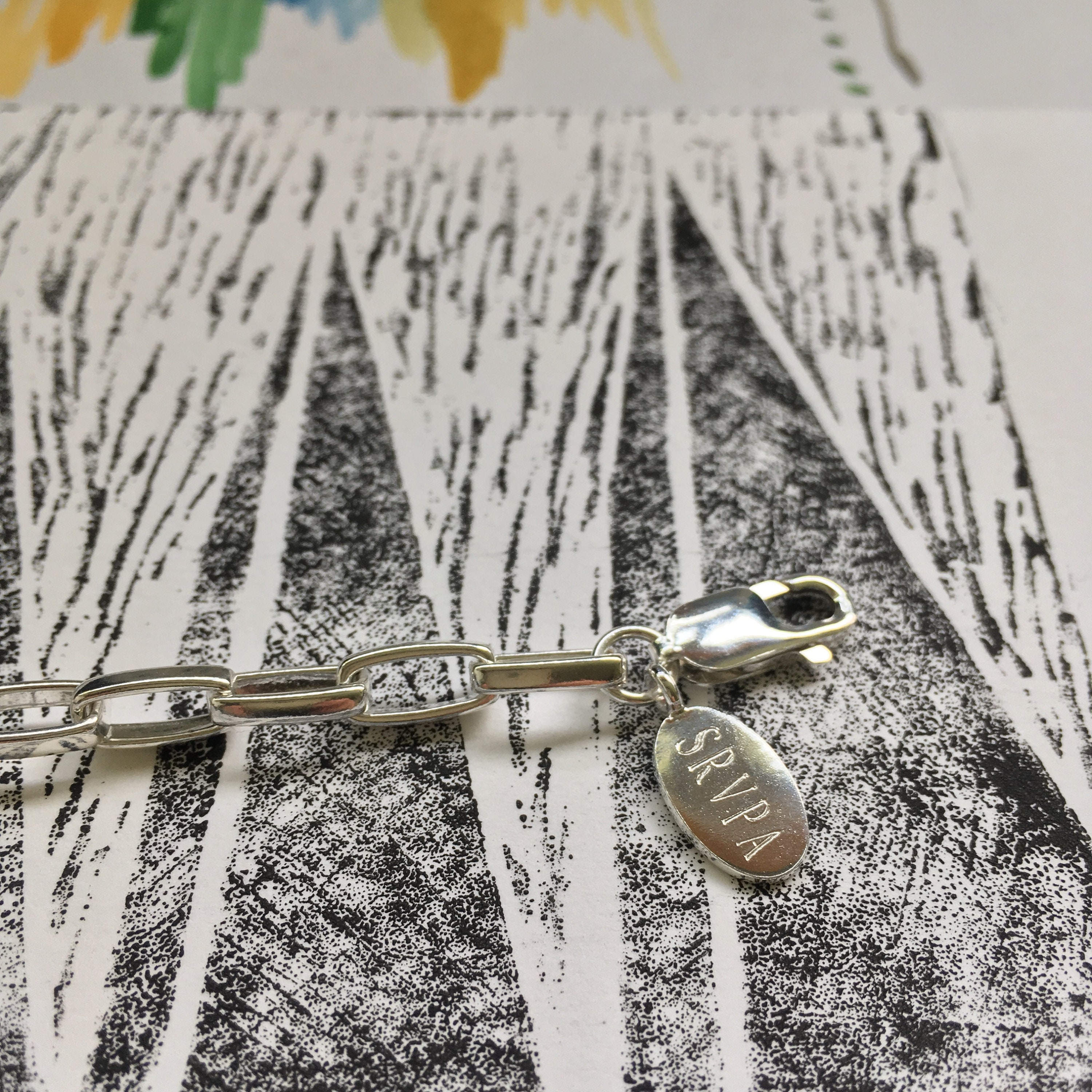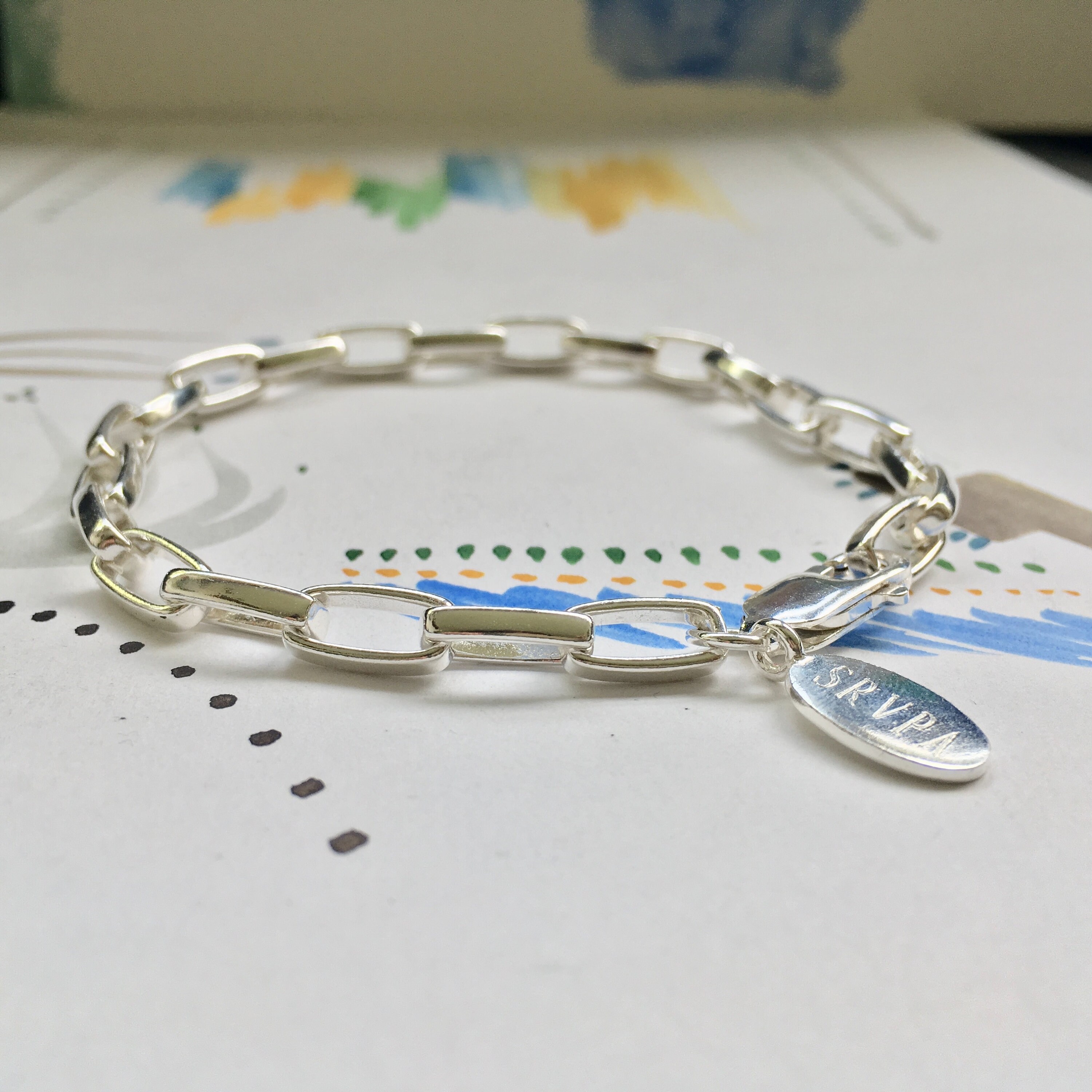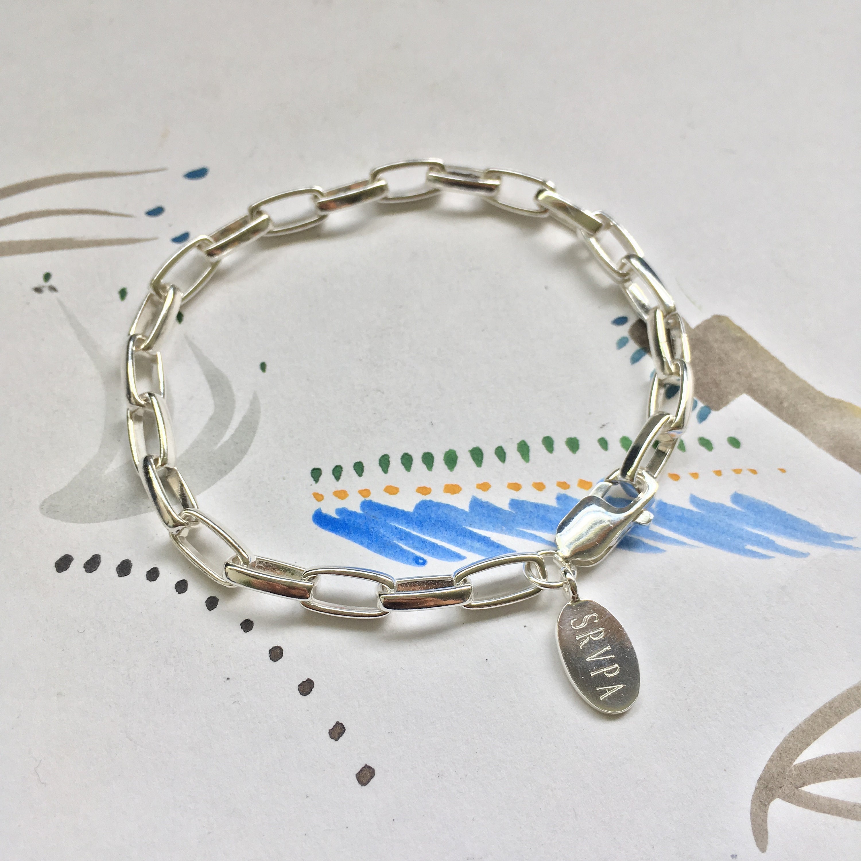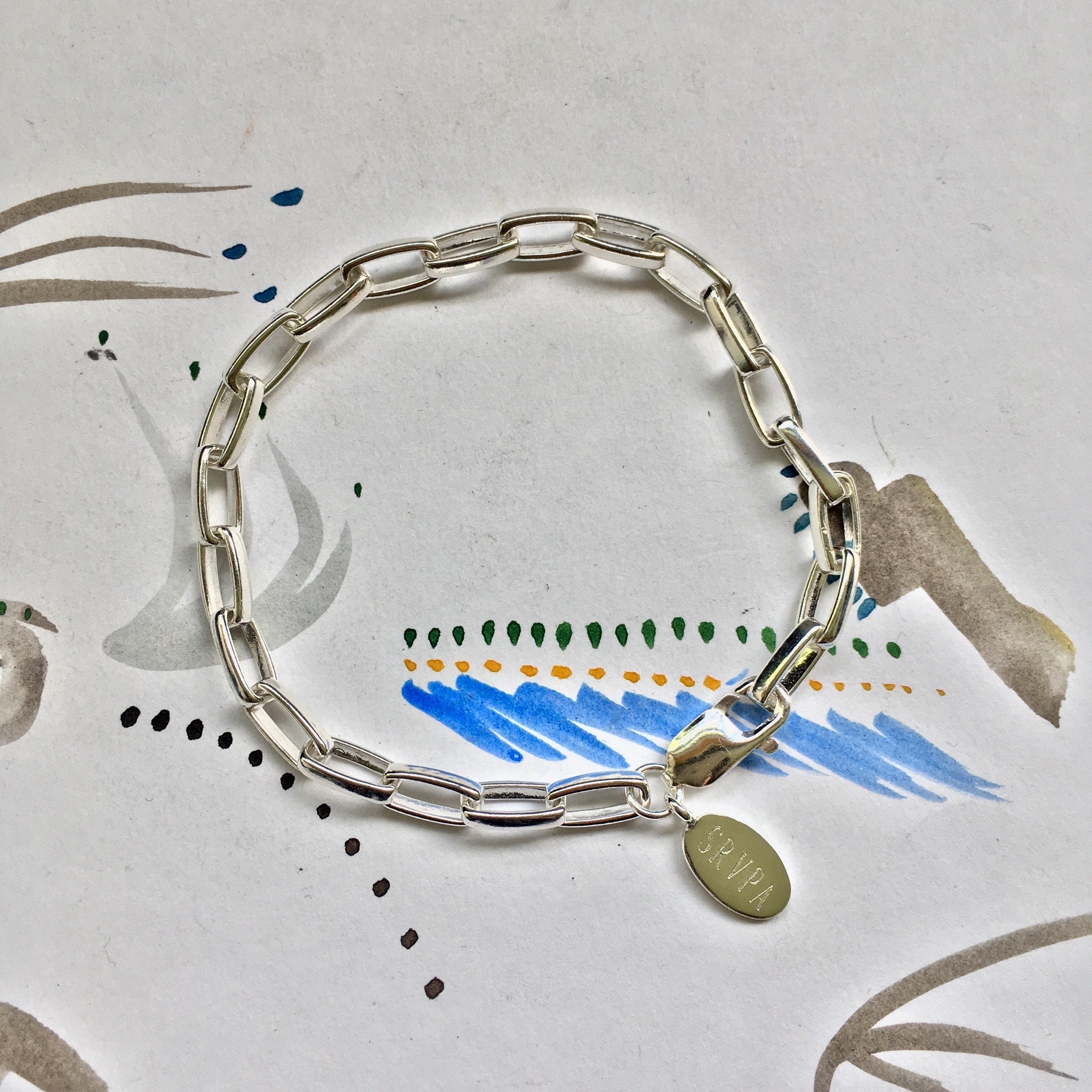 This heavy, chunky sterling silver rectangle chain bracelet will mark your special day.