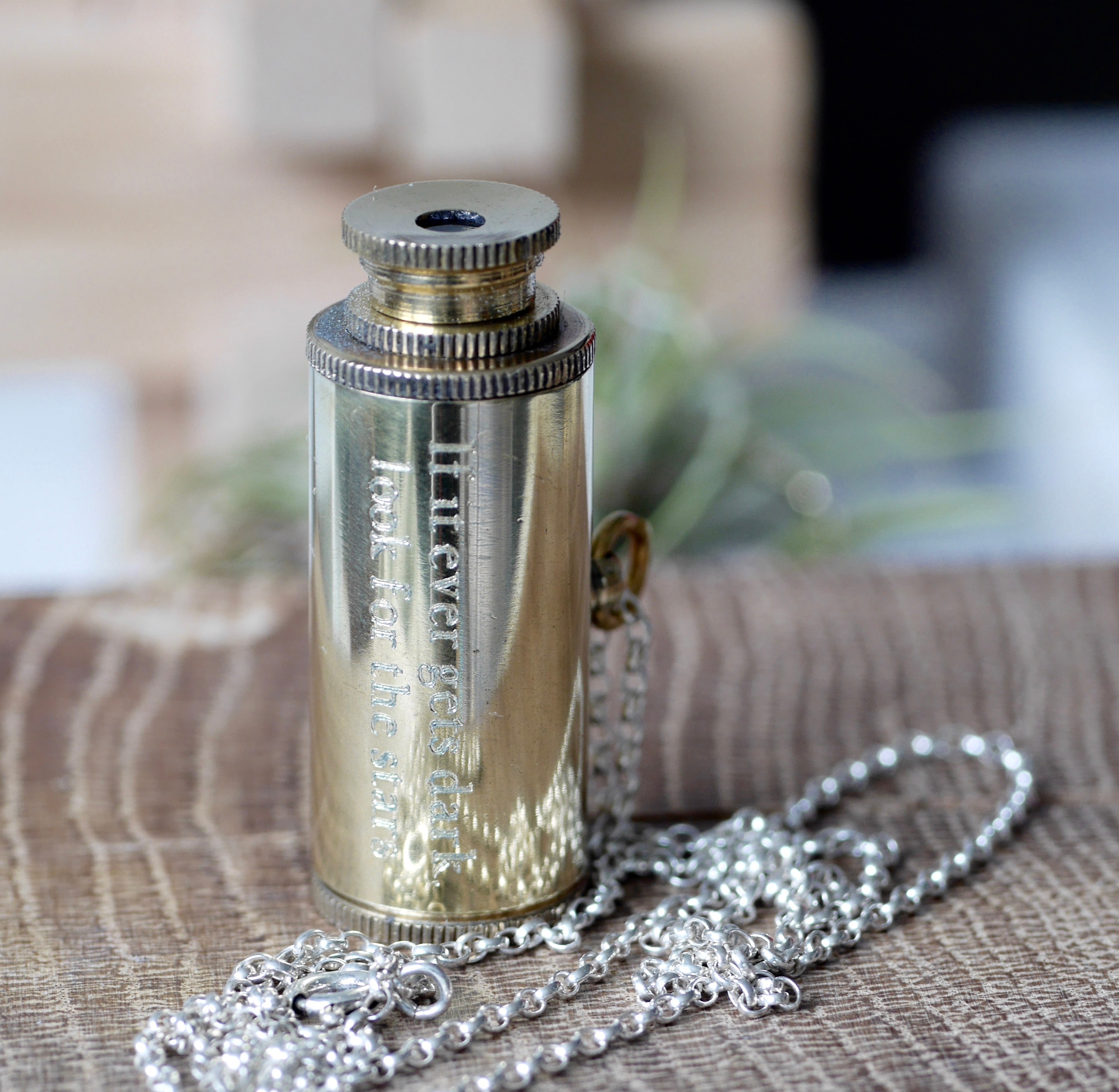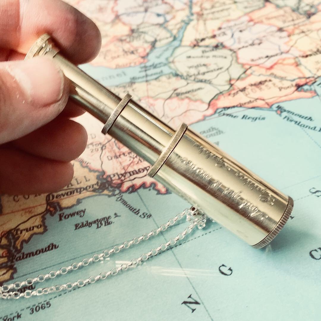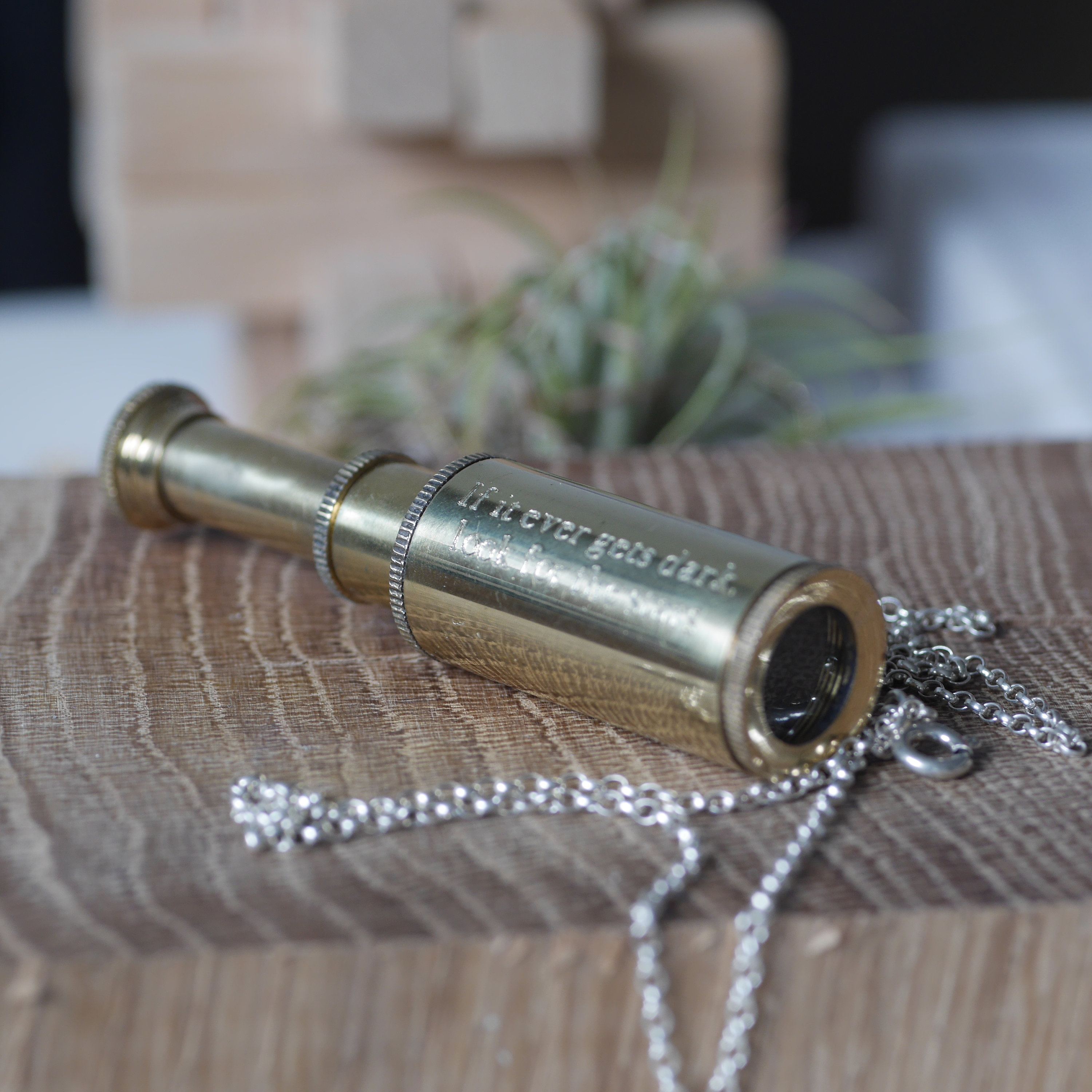 Personalised Miniature raw brass real telescope Necklace -Personalised steampunk mini telescope jewellery.