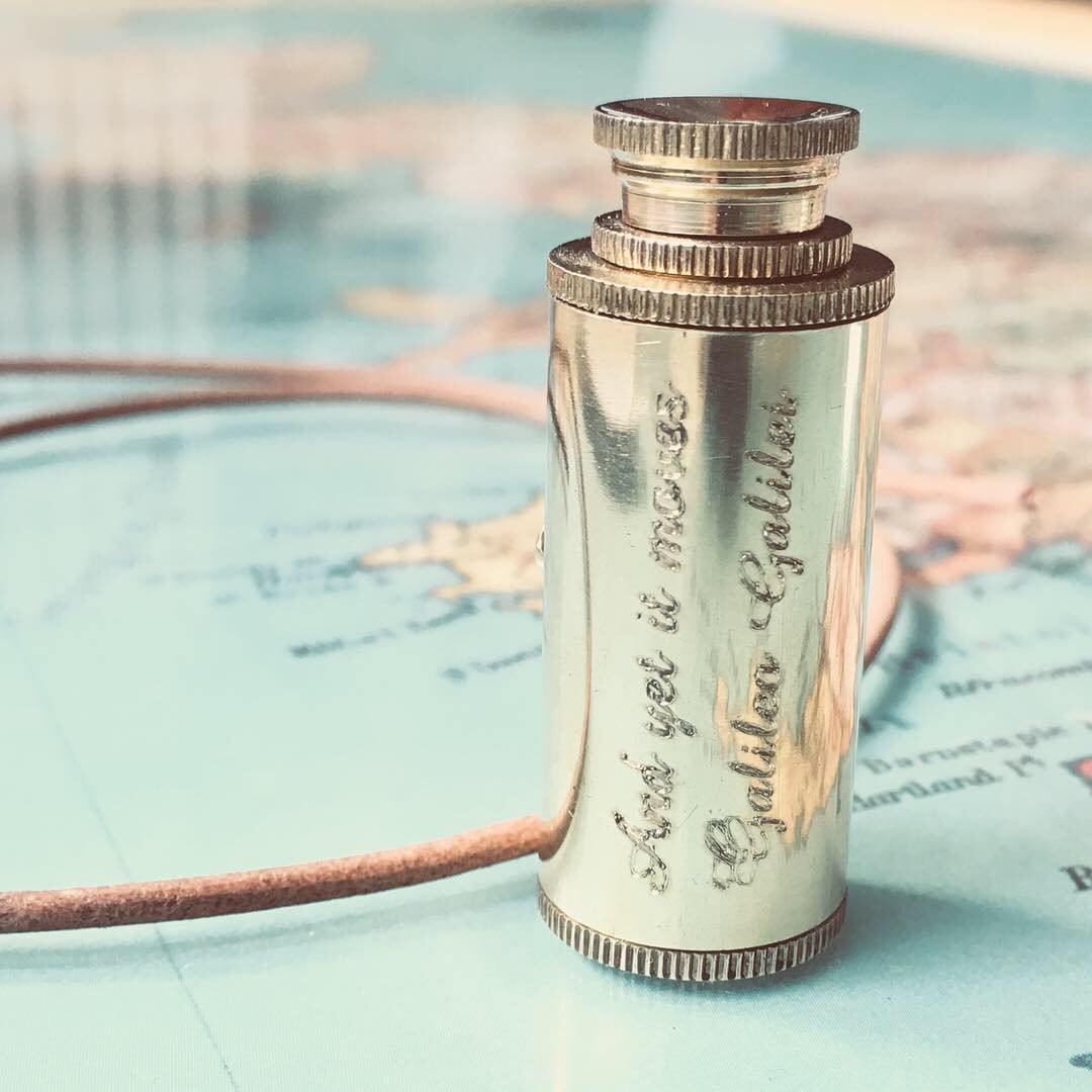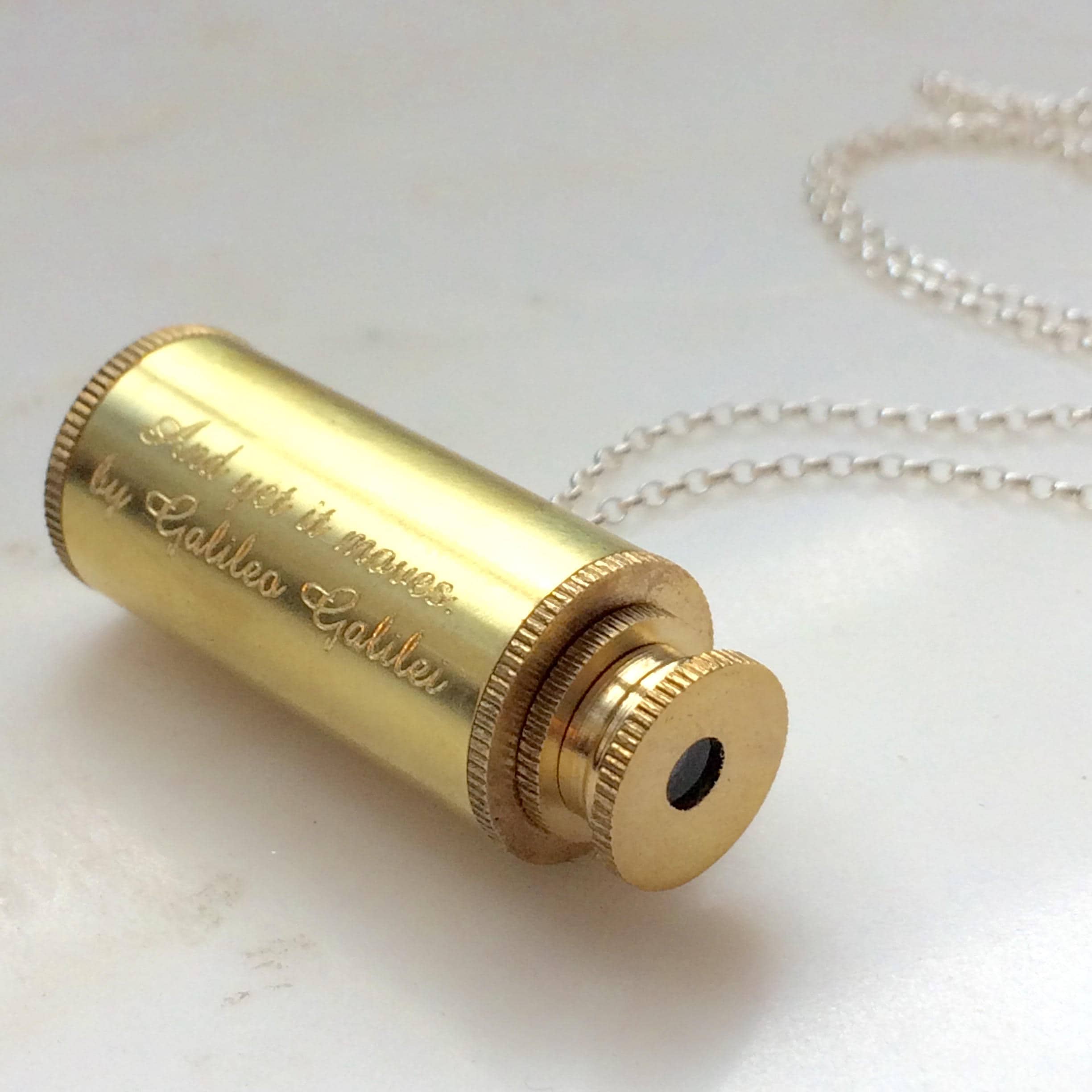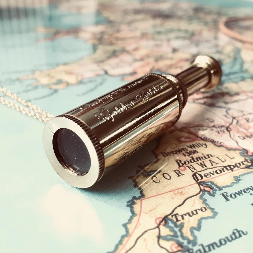 Personalised Miniature raw brass real telescope Necklace -Personalised steampunk mini telescope jewellery.