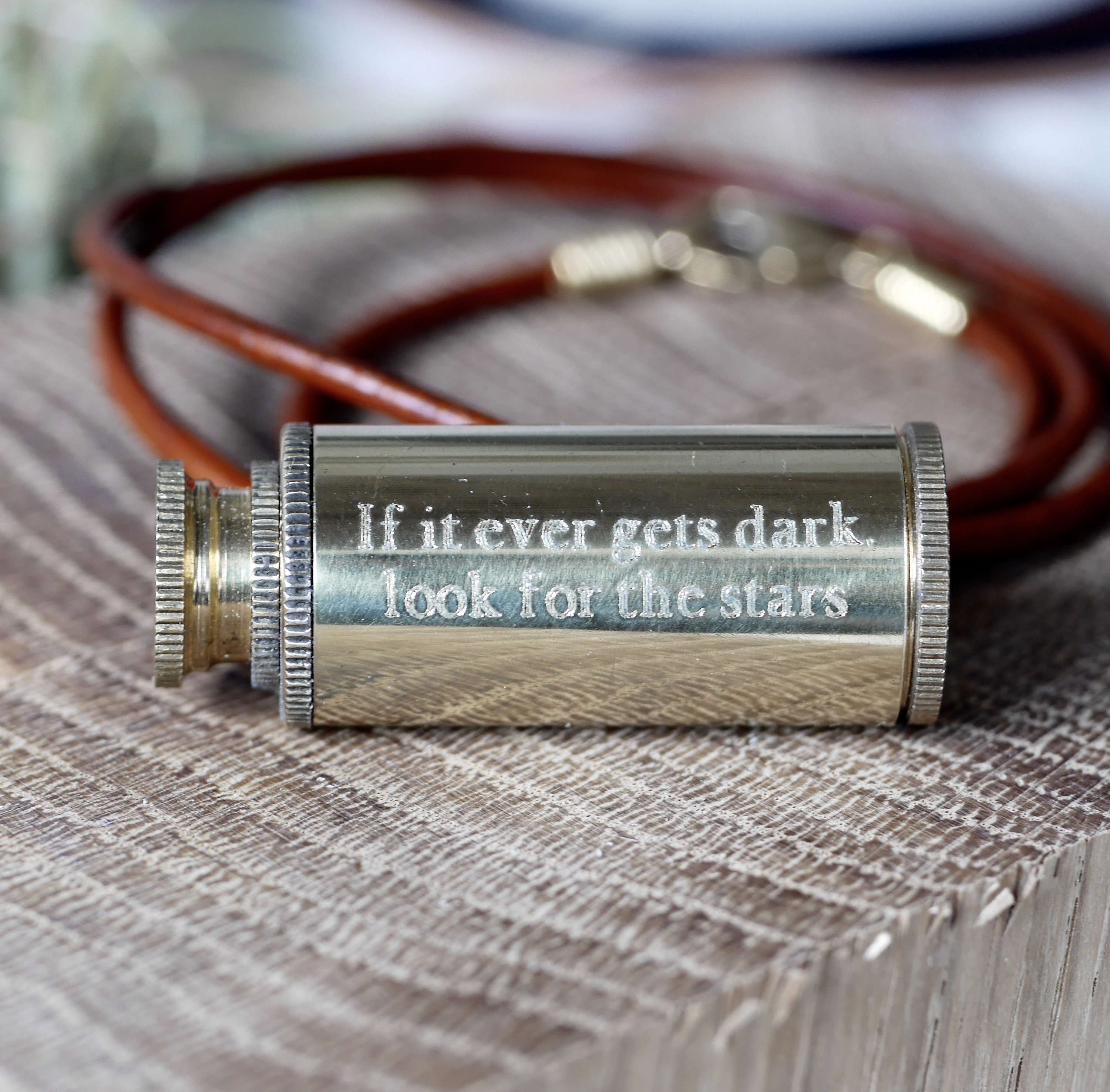 I will engrave your personalisation message onto your telescope. One of the listing image quotes is taken from telescope creator Galileo Galilei's words "And yet it moves".