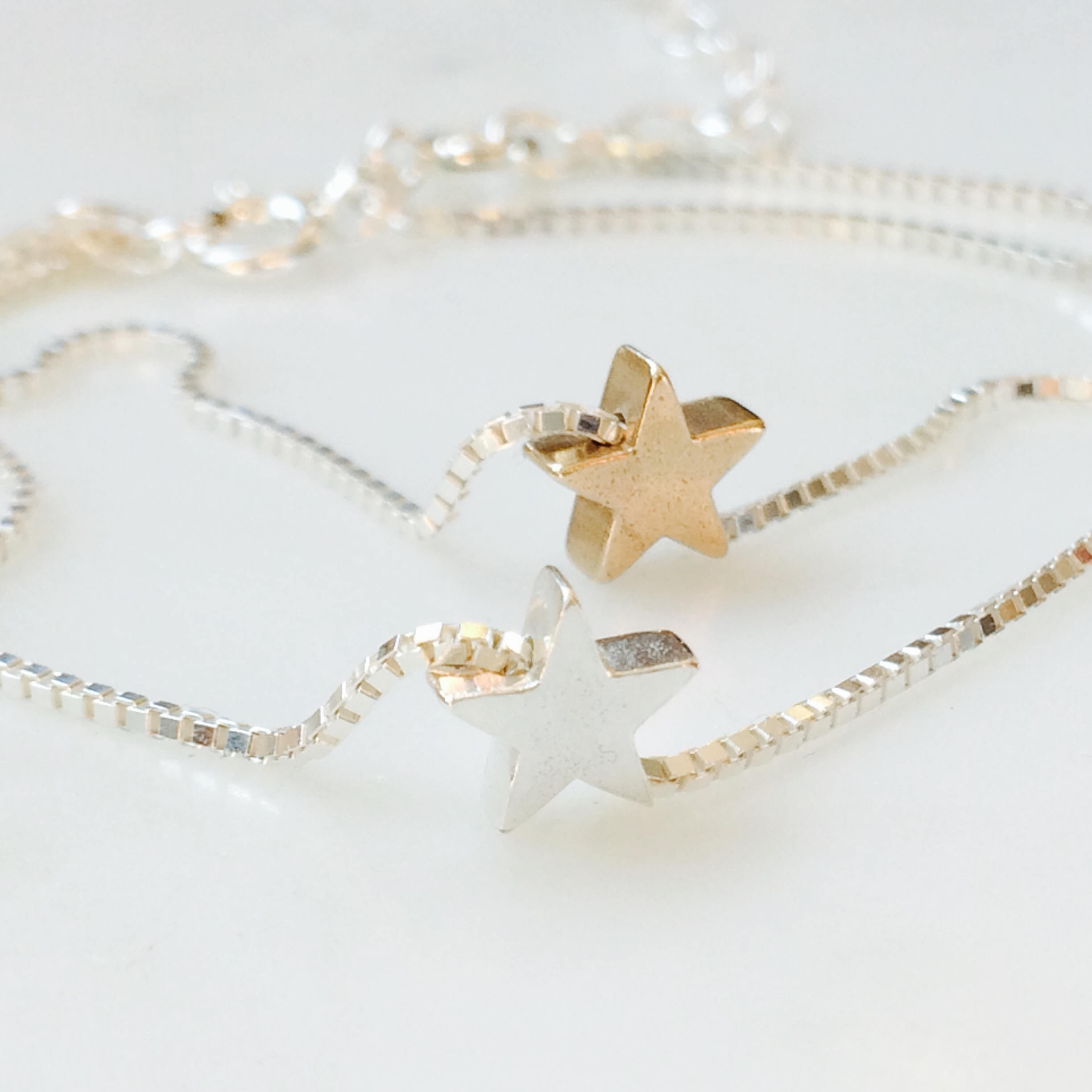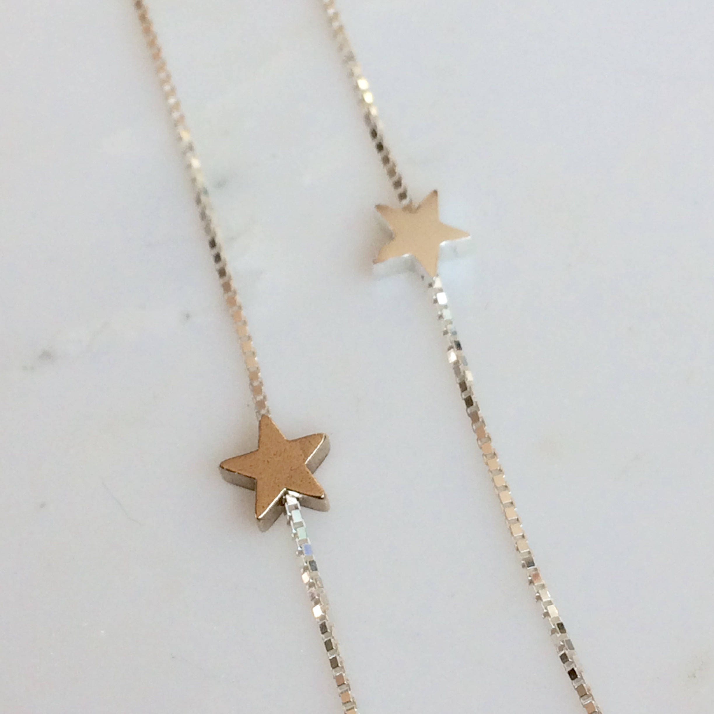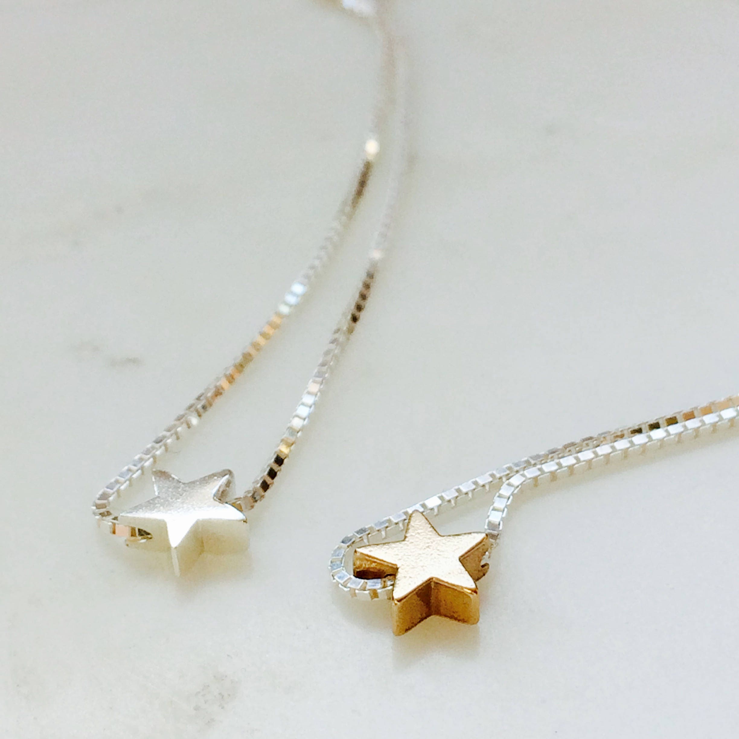 You can choose the raw brass or sterling silver star option. Please choose your material in the variation box. If you are looking for a star anklet, I can make it into an anklet so please contact me for more details.