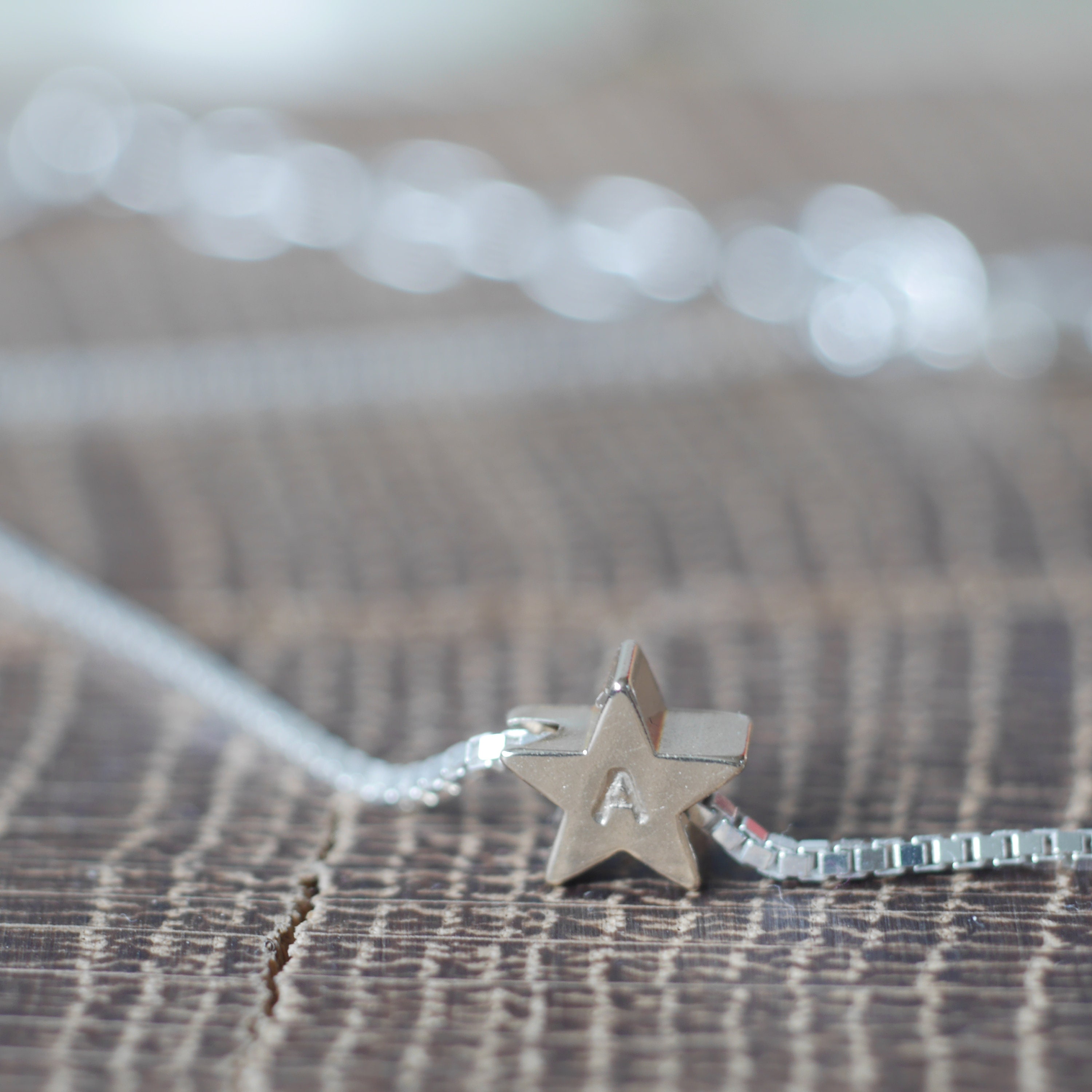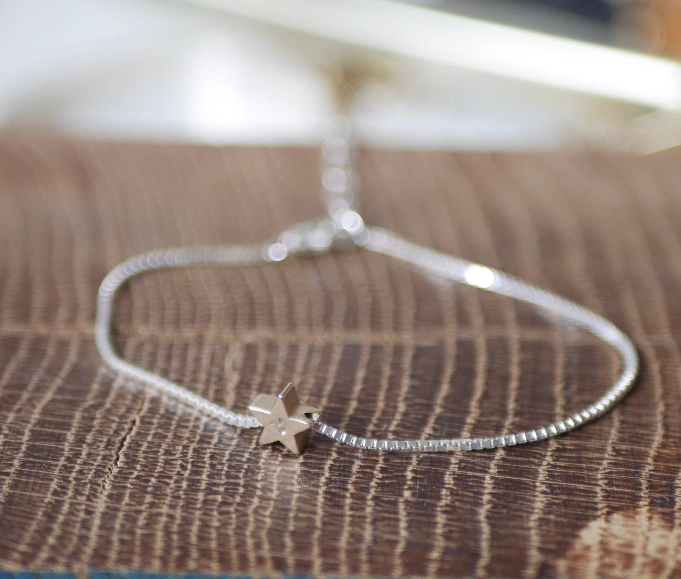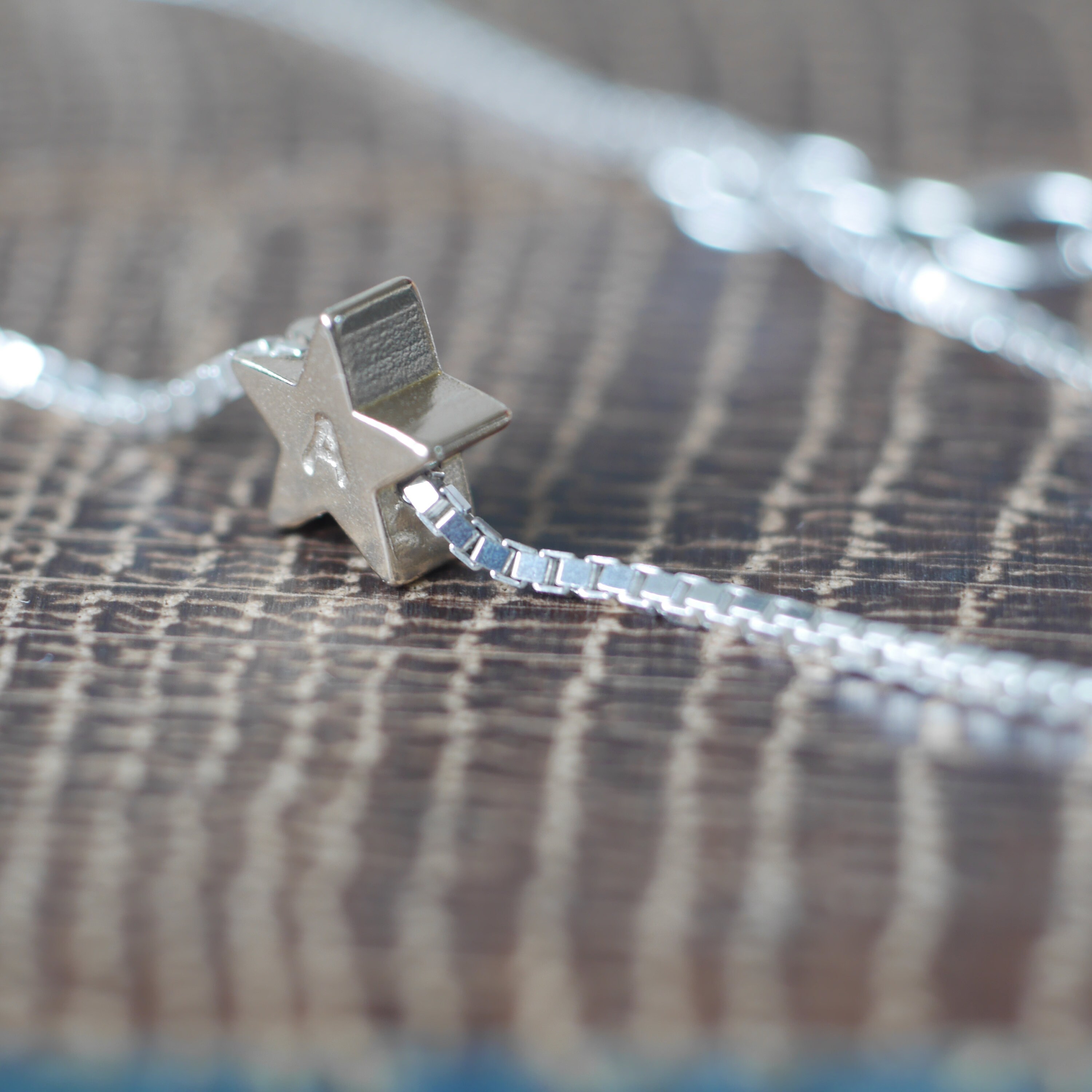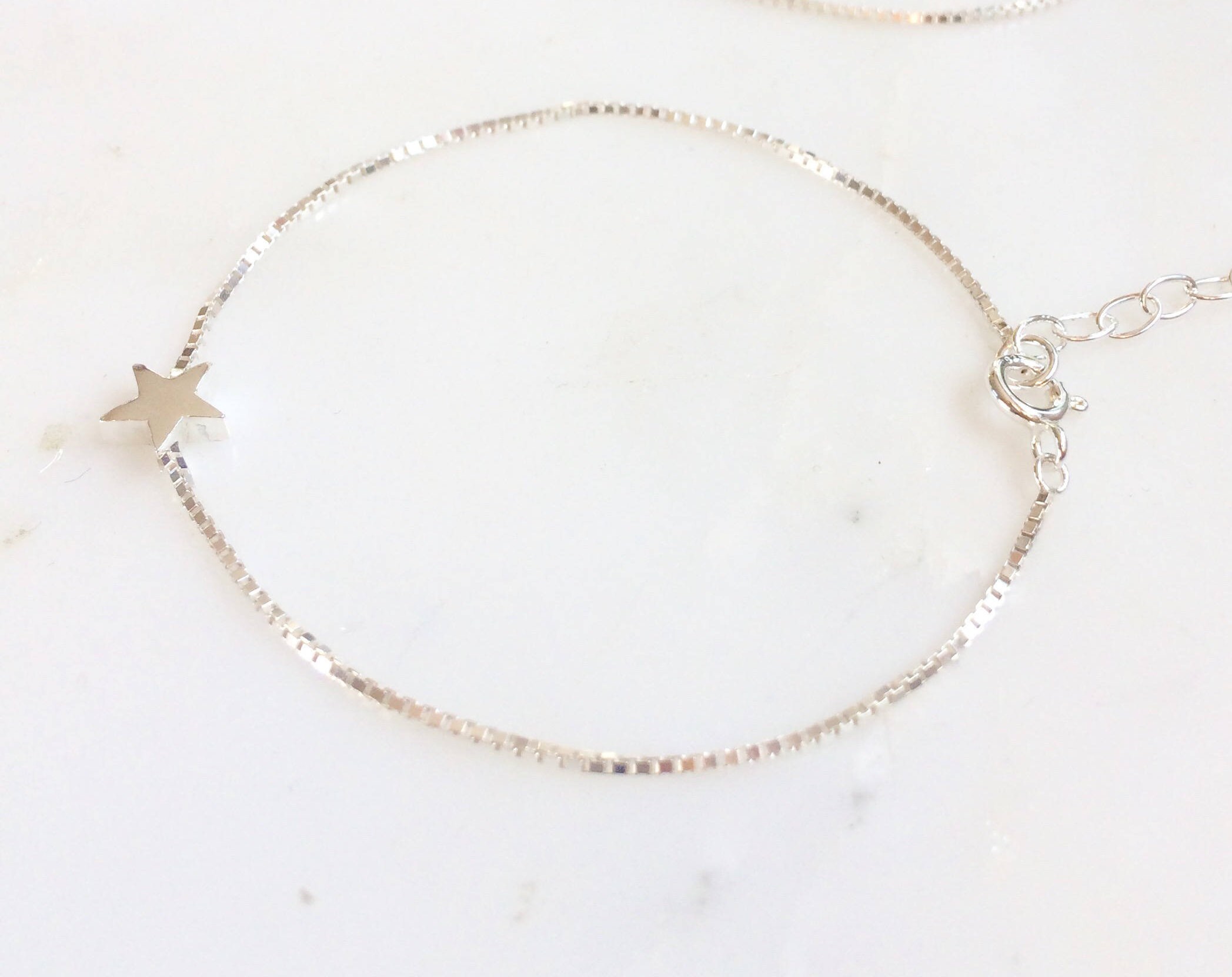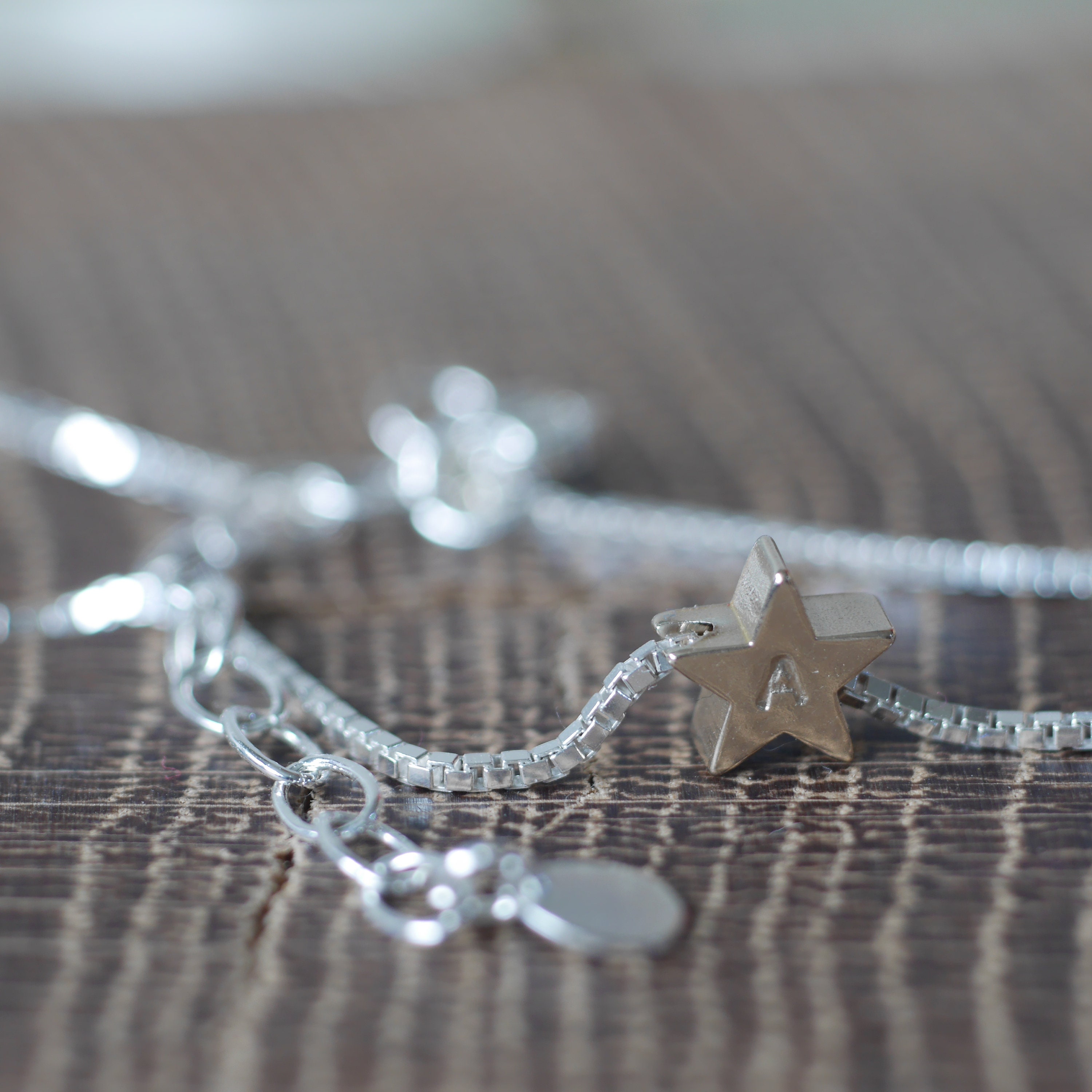 Personalised Star charm Sterling Silver box chain delicate bracelet.
