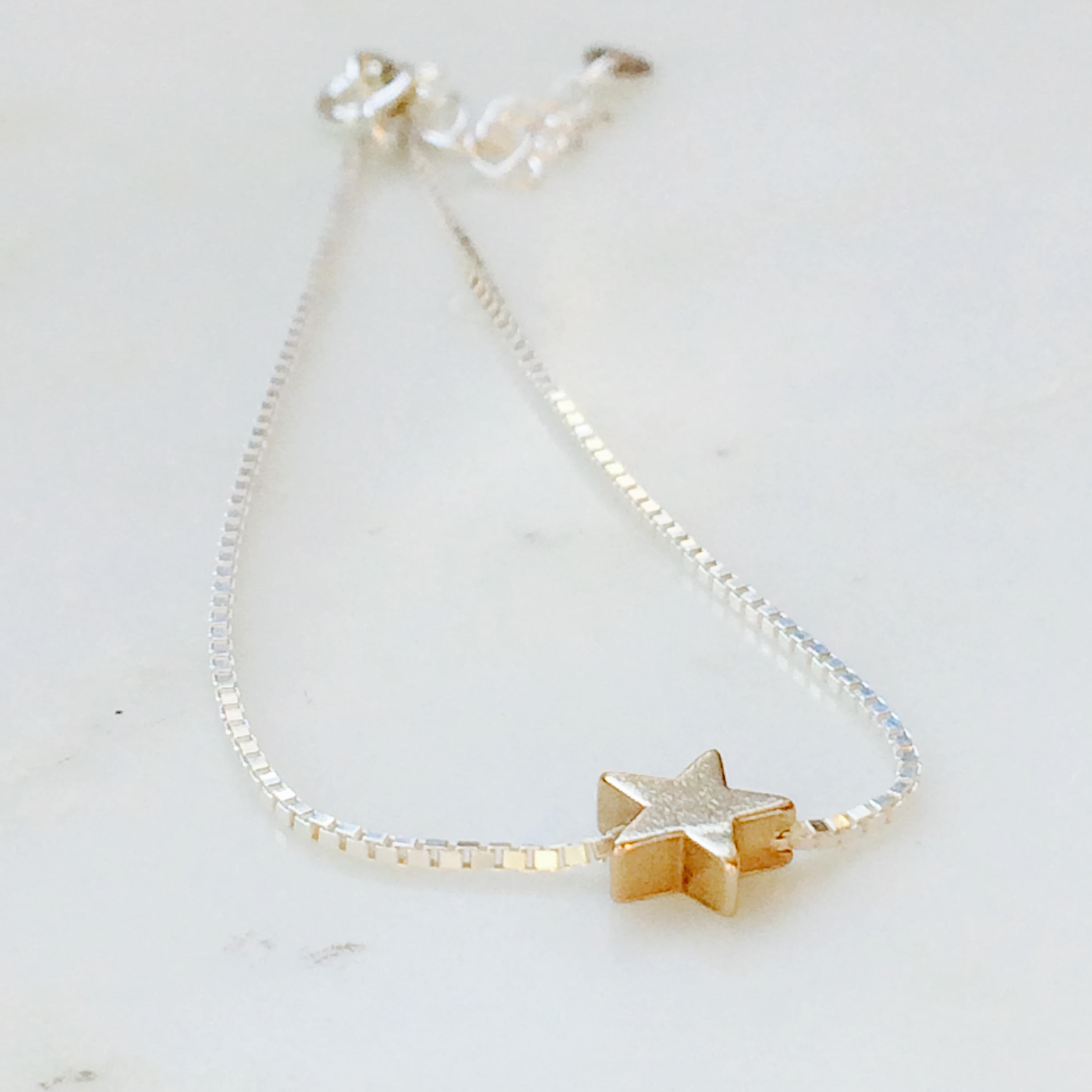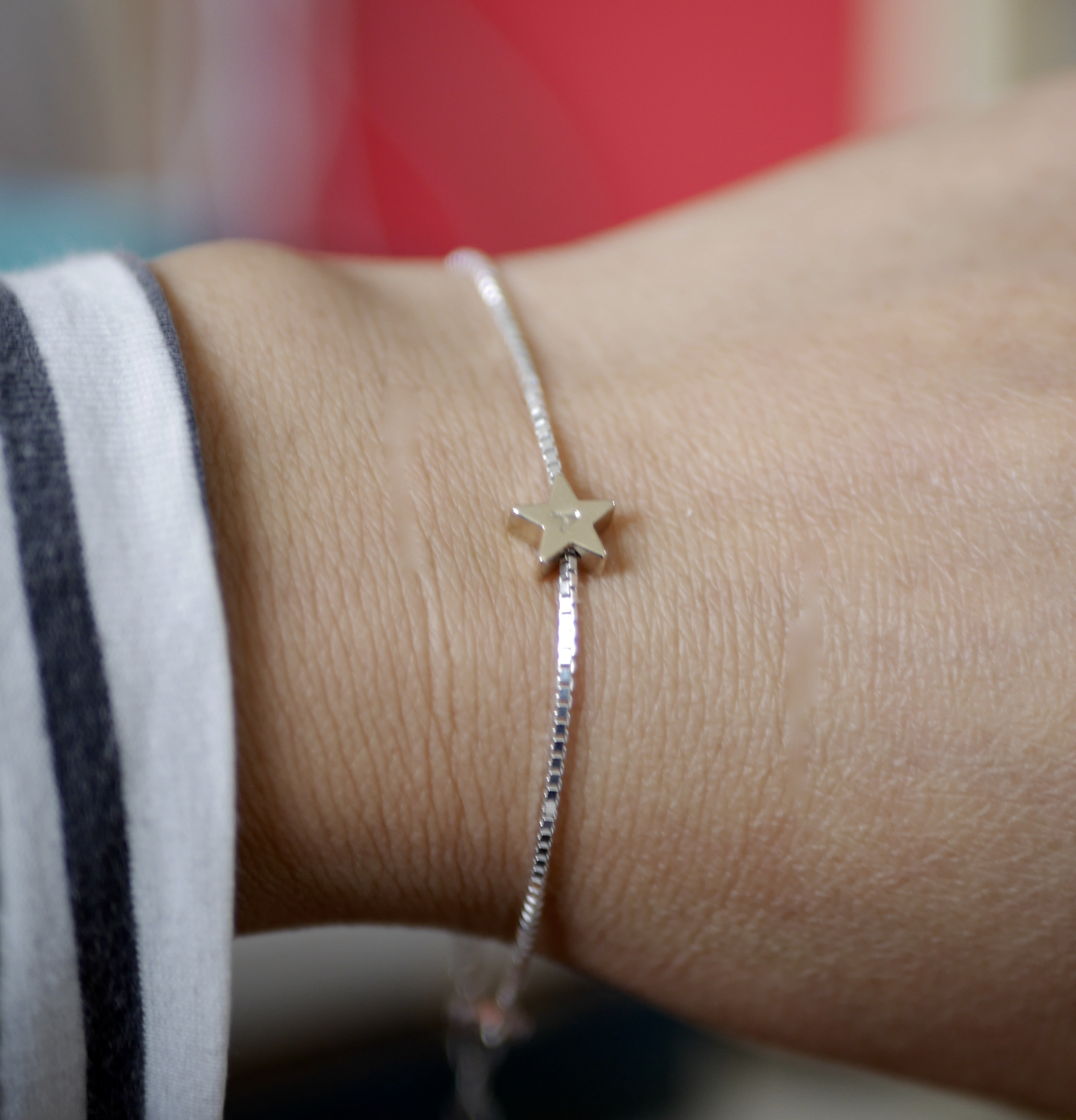 Dainty and minimalist sterling silver star charm bracelet jewellery for her.