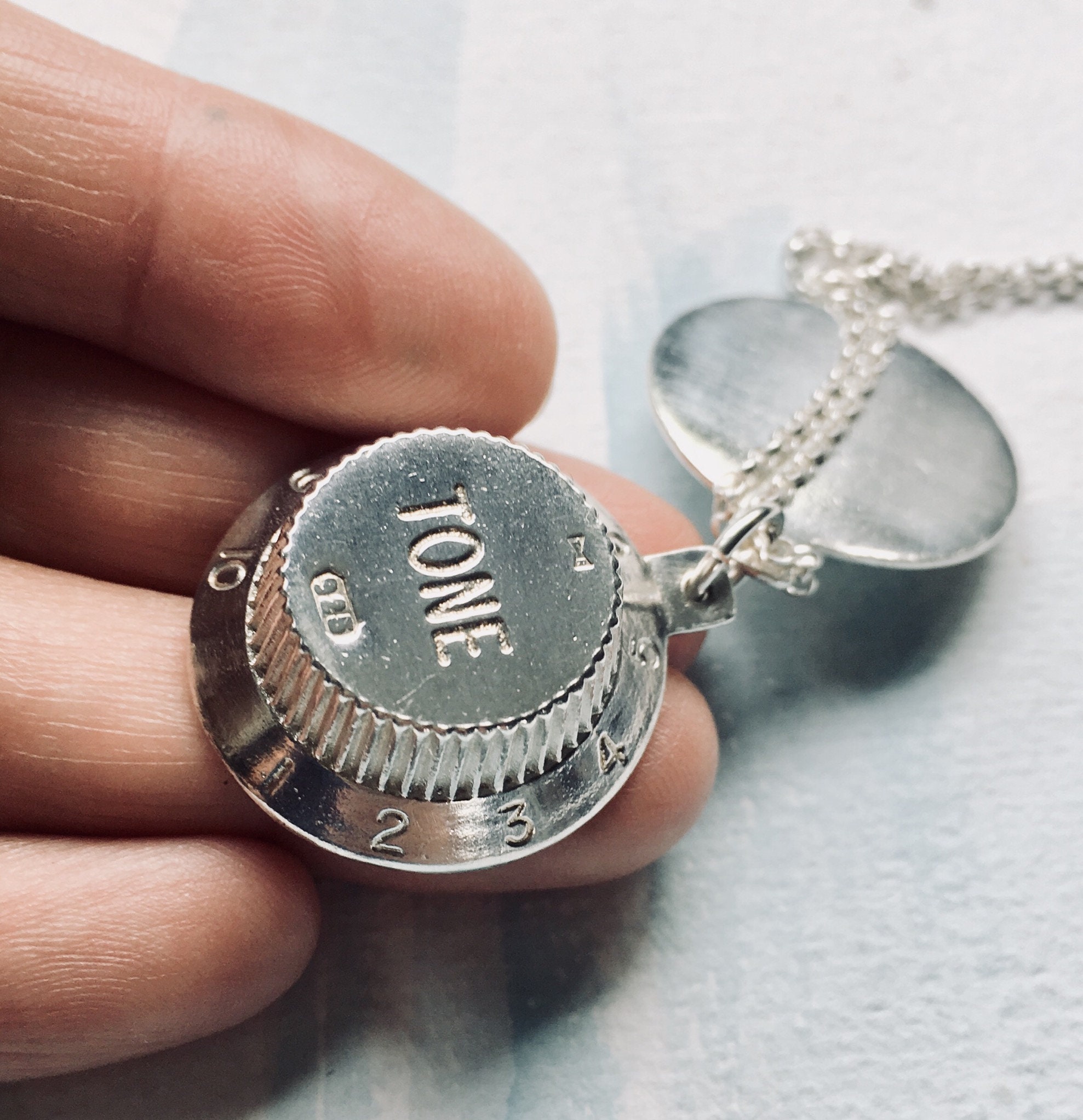 Fender Guitar Knob Locket Necklace- Personalised casted sterling silver Fender Knob - Musician Gift - Guitar Knob Necklace - Fender Knob Necklace - Mens Gift