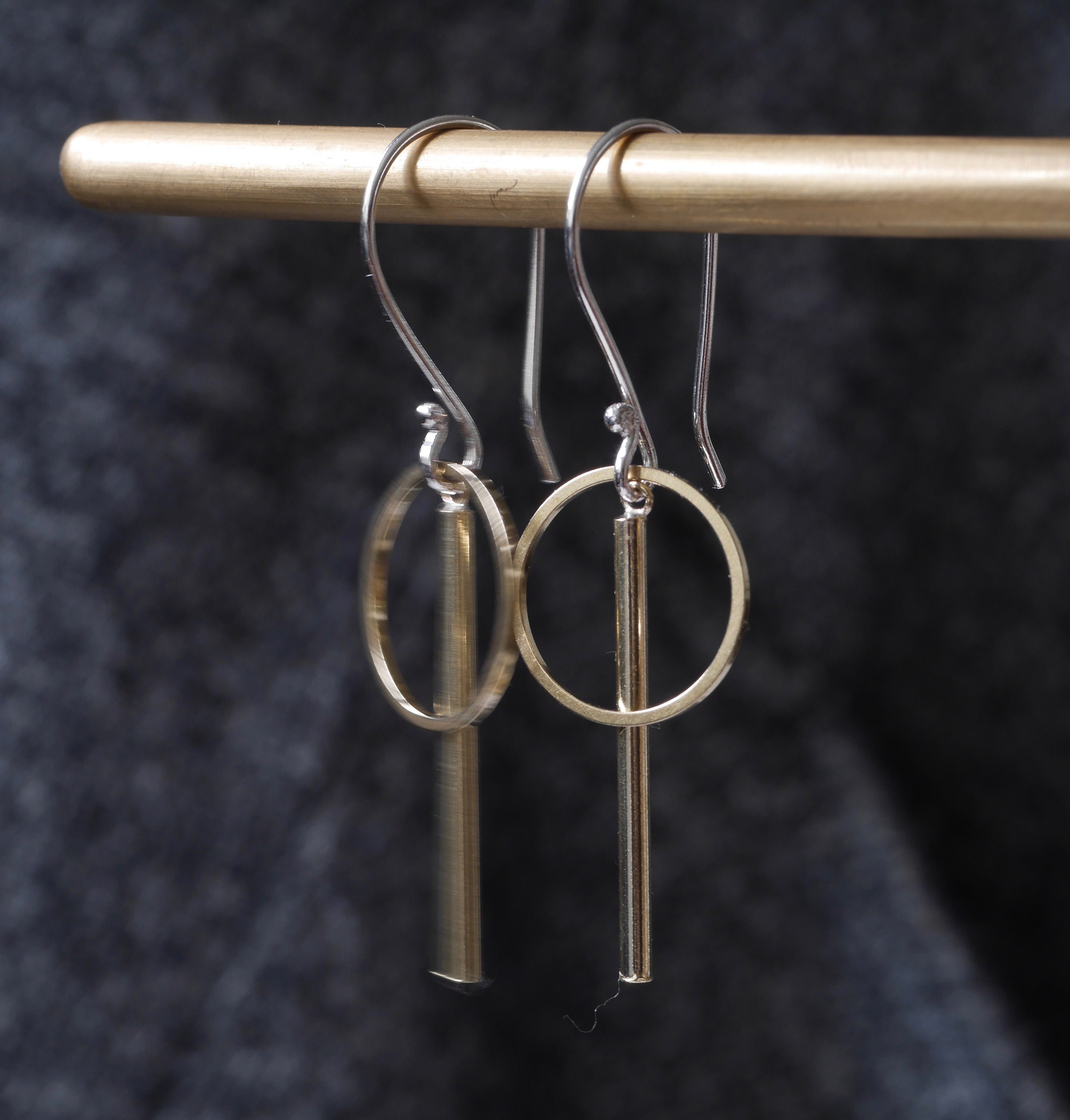 Very elegant minimalist circle bar earrings made from highly polished raw brass with sterling silver ear hooks come in 2 styles. Great earrings for any kind of occasion and season. Ideal gift for weddings, Christmas, Mother's Day, birthdays, Valentine's Day etc...