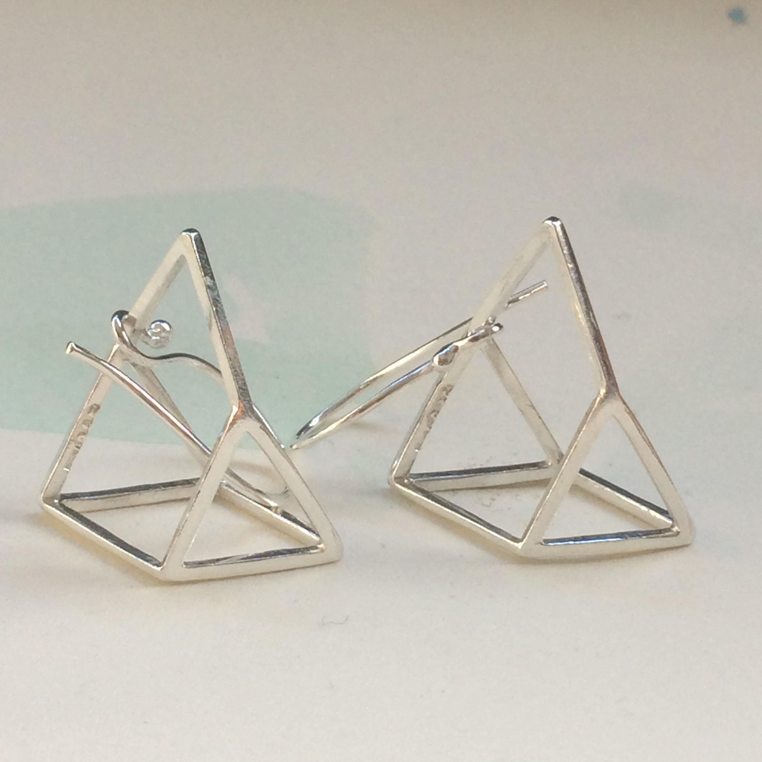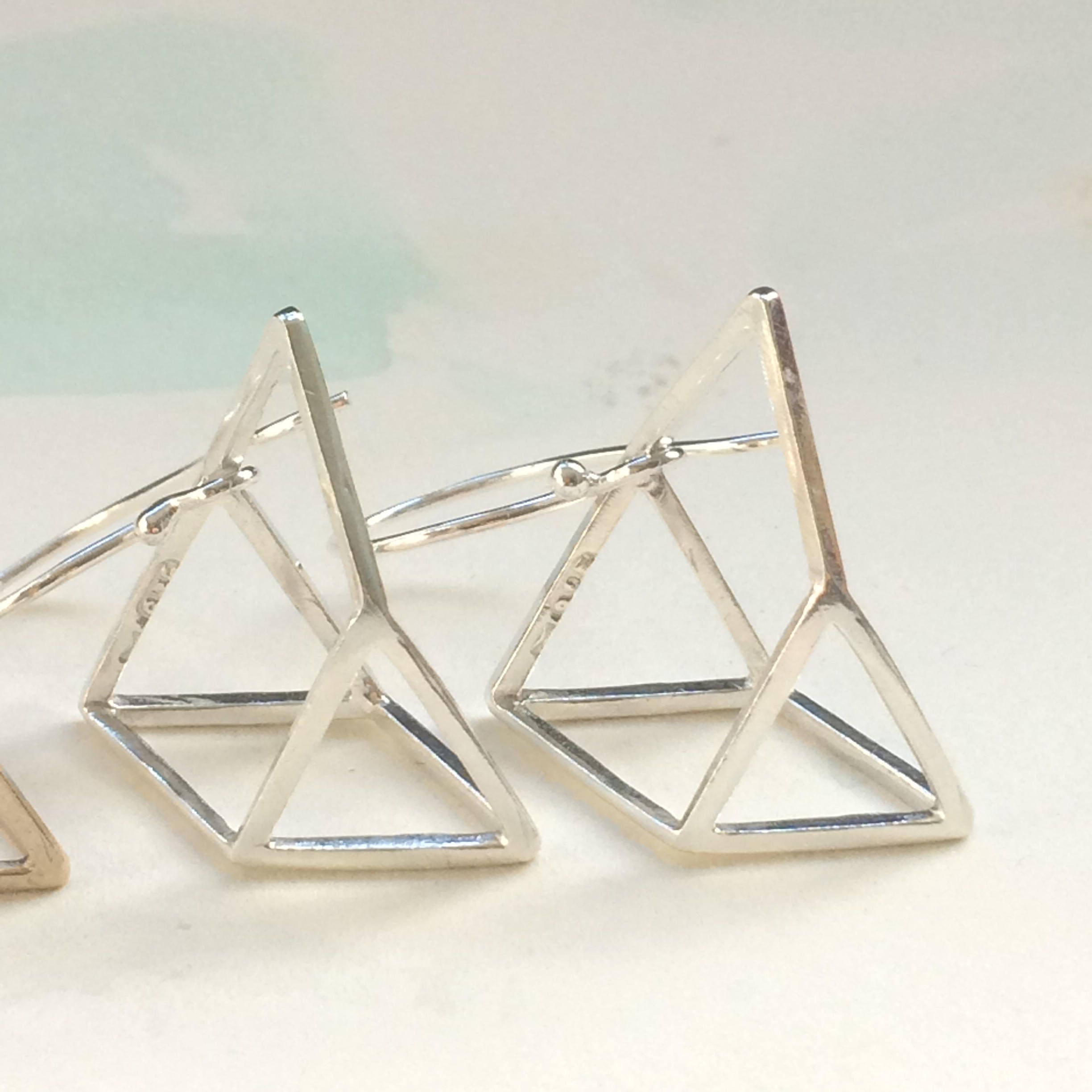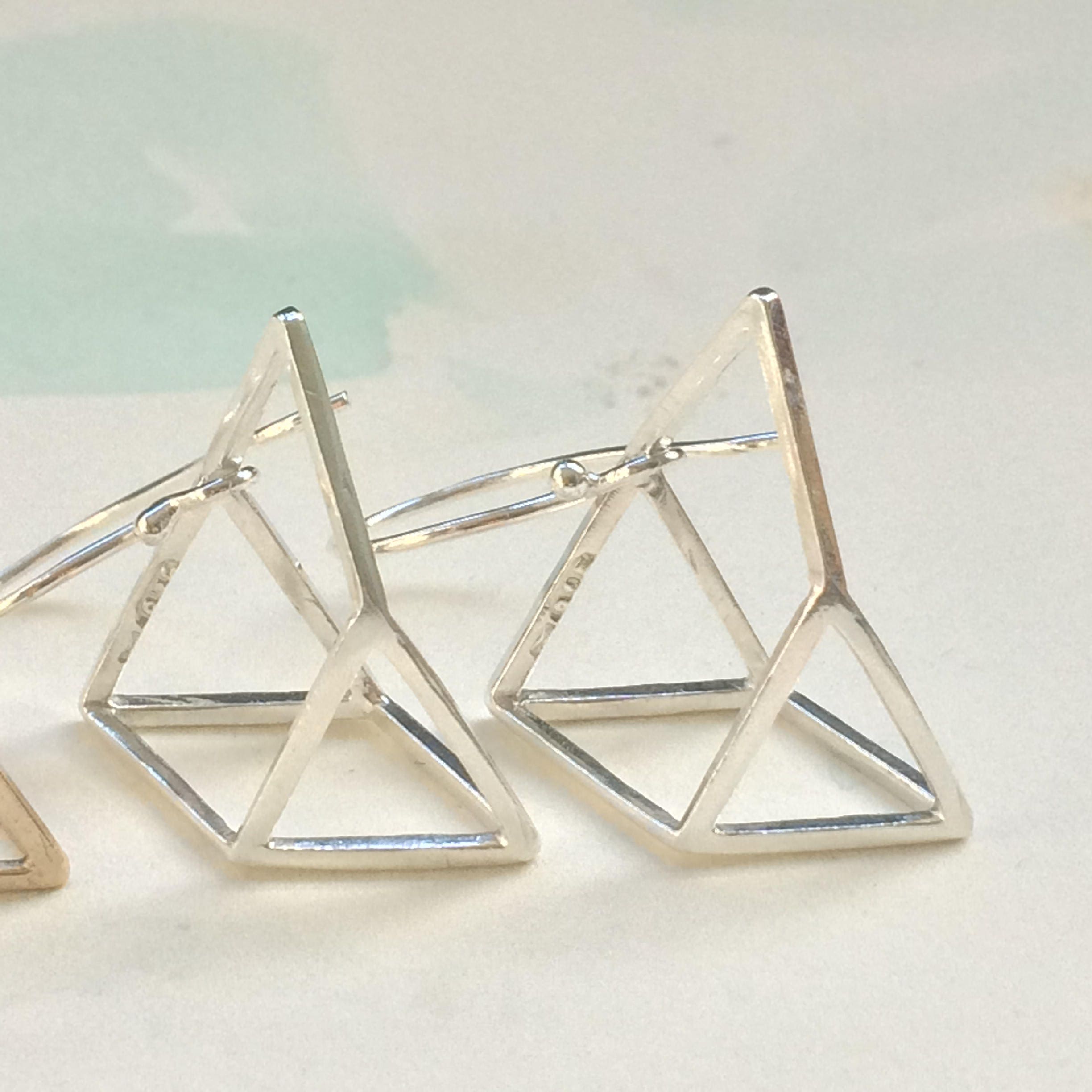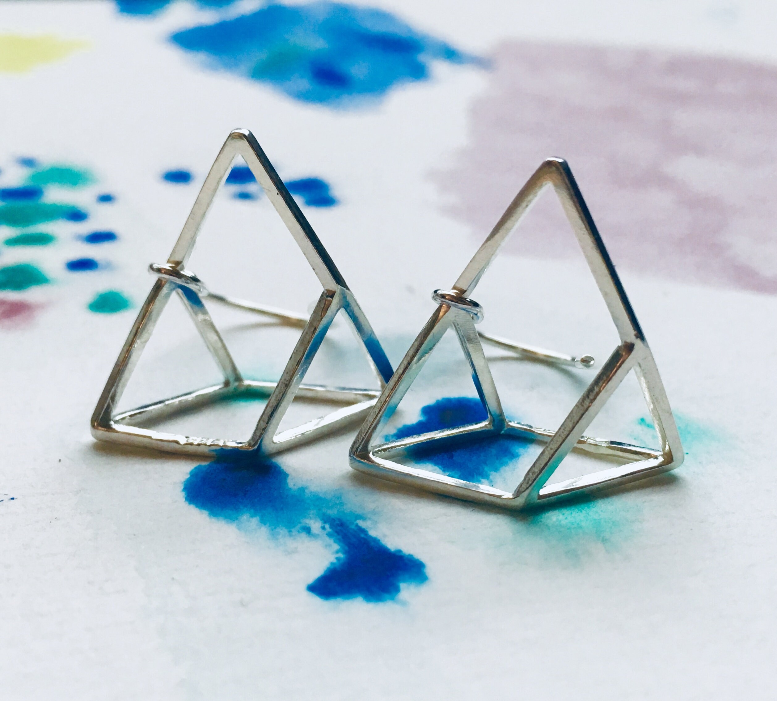 I came up with this shape when I put myself to Triangle Challenge. I had some triangle charms and decided to make as many as jewellery or shapes I can. This optical illusion shape made from 3 triangle charms and ended up with very interesting shape that I didn't plan at the begging. One of my friends really liked this shape so I decided to add to my product.