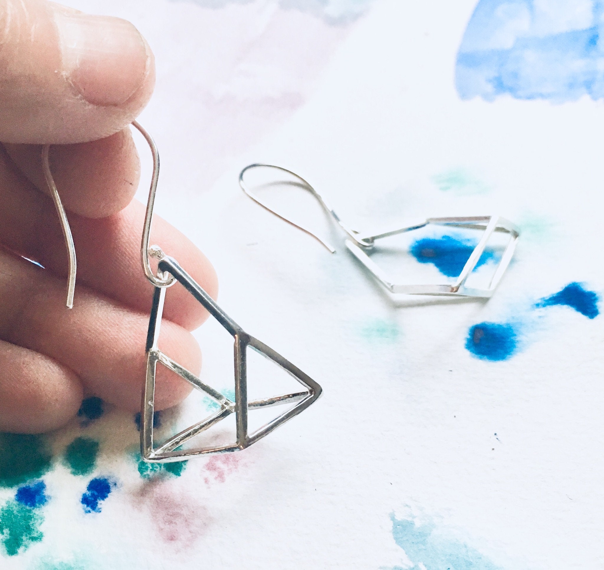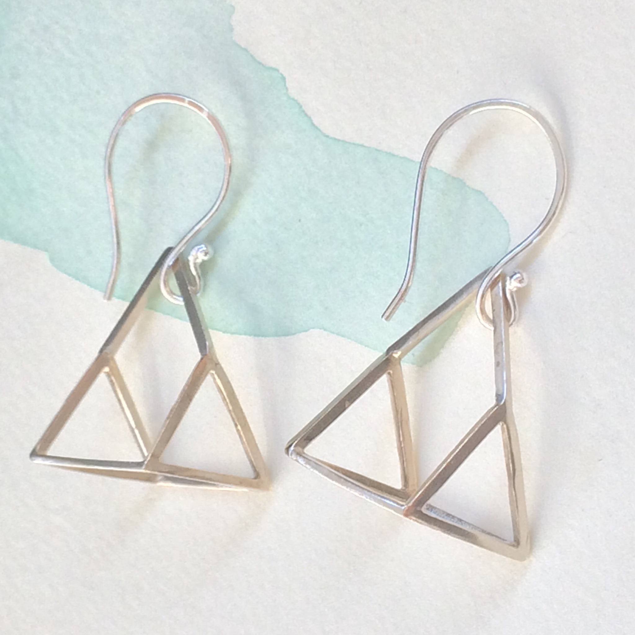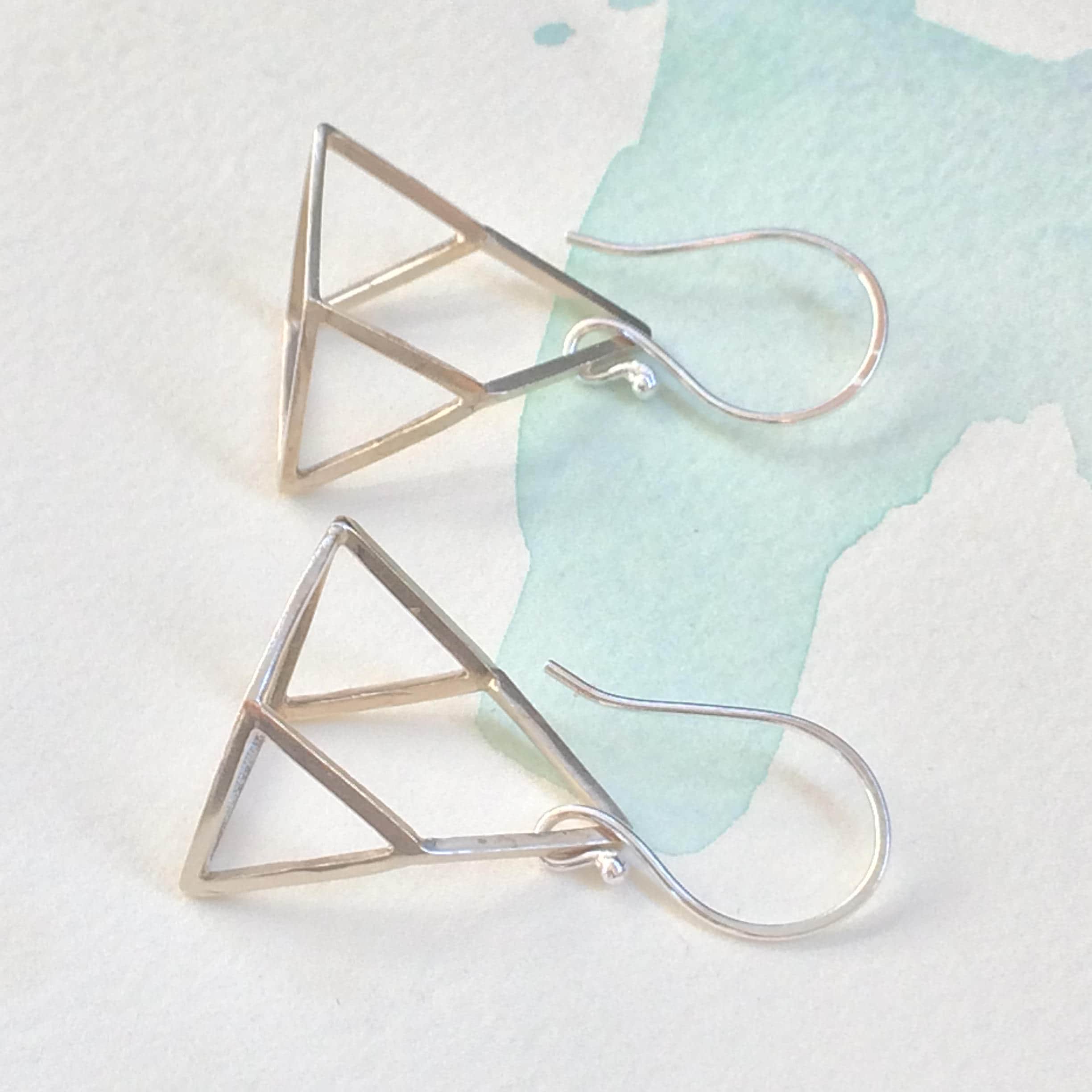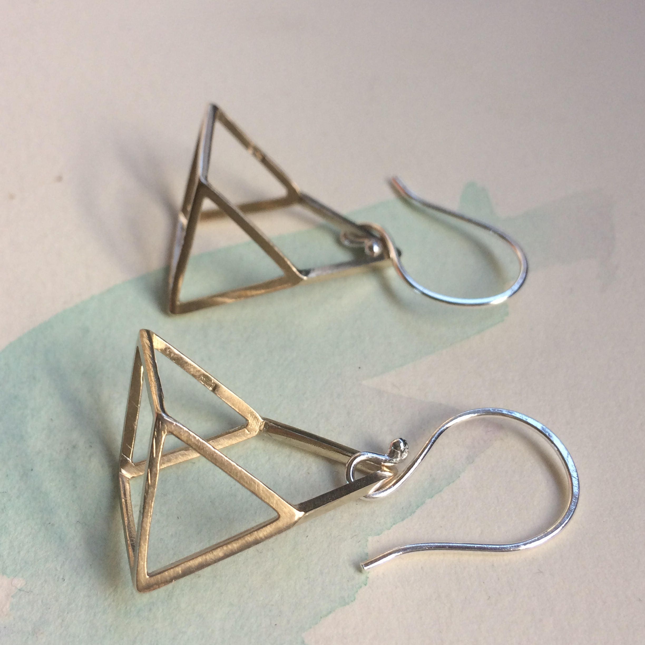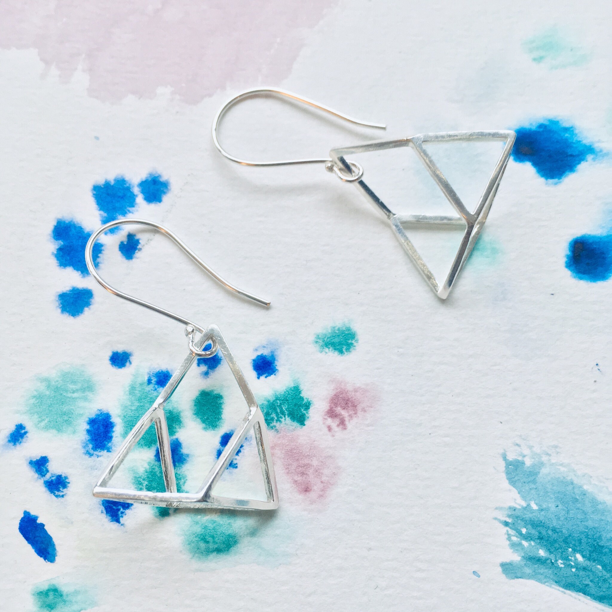 I came up with this shape when I put myself to Triangle Challenge. I had some triangle charms and decided to make as many as jewellery or shapes I can. This optical illusion shape made from 3 triangle charms and ended up with very interesting shape that I didn't plan at the begging. One of my friends really liked this shape so I decided to add to my product.