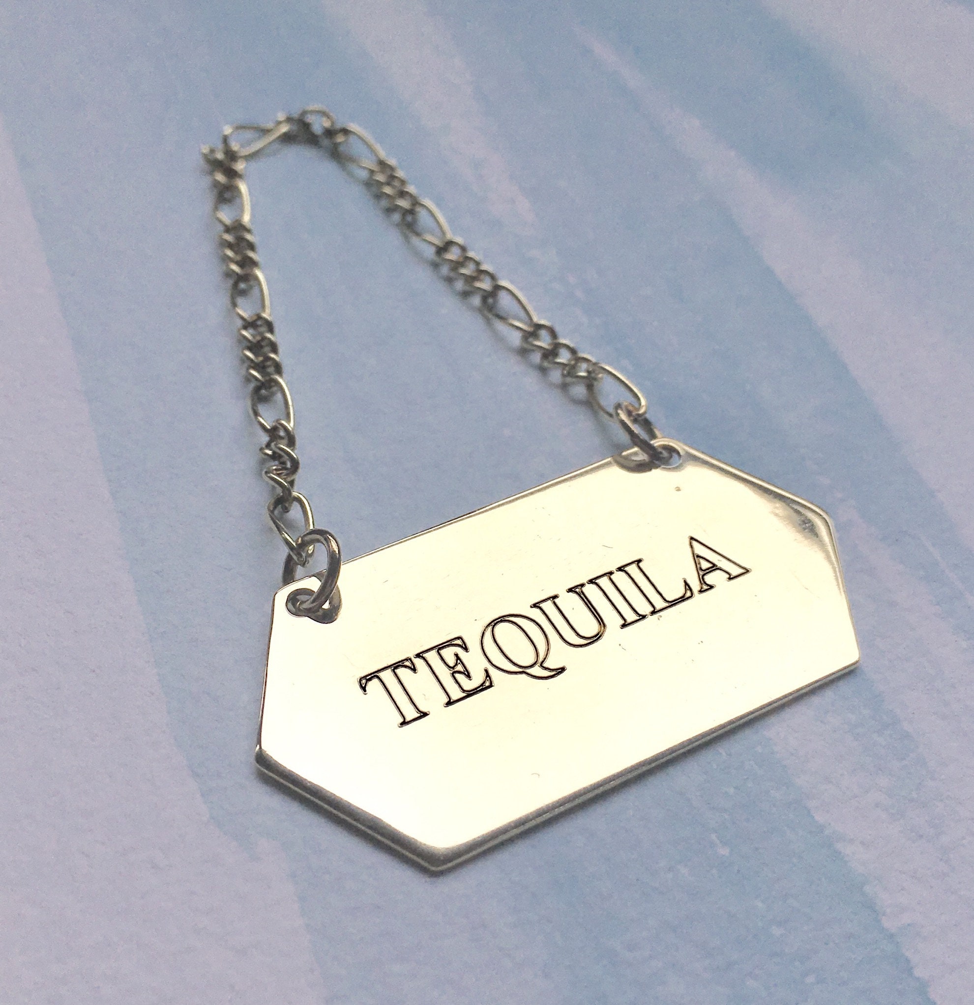 Handmade personalised decanter tag made from a raw brass tag and raw brass chain. I will engrave your special quote, message, special dates anything else you can think of to make the perfect gift for any occasion.