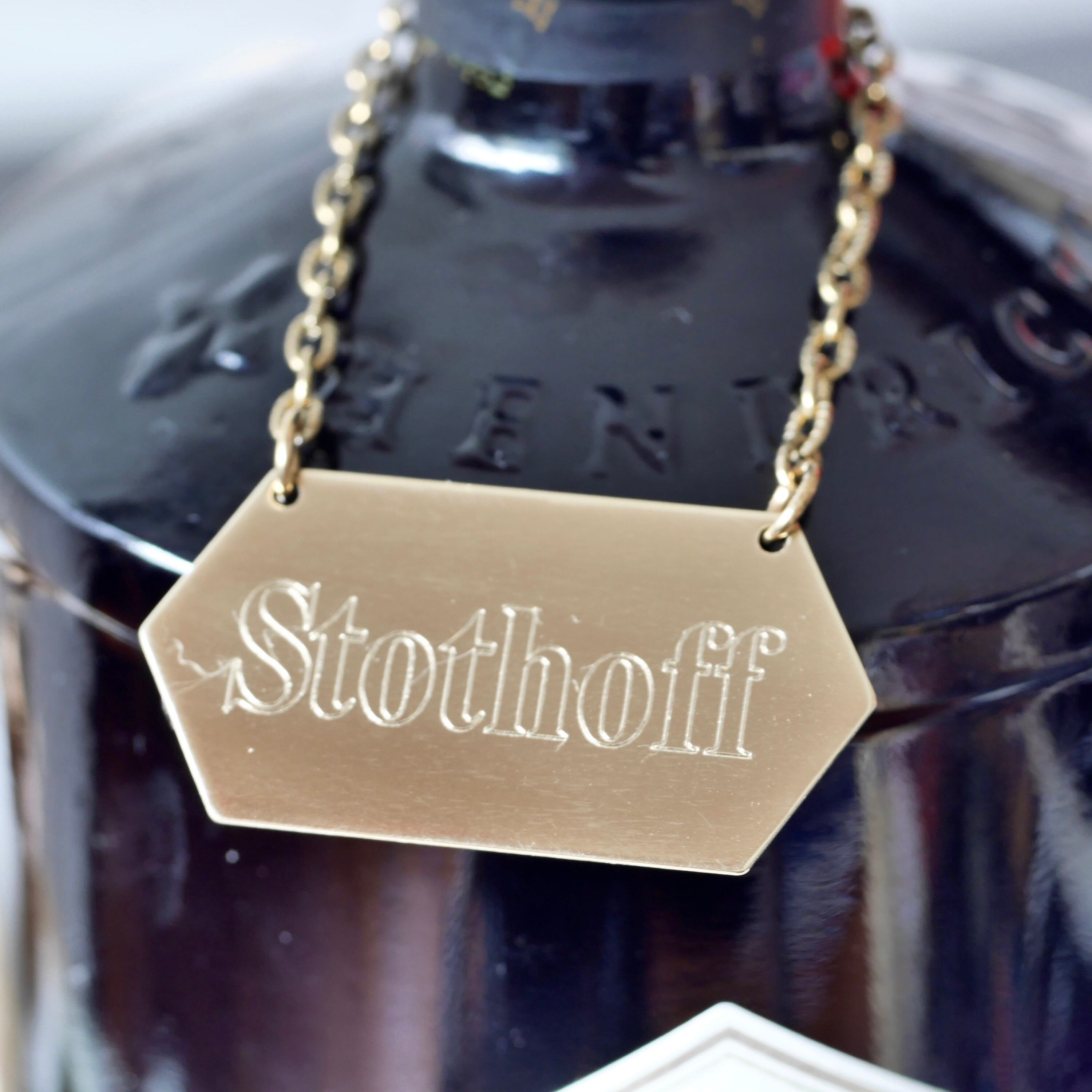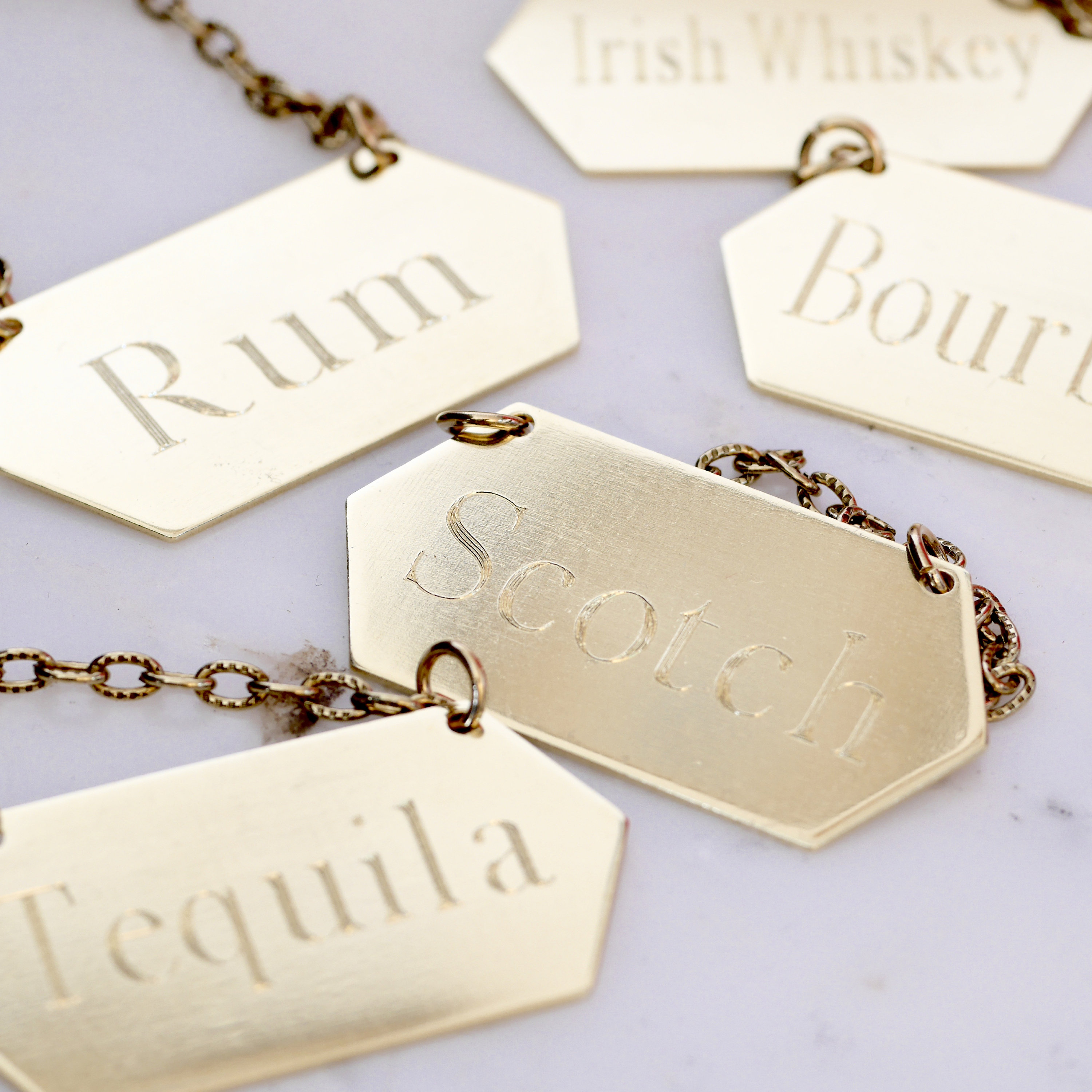 Personalised Brass Decanter Tag - Brass Bottle NecklaceTag - Personalised Gift for him - Liquor Tag - Brass Decanter Label