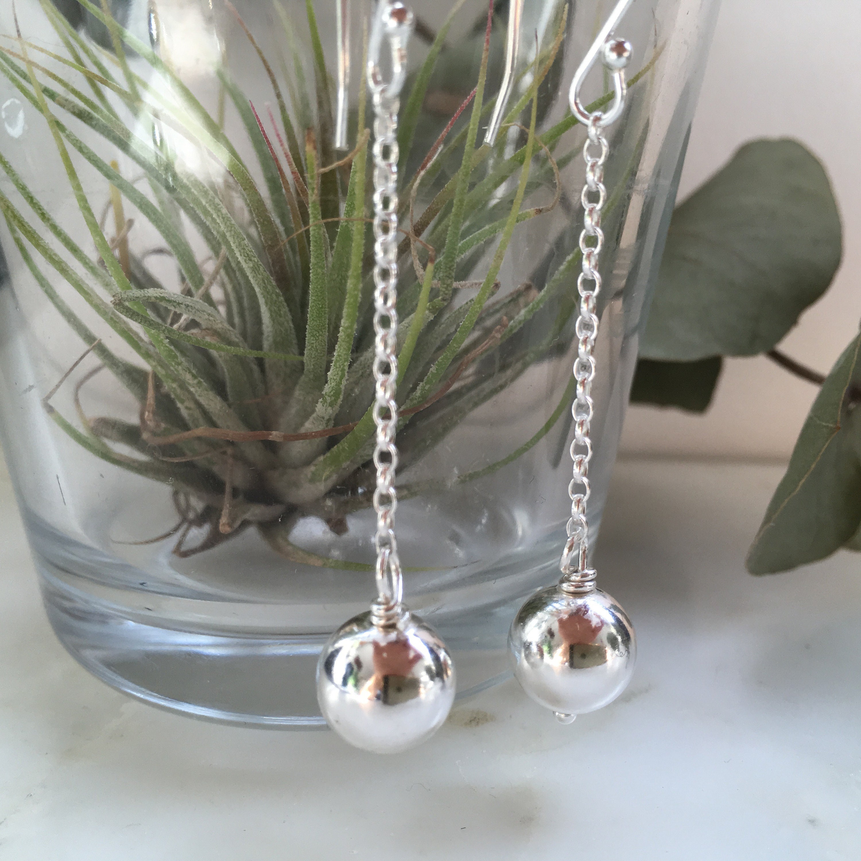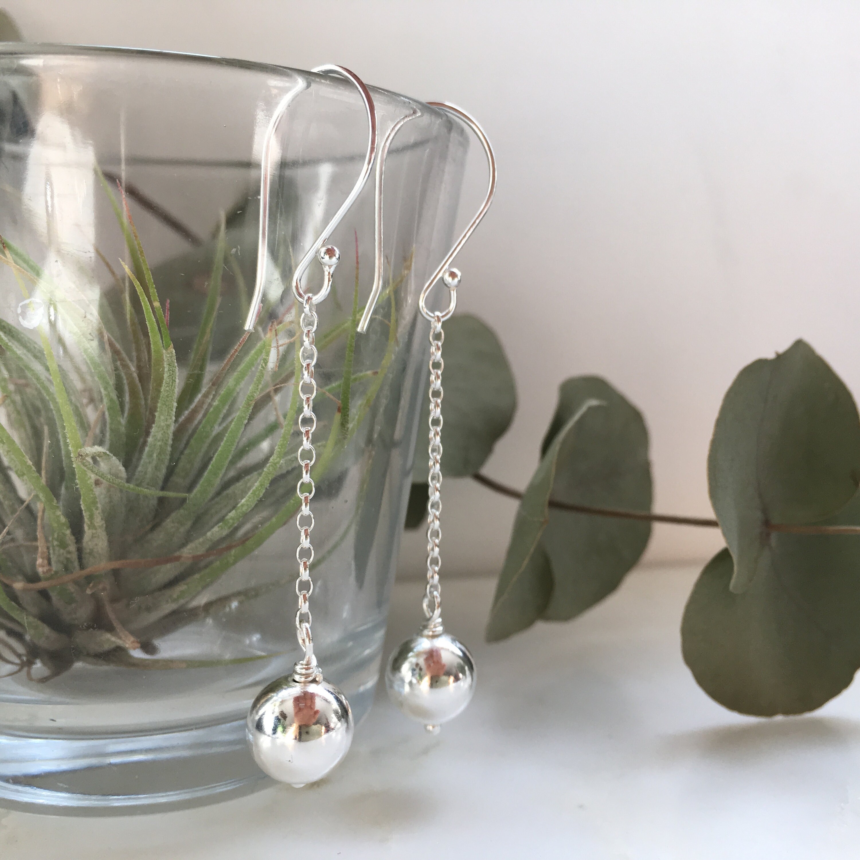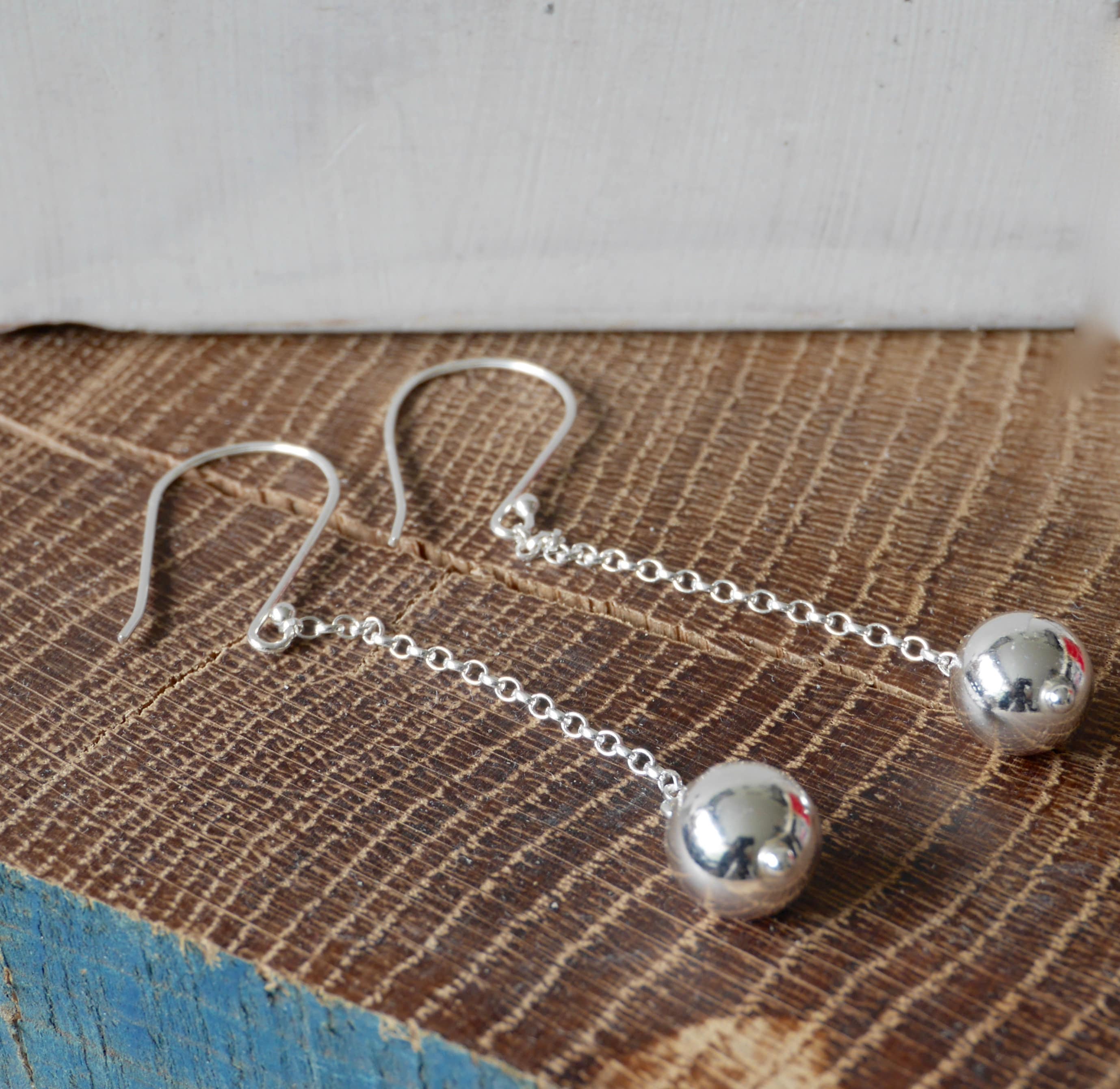 Minimalist Sterling Silver Ball Drop Earrings - Sterling Silver Ball Long Dangles - Gift for her - Minimalist gifts - Minimalist jewellery- Minimalist Jewelry