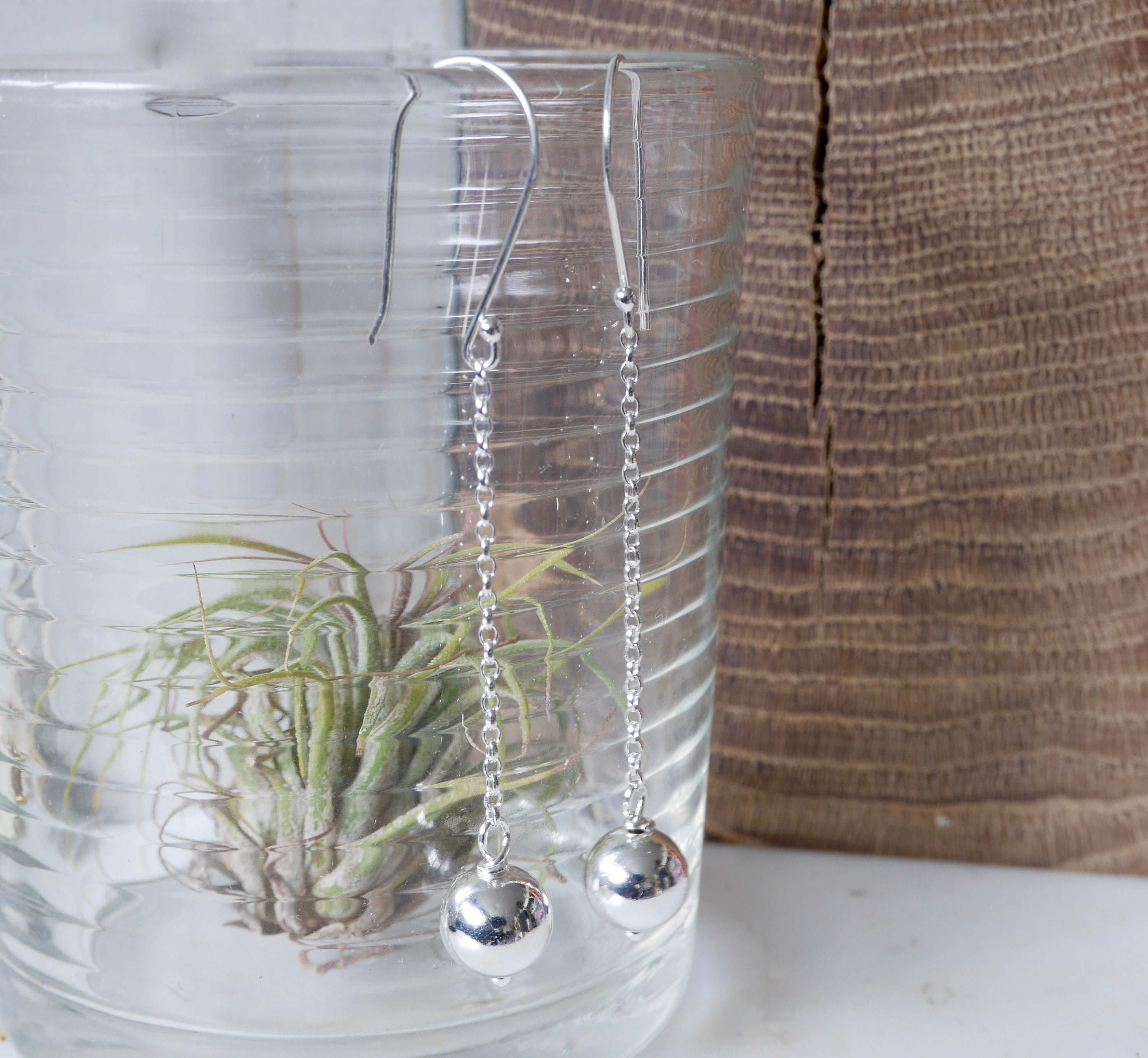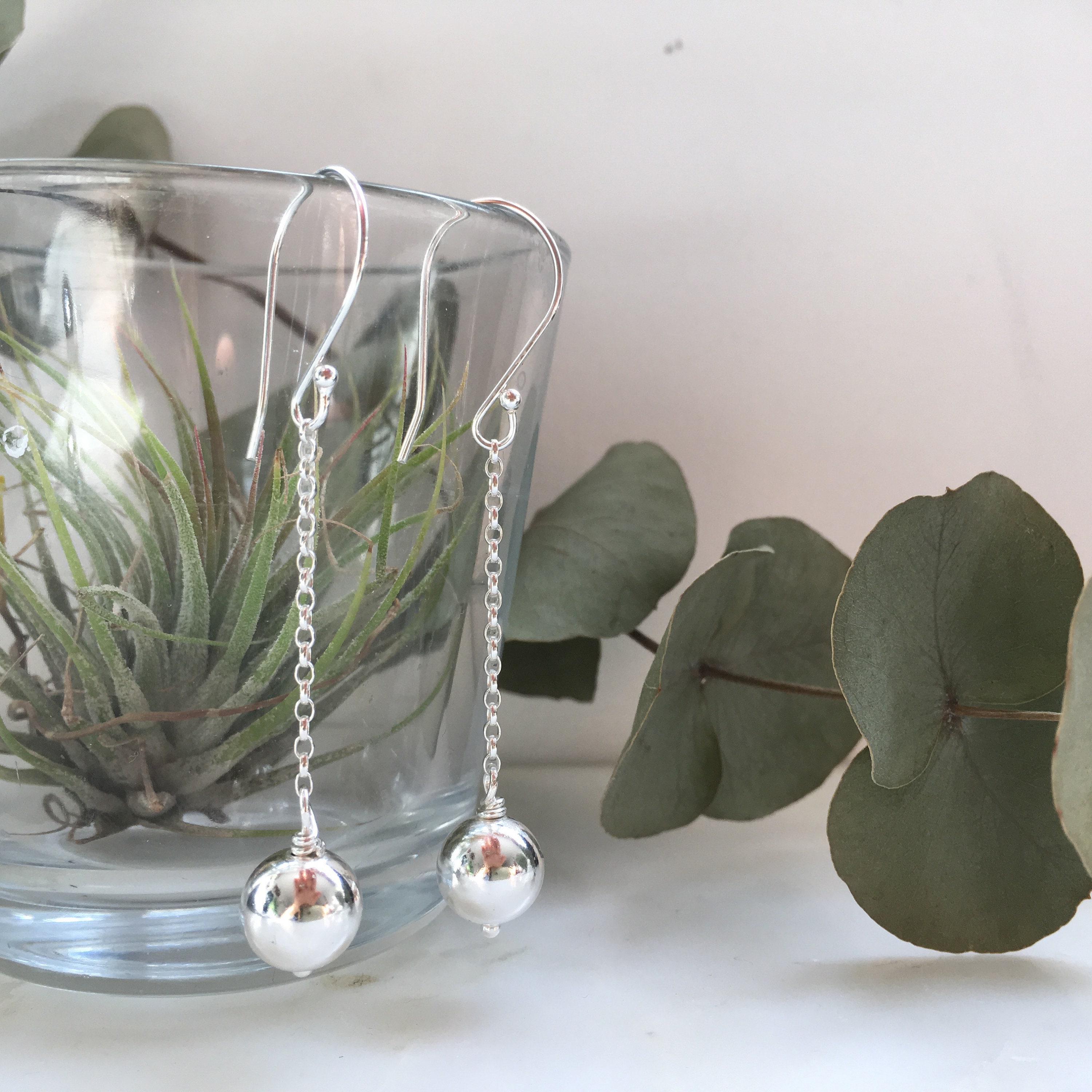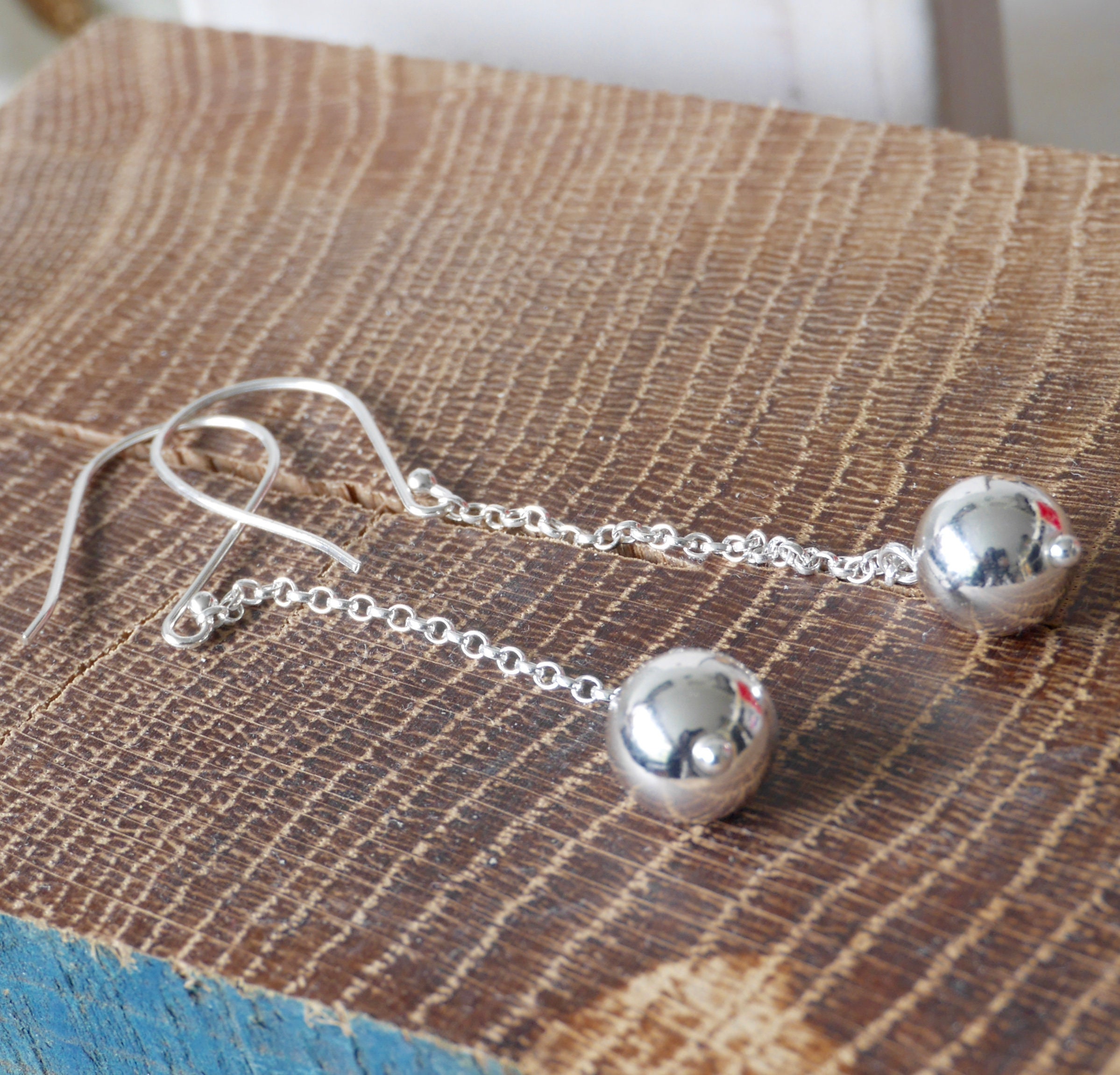 Minimalist Sterling Silver Ball Drop Earrings - Sterling Silver Ball Long Dangles - Gift for her - Minimalist gifts - Minimalist jewellery- Minimalist Jewelry