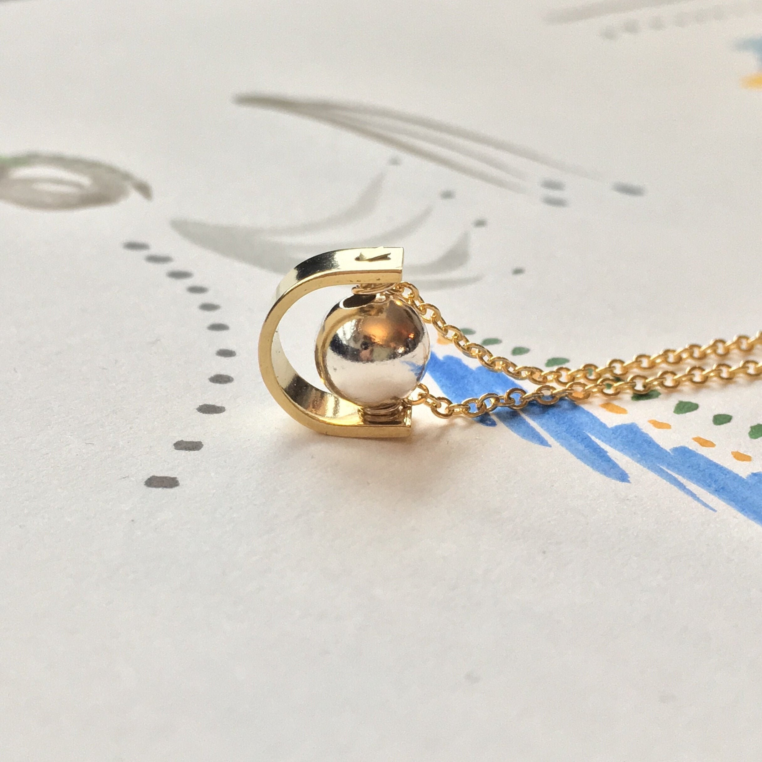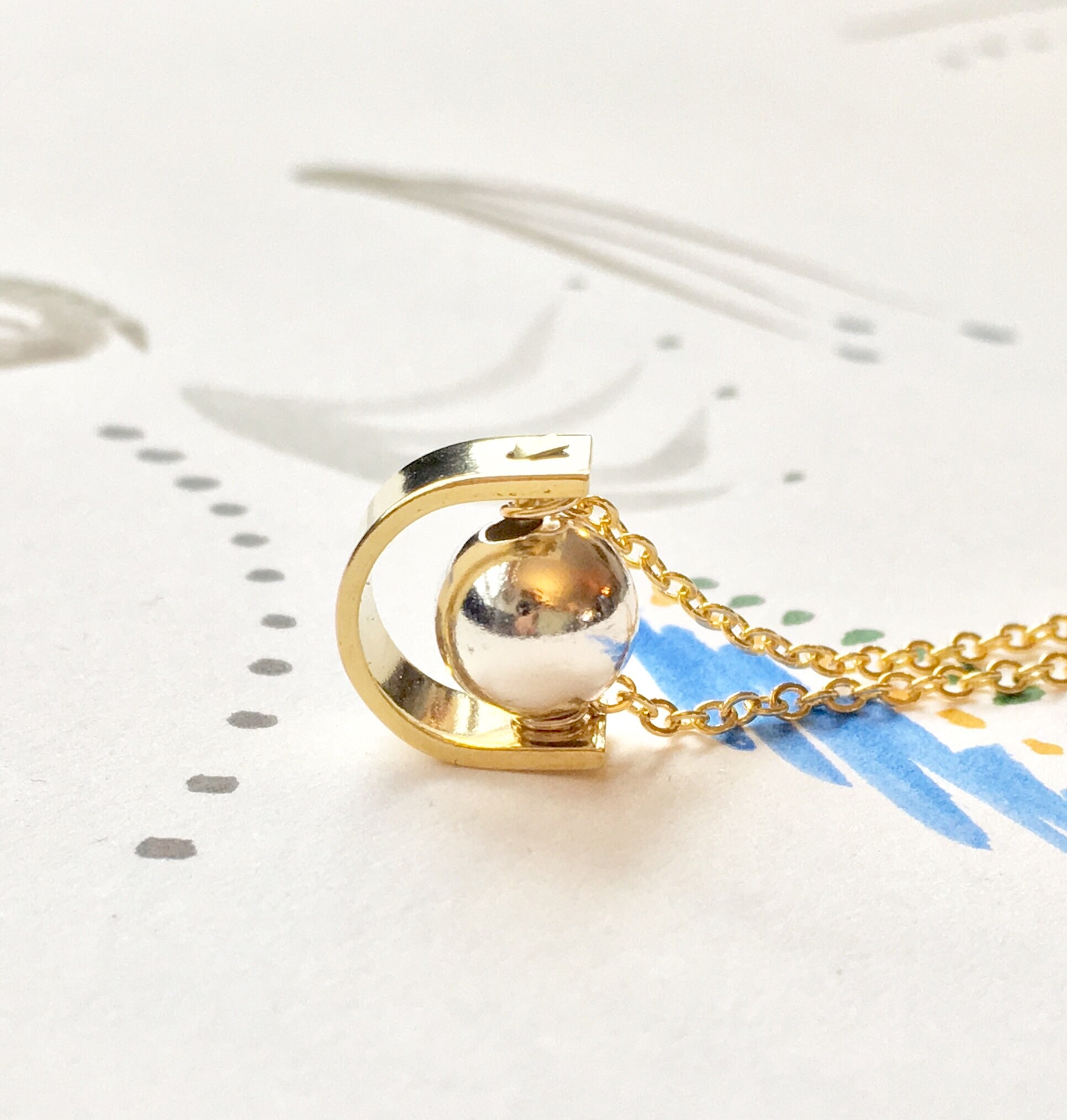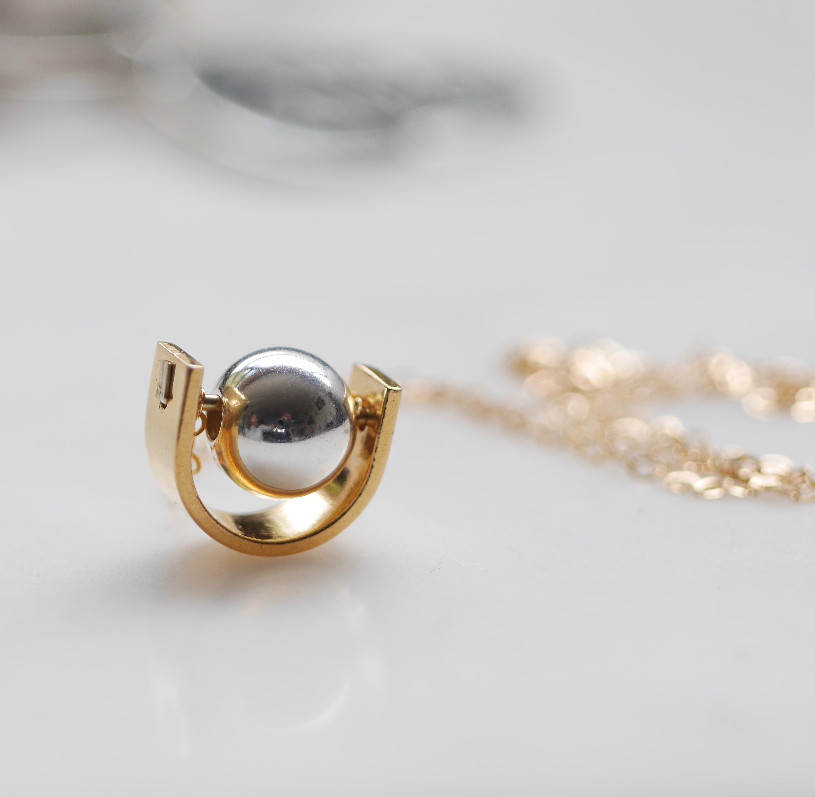 Sterling Silver Ball and Brass Semi Circle Charm Geometric Necklace - Silver Ball and Brass Semi Circle Fidget Necklace- Fidget Jewellery - Stress Relief Jewelry.