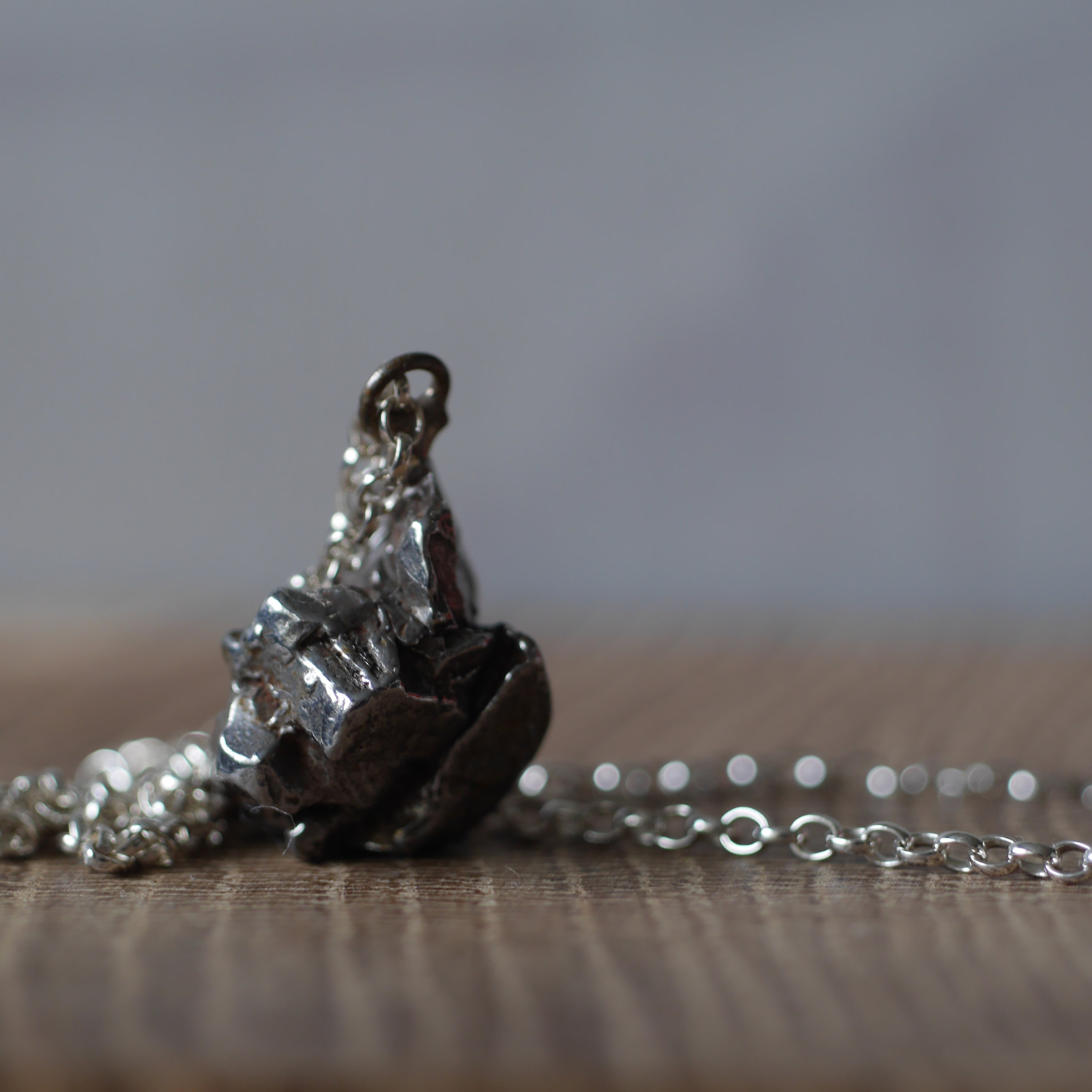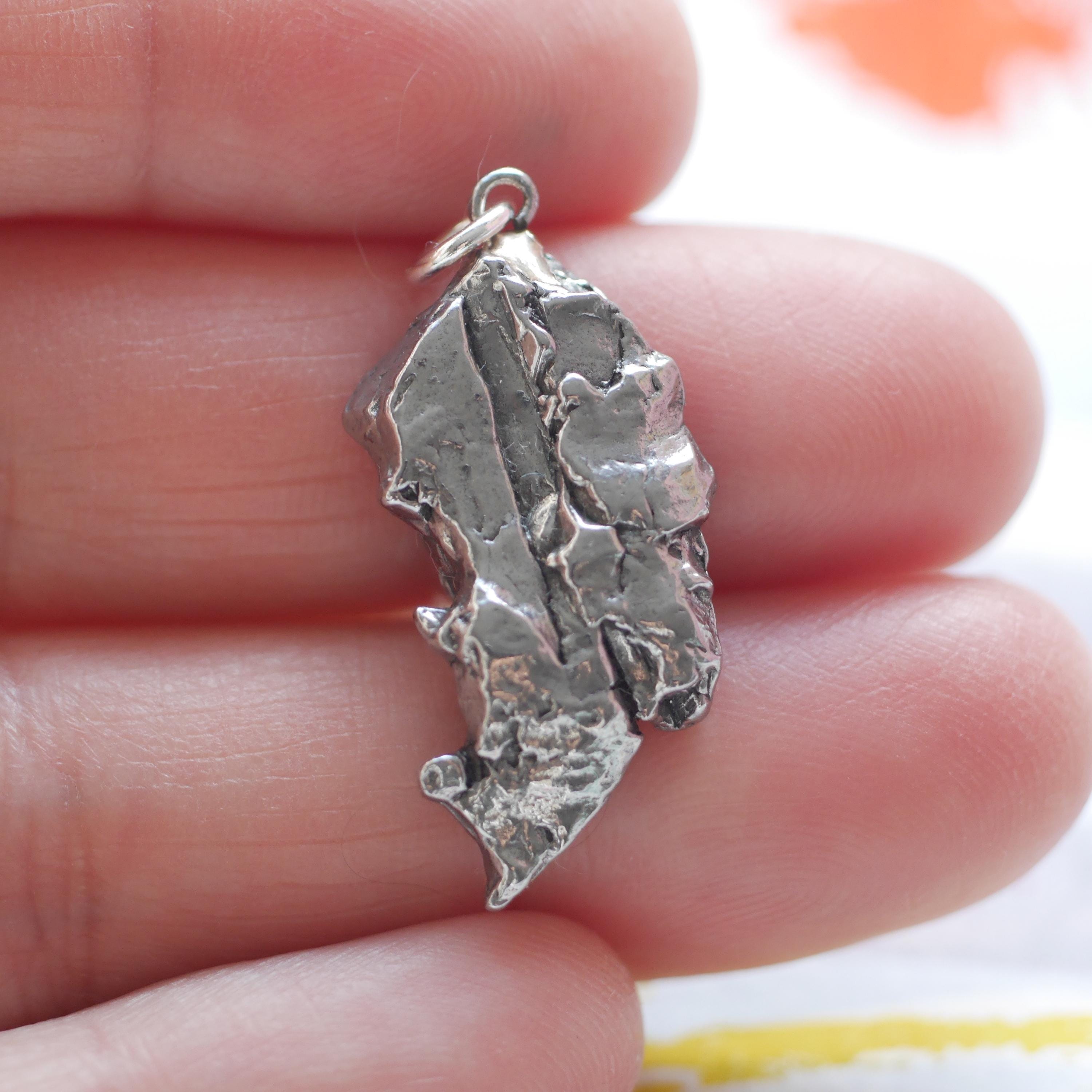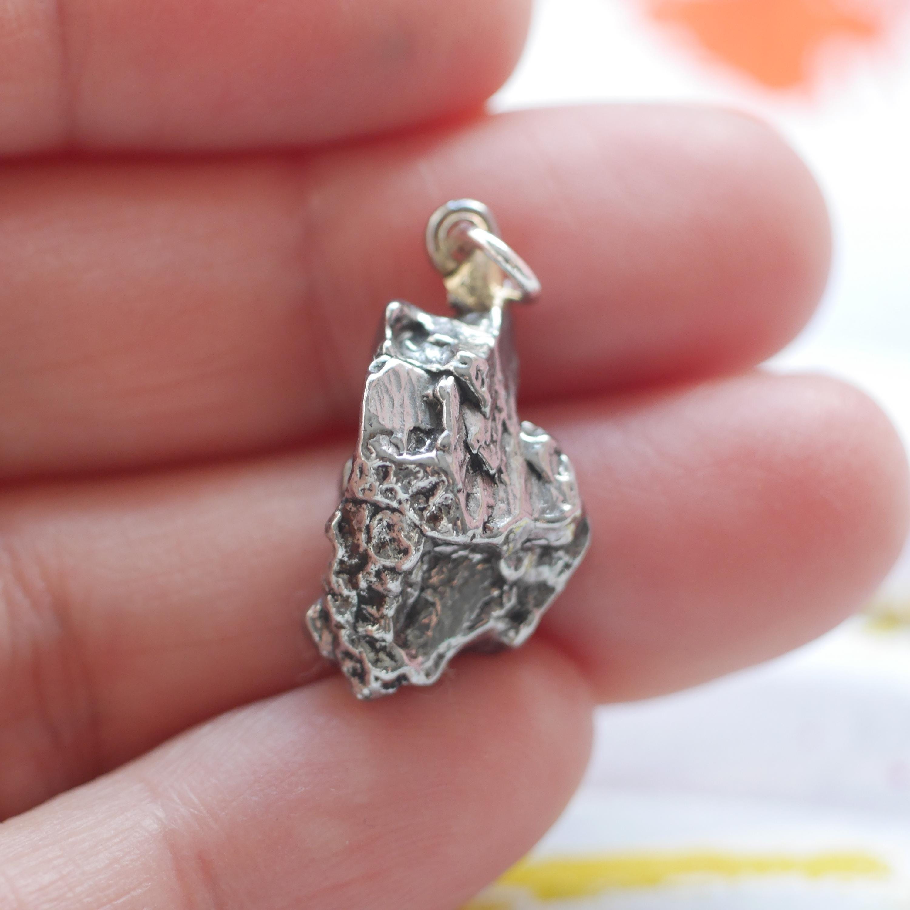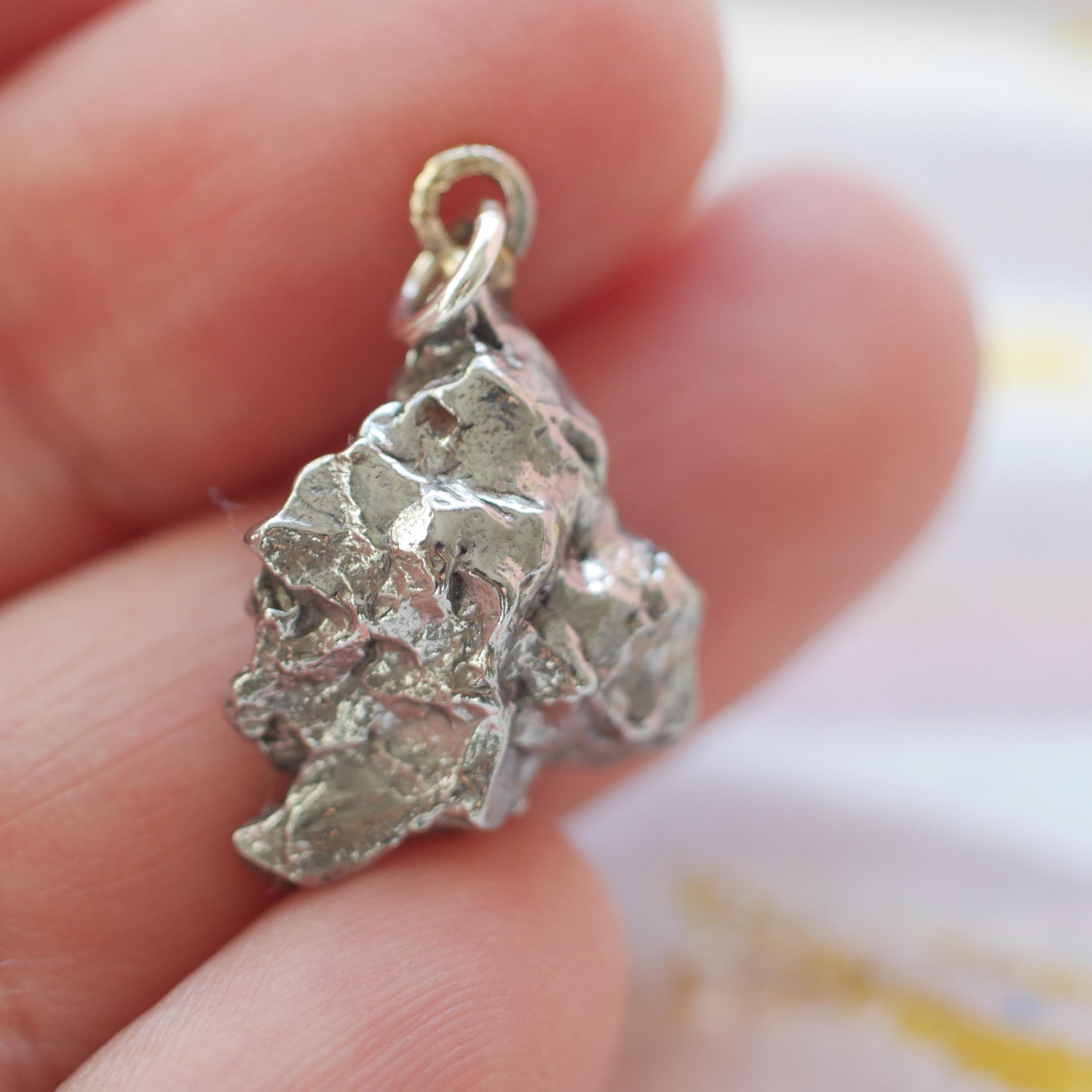 This amazing meteorite necklace was handcrafted from a piece of meteorite found in Argentina and is estimated to be 4000-5000 years old if not longer. The Campo del Cielo site contains at least 26 craters containing iron masses from outer space!