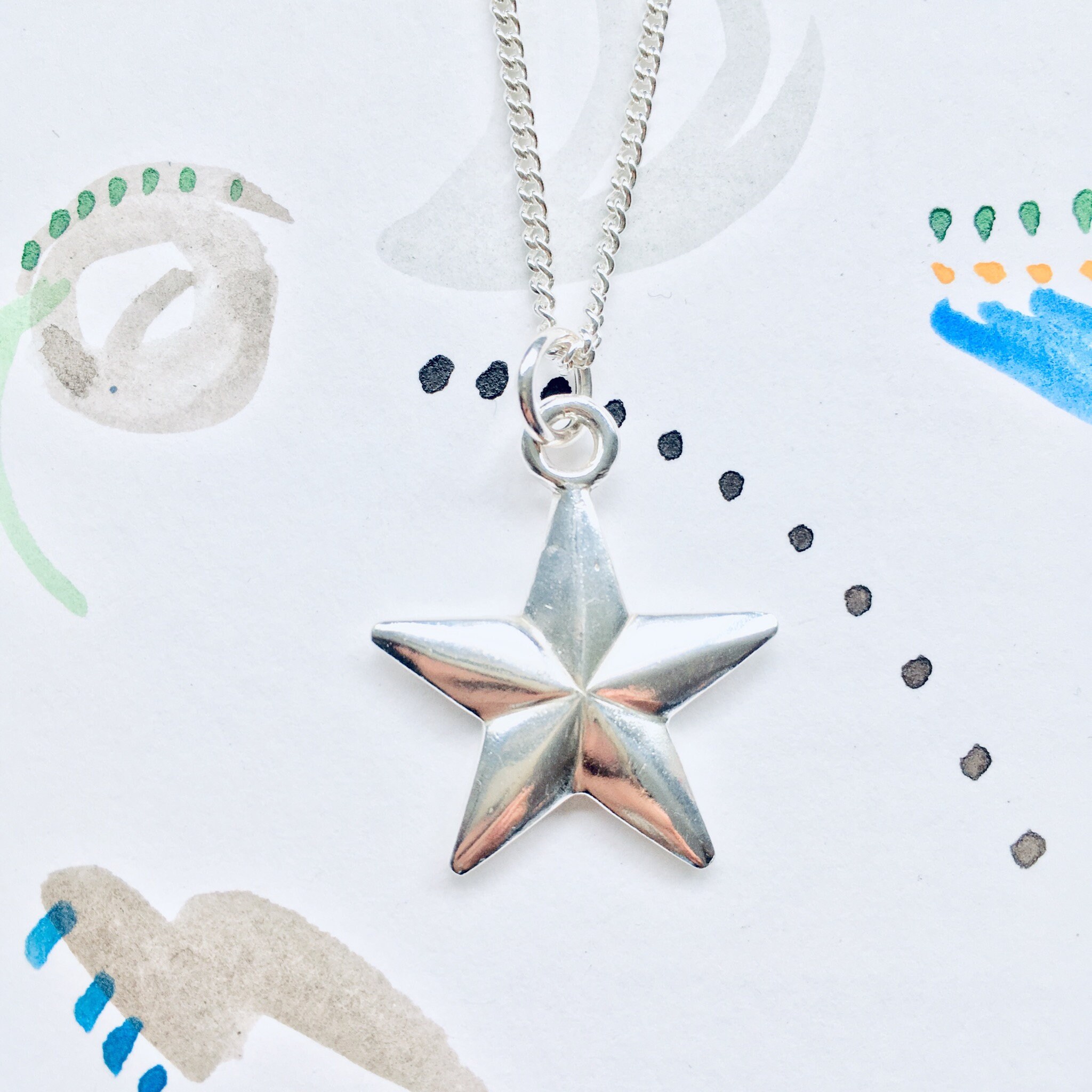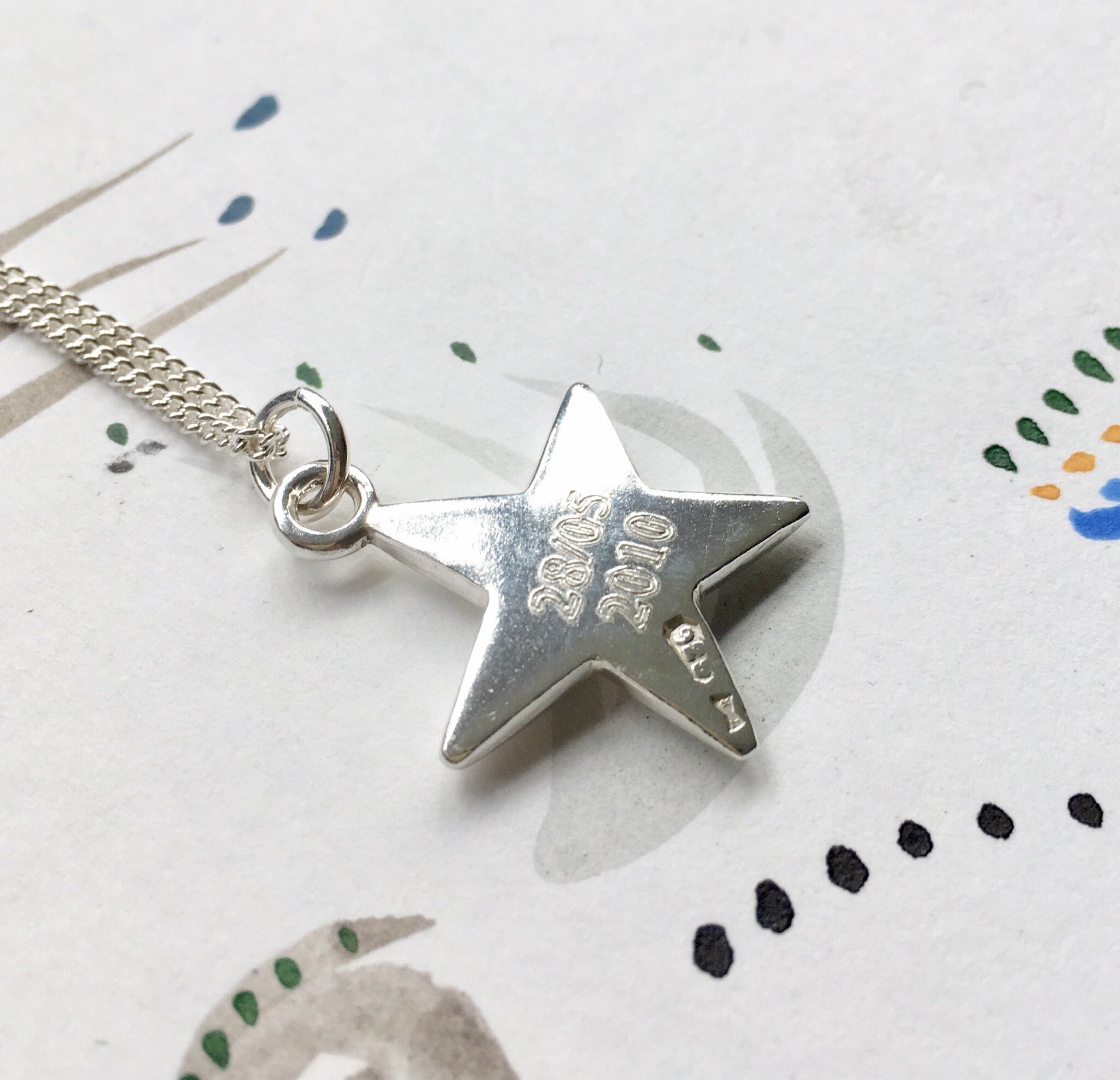 For the shining star in your life what could be better than this personalized chunky silver star pendant necklace! Shining bright has never been easier with this must-have celestial jewelry personalized to make it shine even brighter.