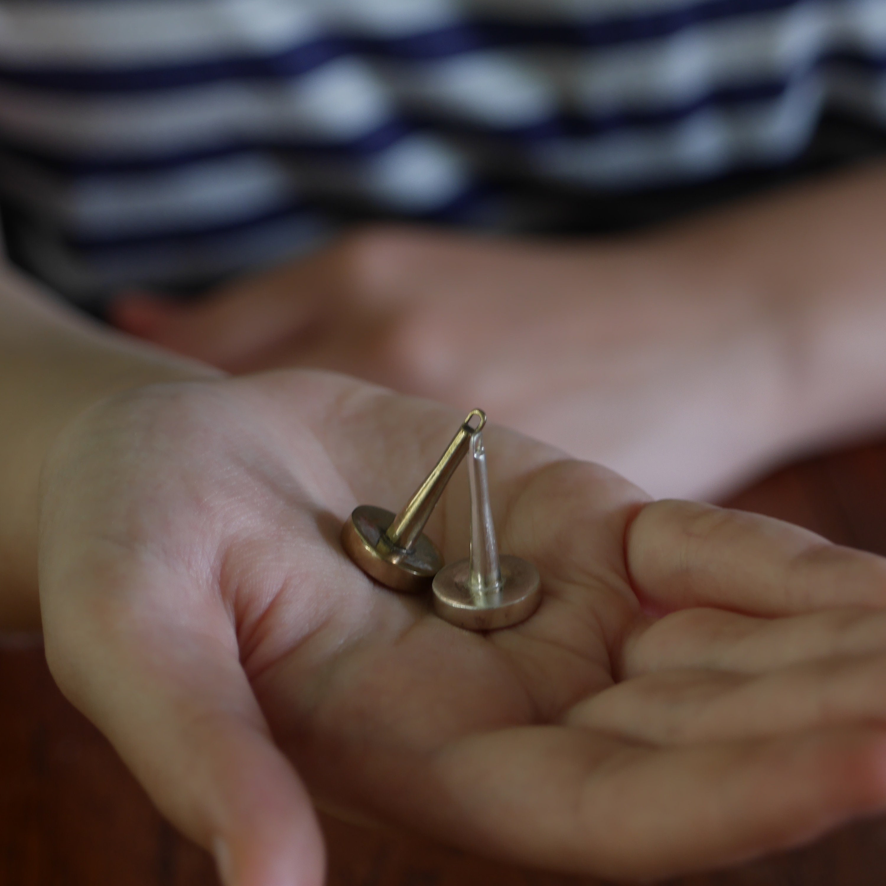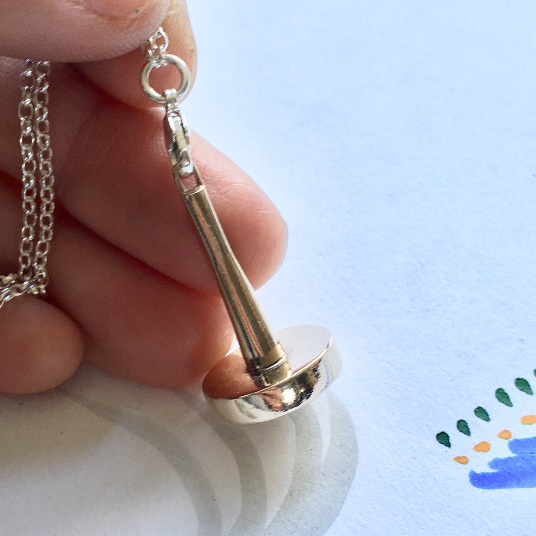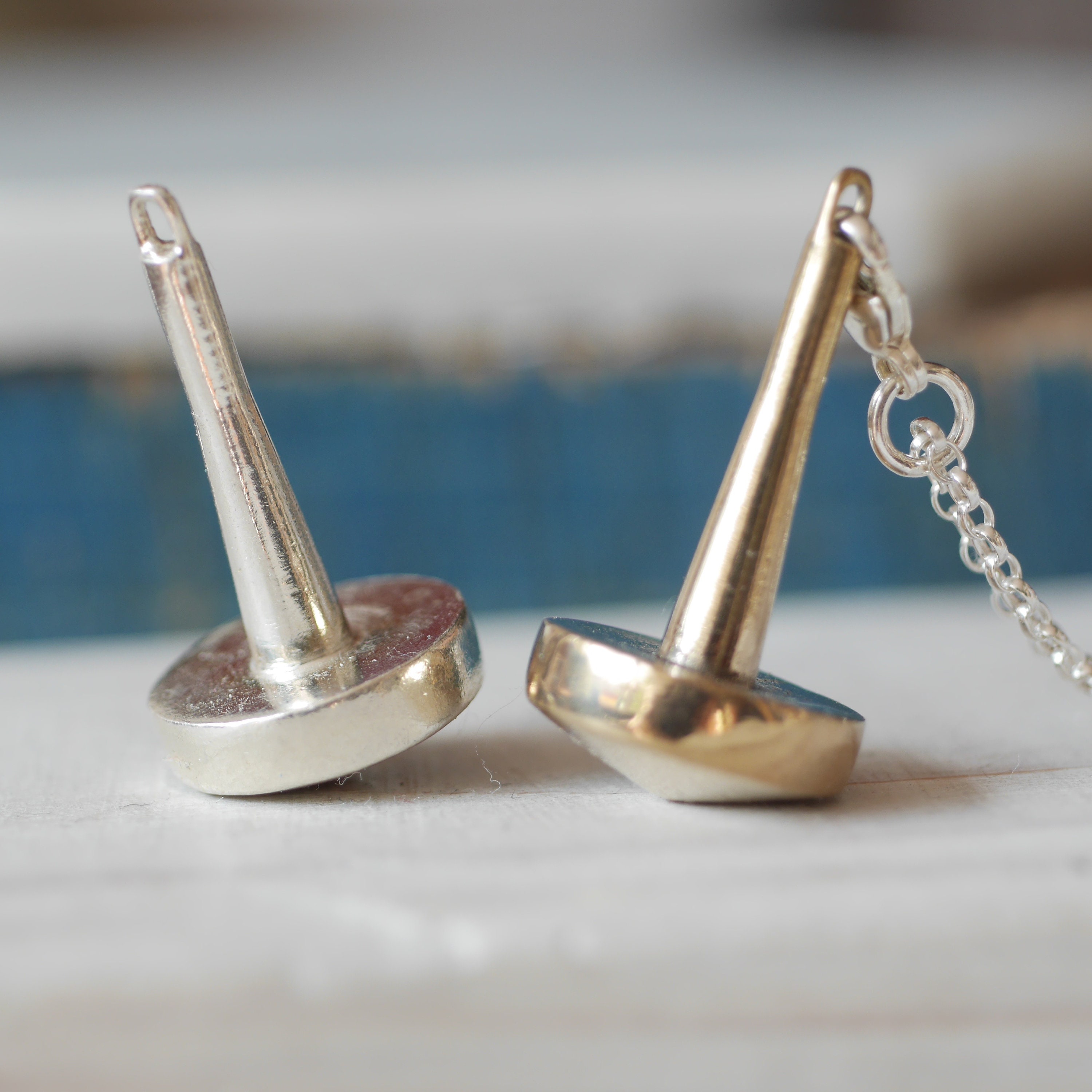 I have been working on interactive, fidget jewellery for a while and I thought spinning top necklace is the perfect one to work with. I went to my husband workshop to make the very original prototype of this interactive jewellery charm then sent it to the casting company to give sterling silver and solid finish as an option.